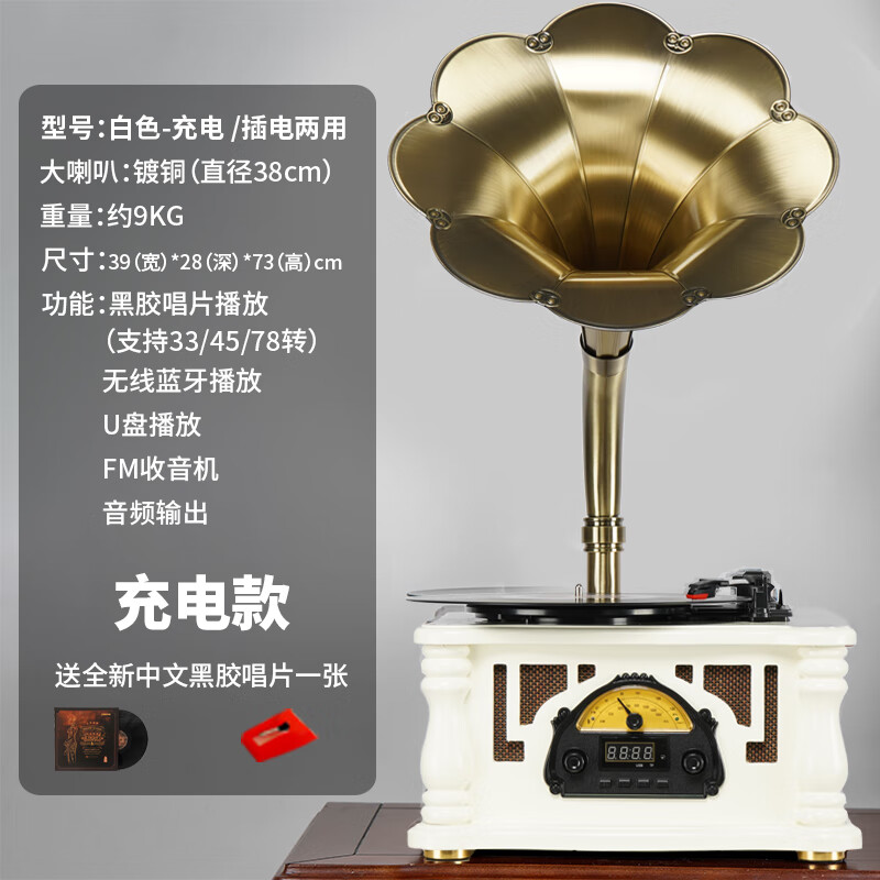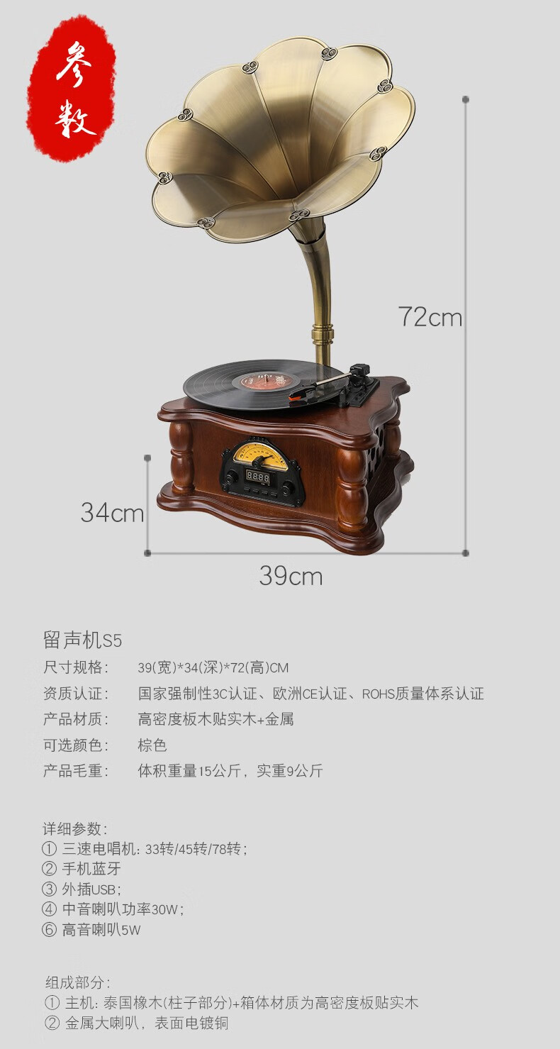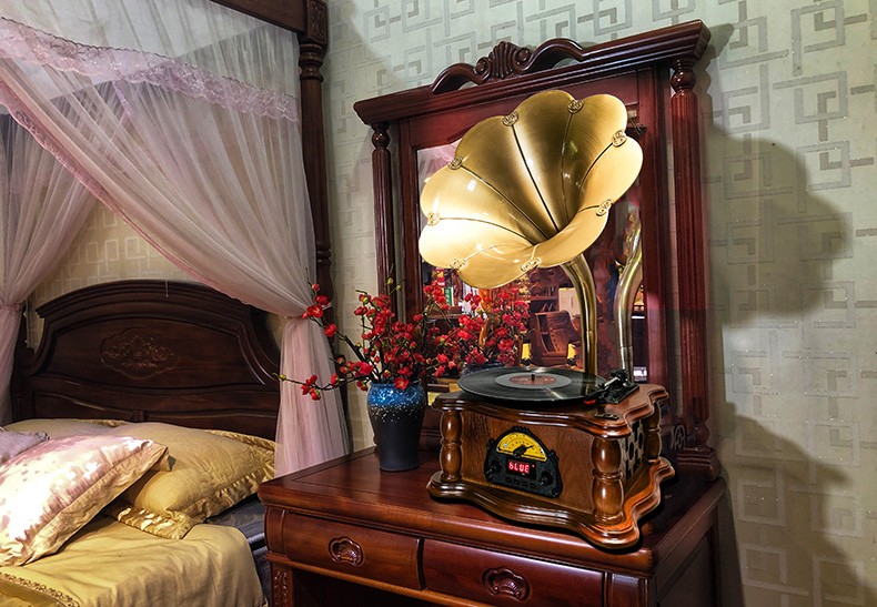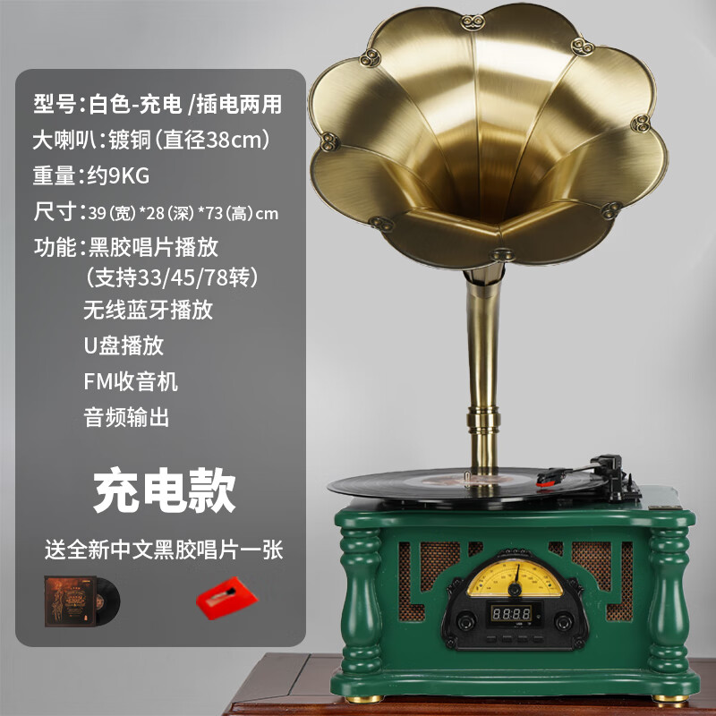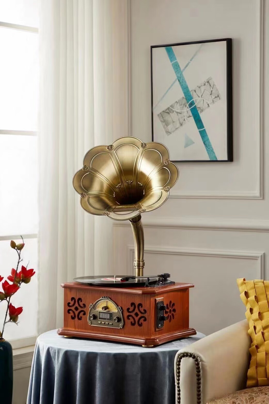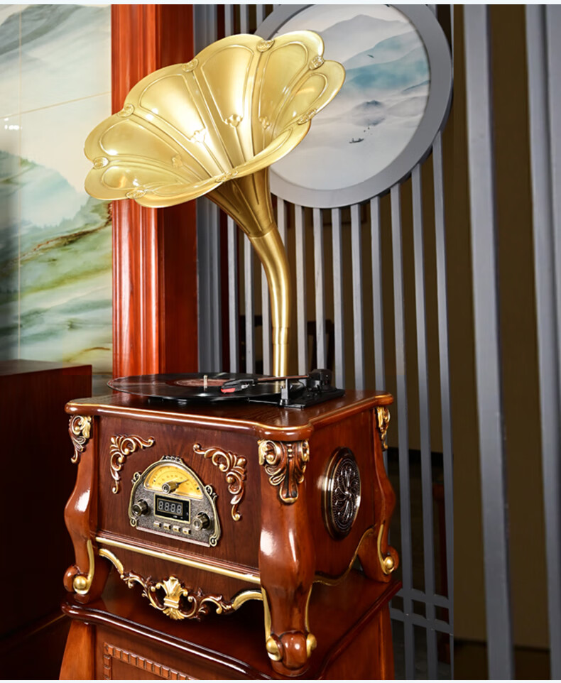BLACKNOTE Jinmo gramophone Chinese-style vinyl record player antique streaming sound machine large speaker solid wood retro record player Bluetooth D96 A pure copper speaker + subwoofer + plug-in + genuine vinyl record