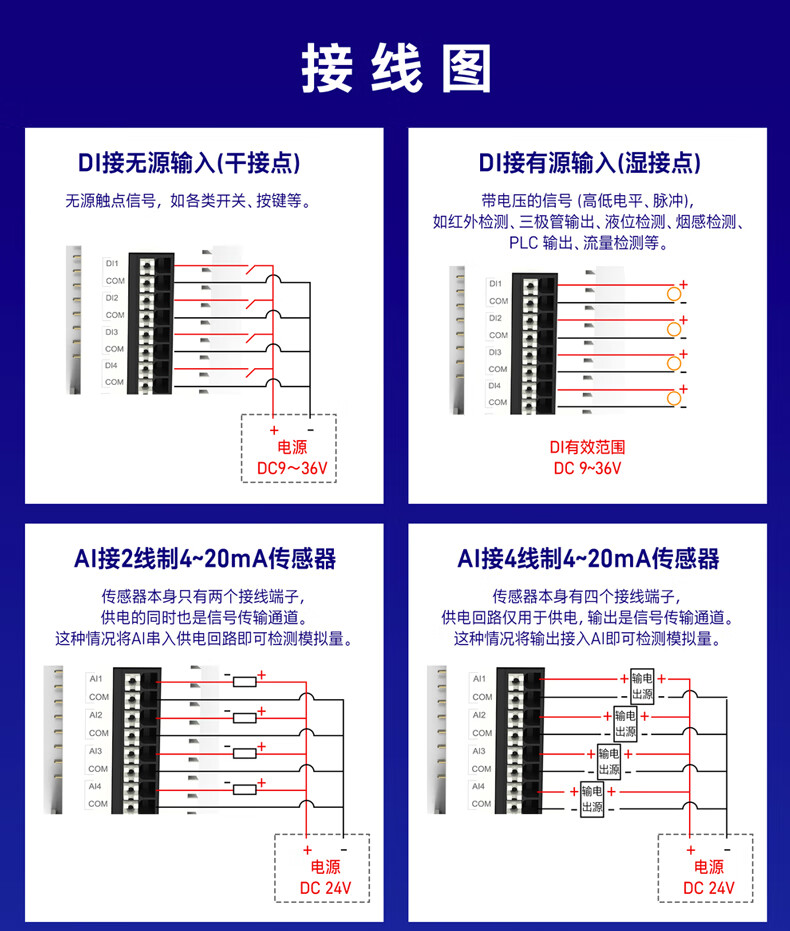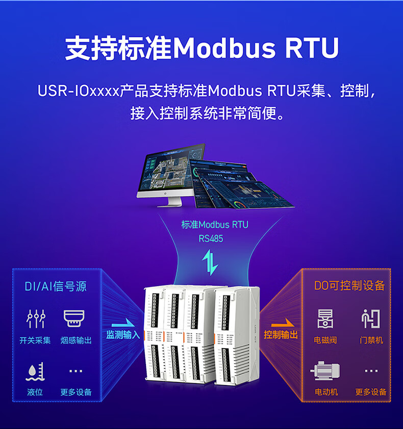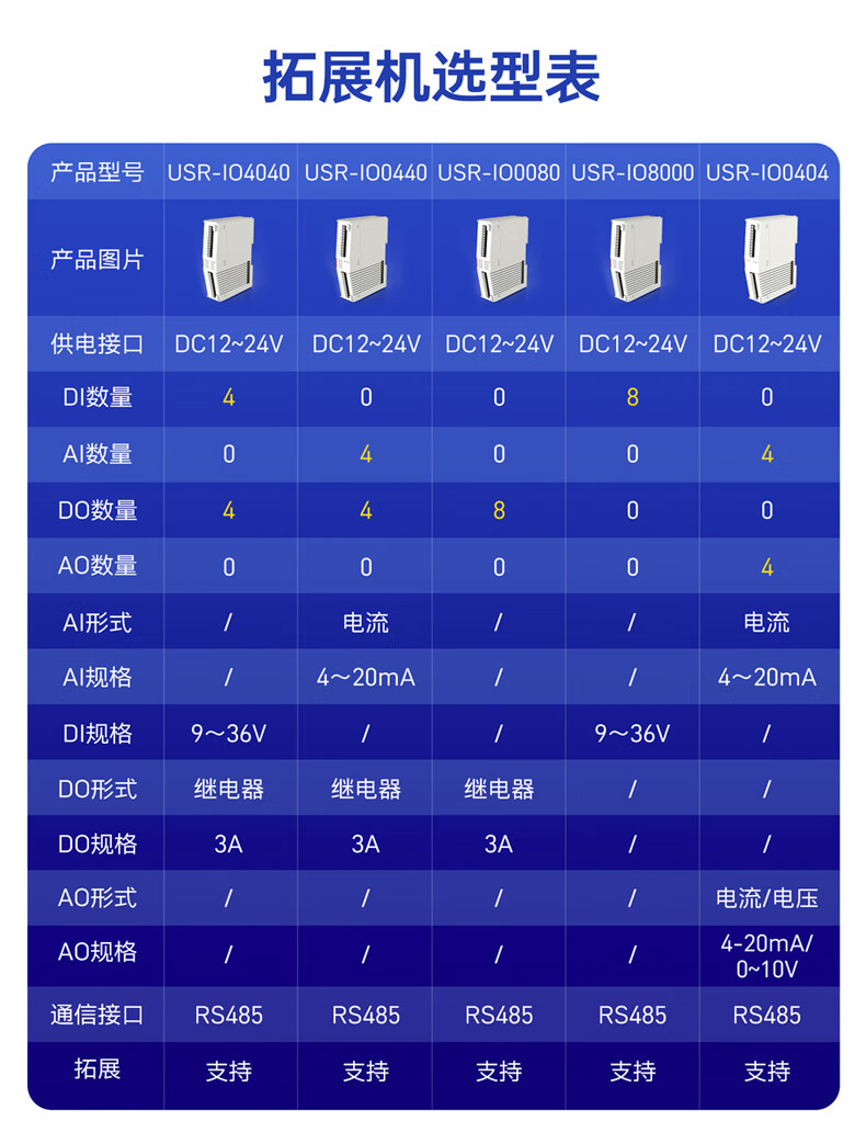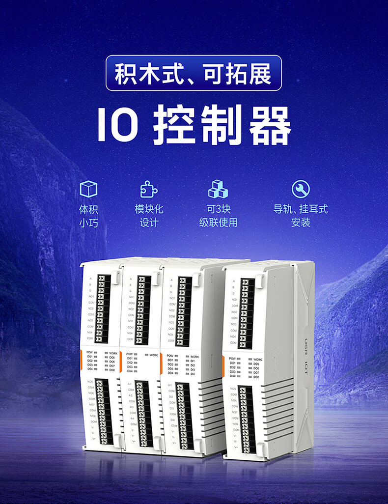 悦常盛IO控制器RS485串口继电器采集模块积木网关Modbus RTU有人IO 4AI+4DO(USR-IO0440)