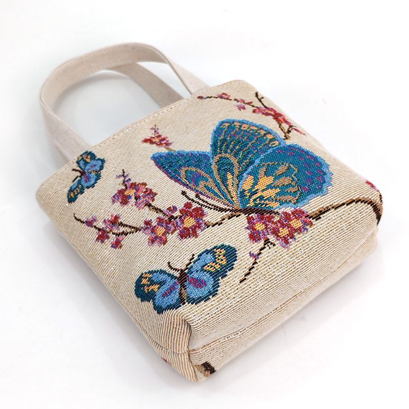 Yunluo mobile phone coin double-sided canvas handbag small bag fashion gold jacquard canvas bag embroidered outing handbag mini butterfly