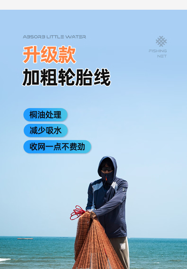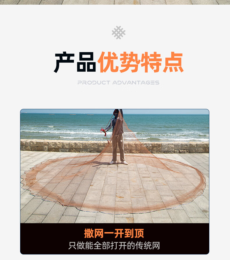 Fishing banzhu traditional tire line hand cast net hand thrown net fishing net spin net old cast net fishing net hand thrown fishing net catching fish net 1 finger tire line 3.5 meters high 6 Jin Jin is equal to 0.5 kilograms lead drop is about 4 meters