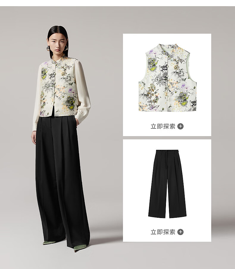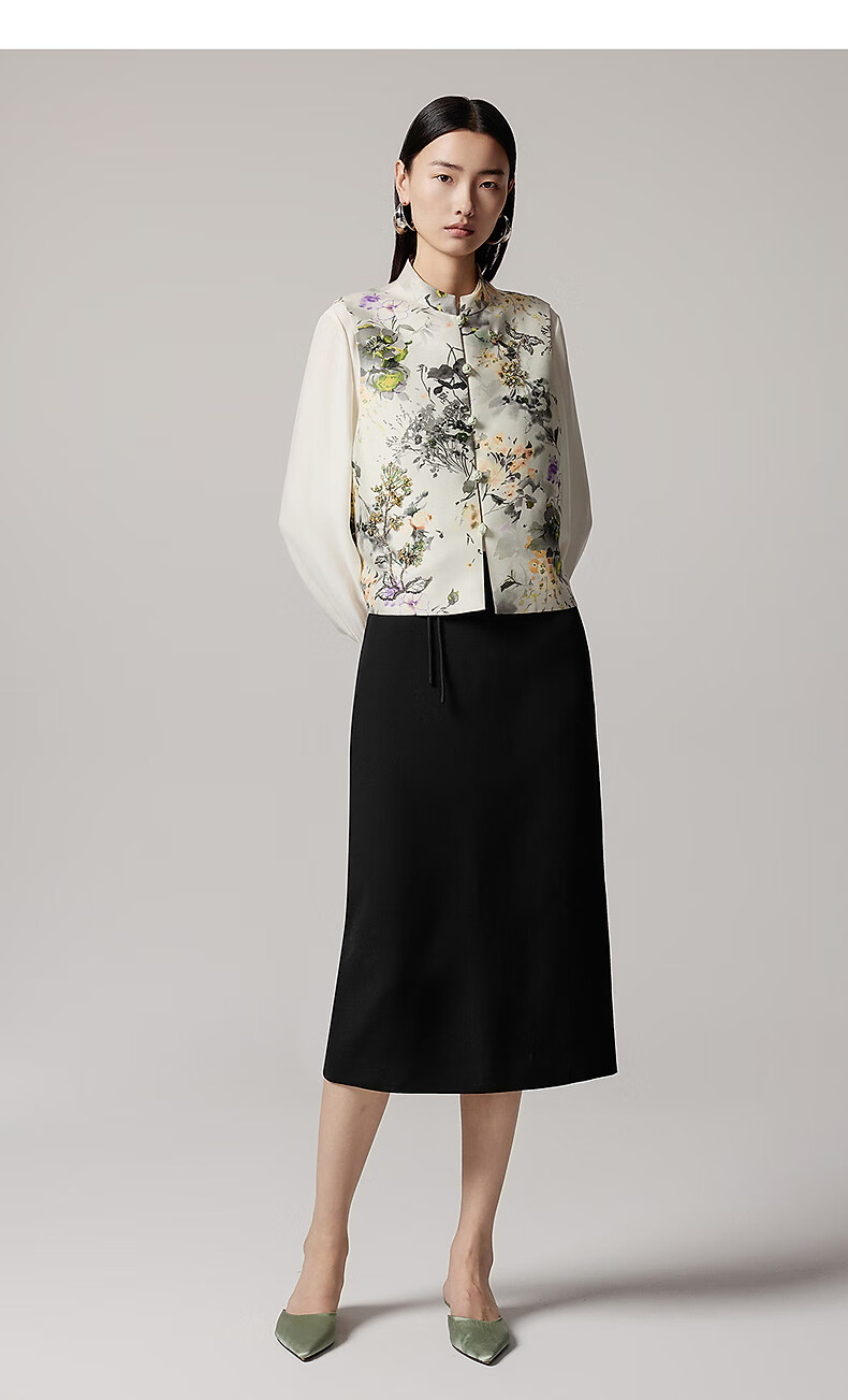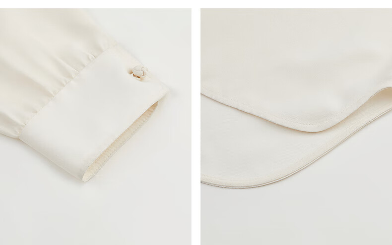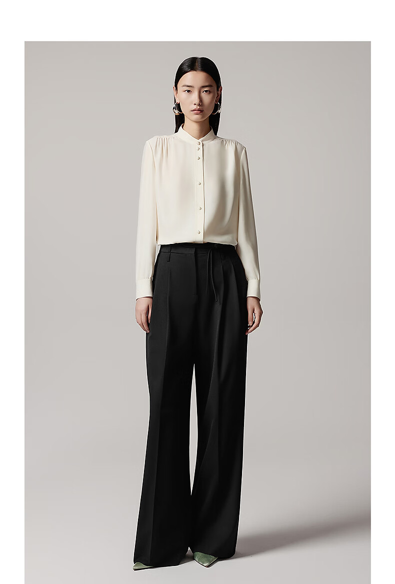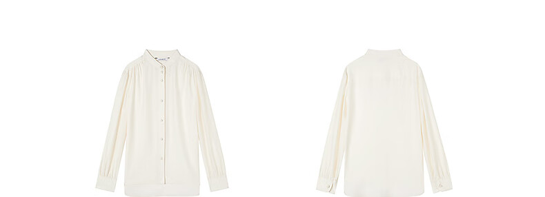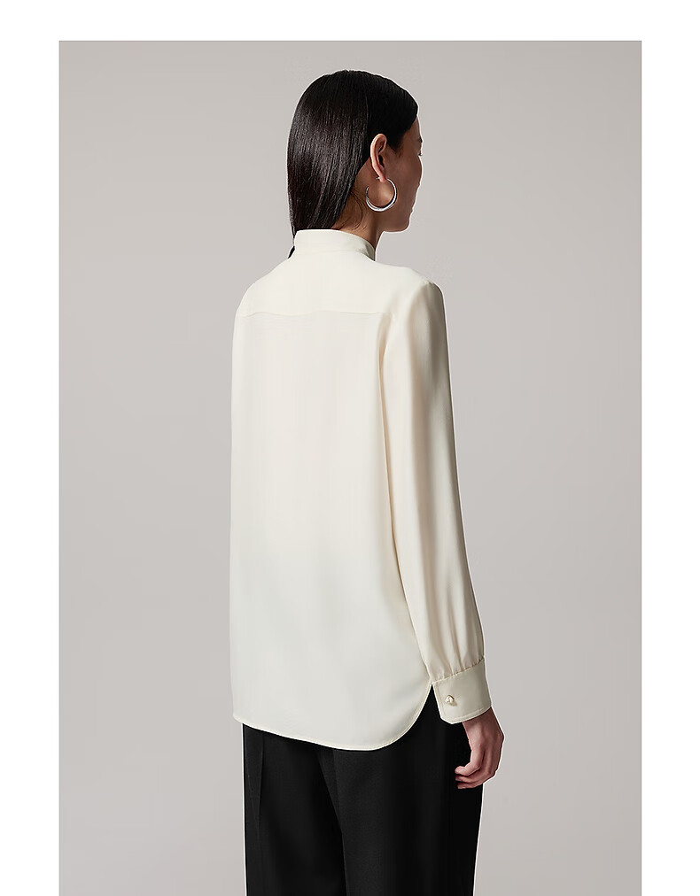LANCY 100% mulberry silk autumn new temperament high-end silk stand-up collar long-sleeved shirt for women off-white M