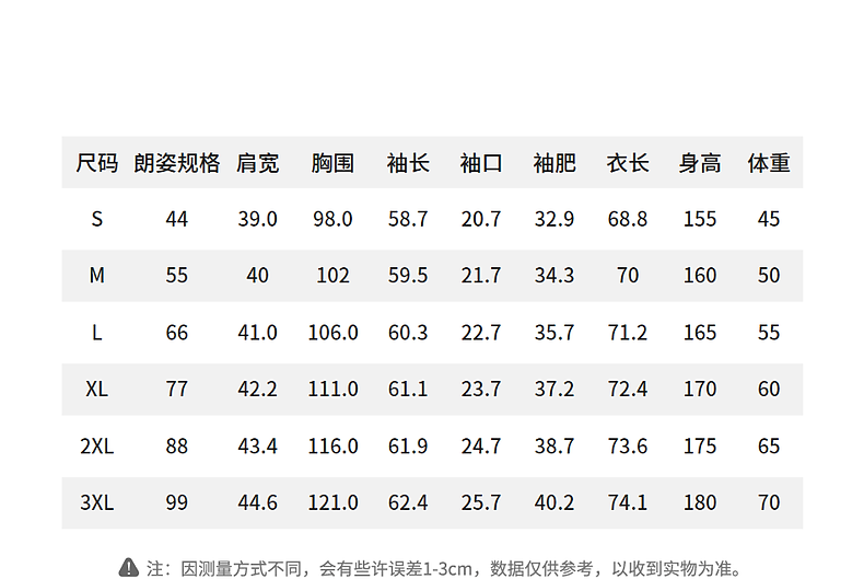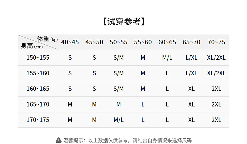 China (cm) 160-165/84-86 165-170 / 88-90 167-172 / 92-96 168-173 / 98-102 170-176 / 106-110