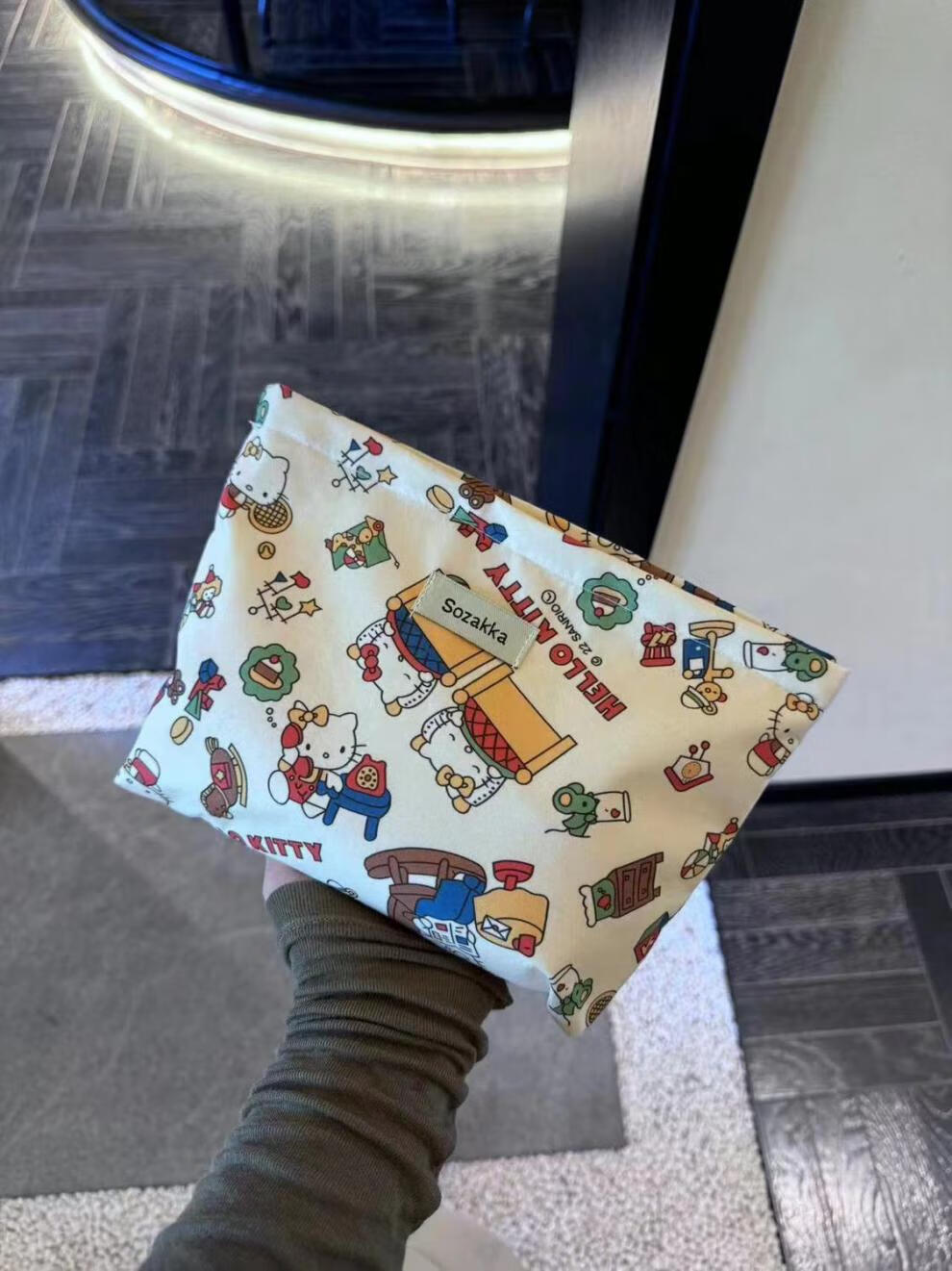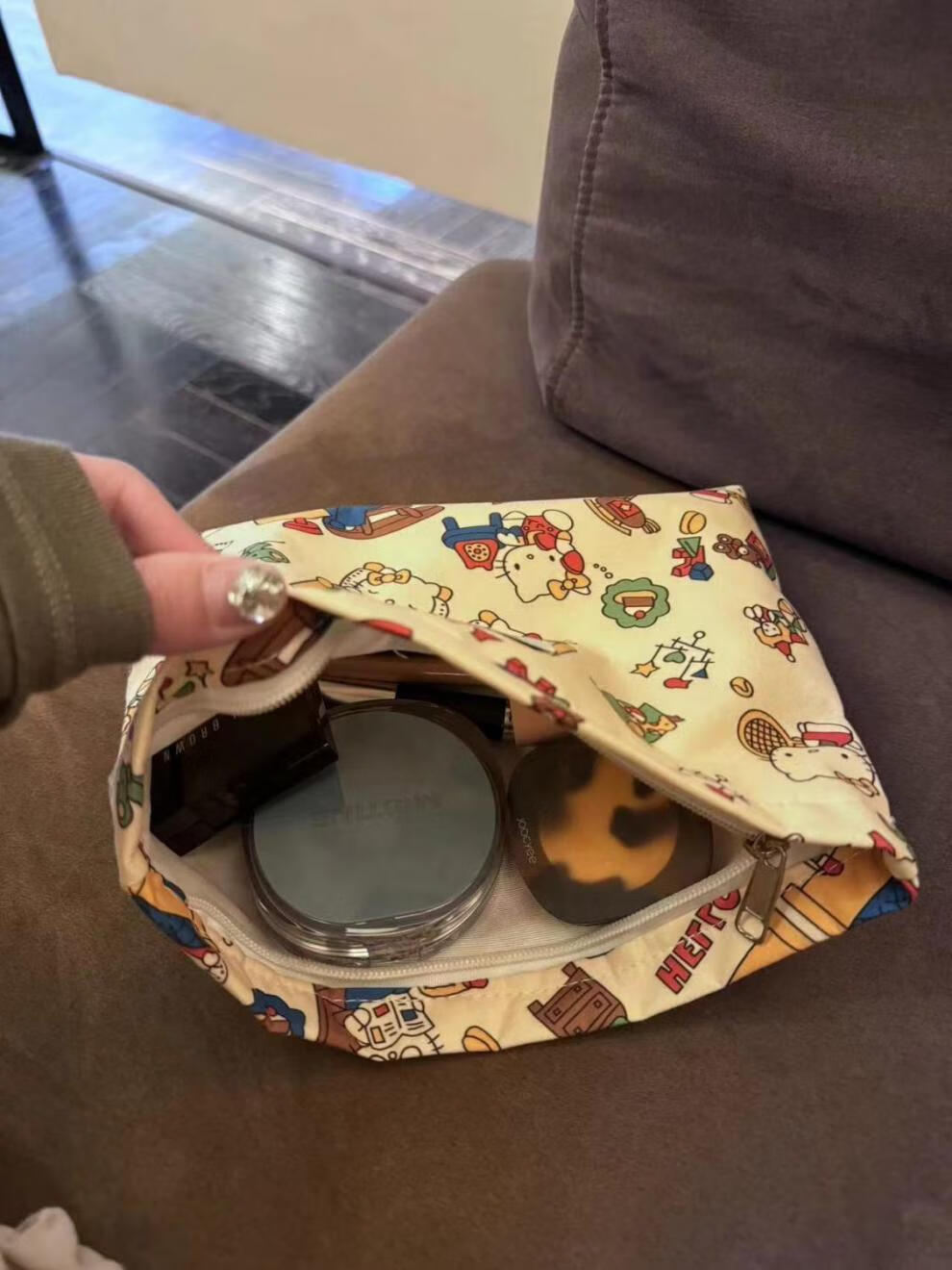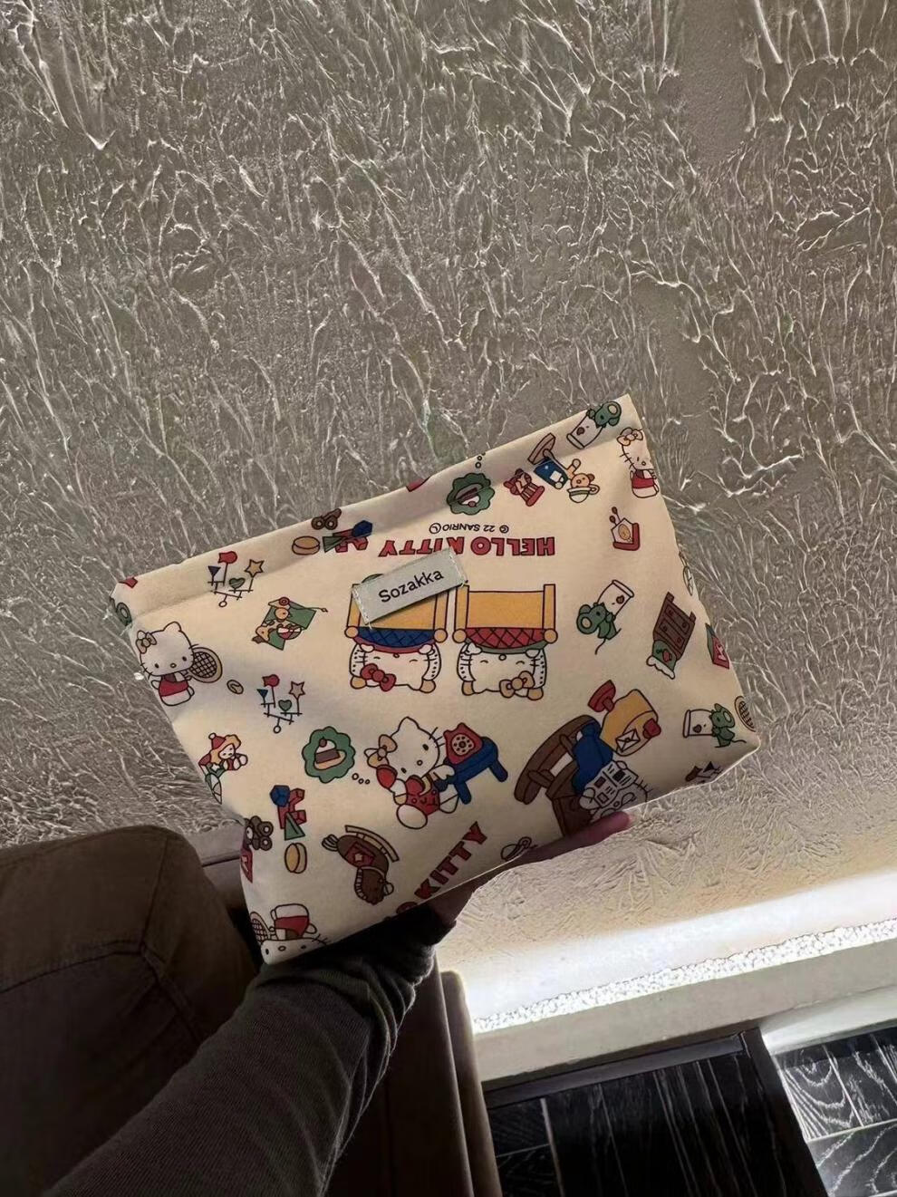 Yunluo Spring and Summer Light Luxury Cute Girl's Beautiful Hello Kitty Print Cosmetic Bag Travel Storage Niche Exquisite Clutch Bag Beautiful Cat Cosmetic Bag 666