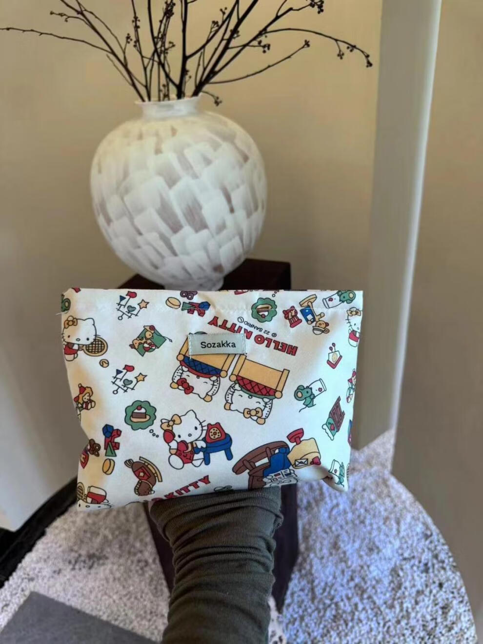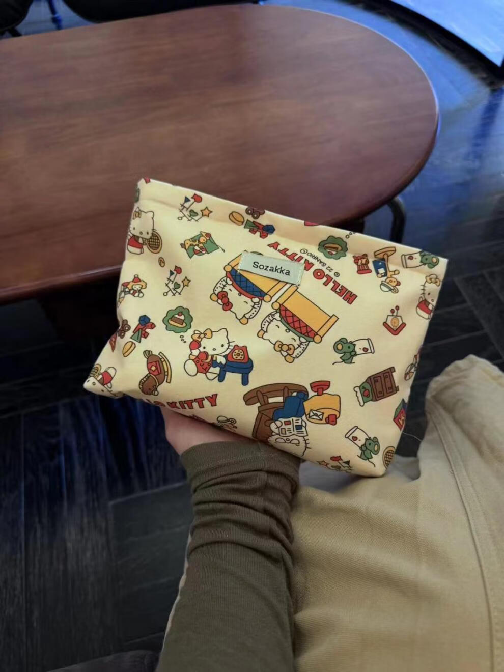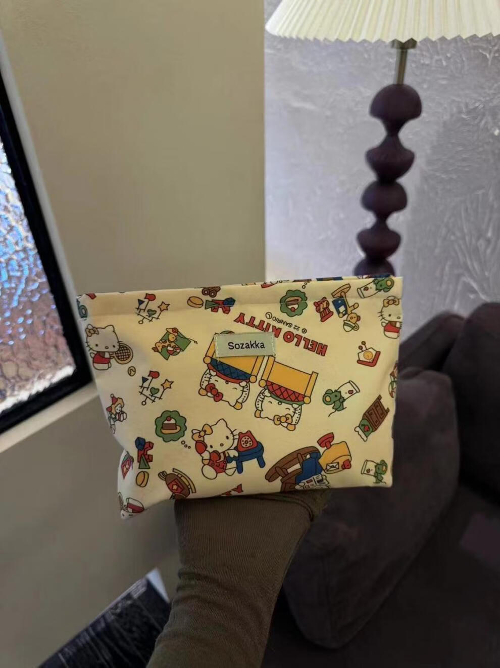 Yunluo Spring and Summer Light Luxury Cute Girl's Beautiful Hello Kitty Print Cosmetic Bag Travel Storage Niche Exquisite Clutch Bag Beautiful Cat Cosmetic Bag 666