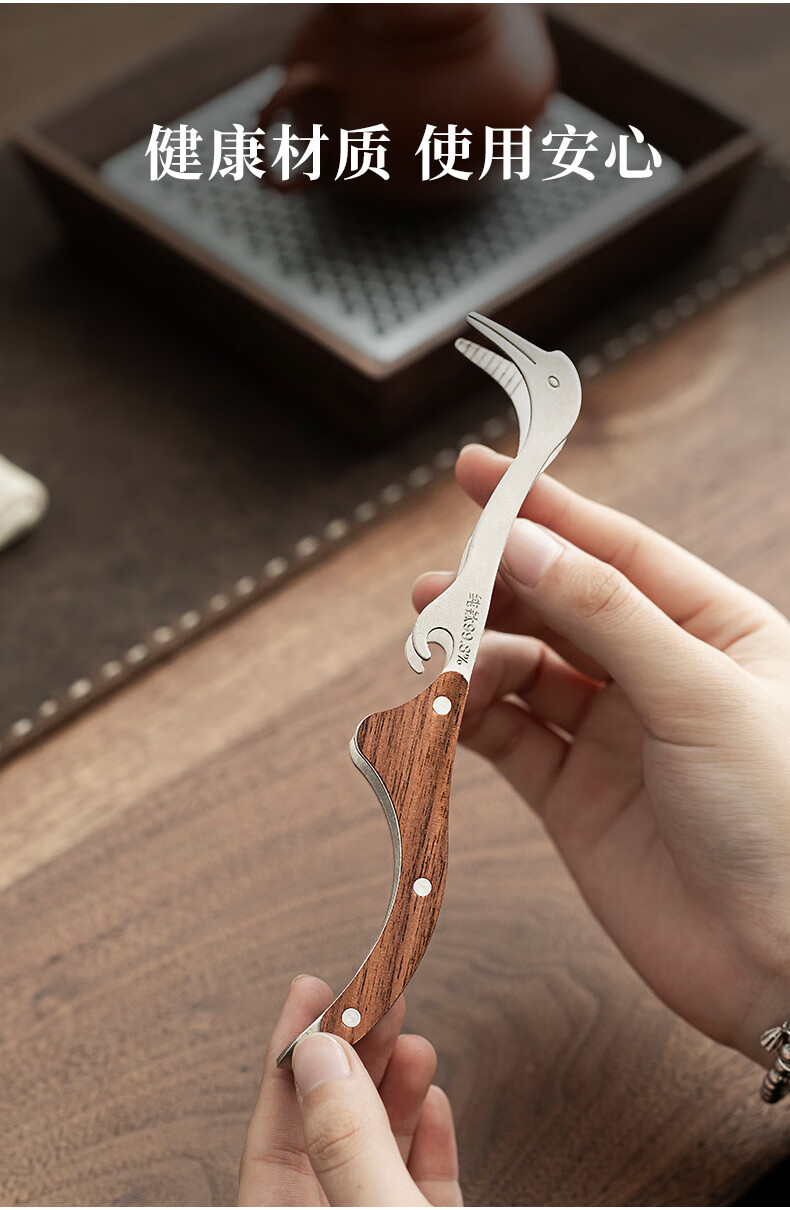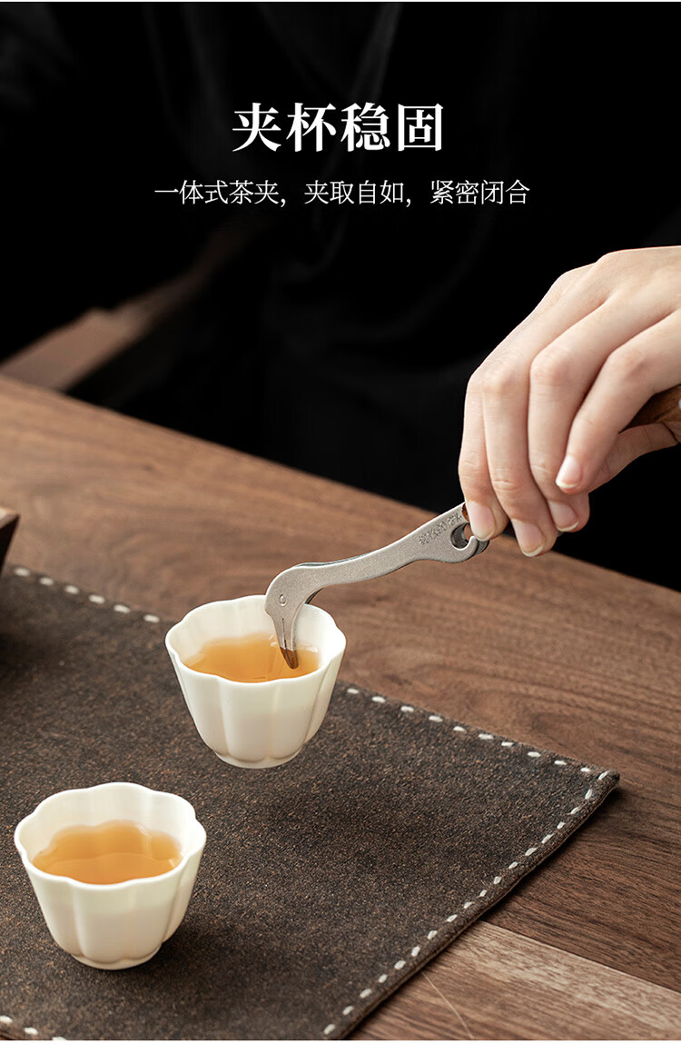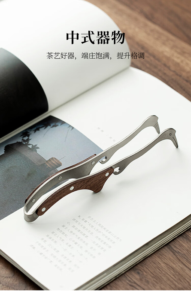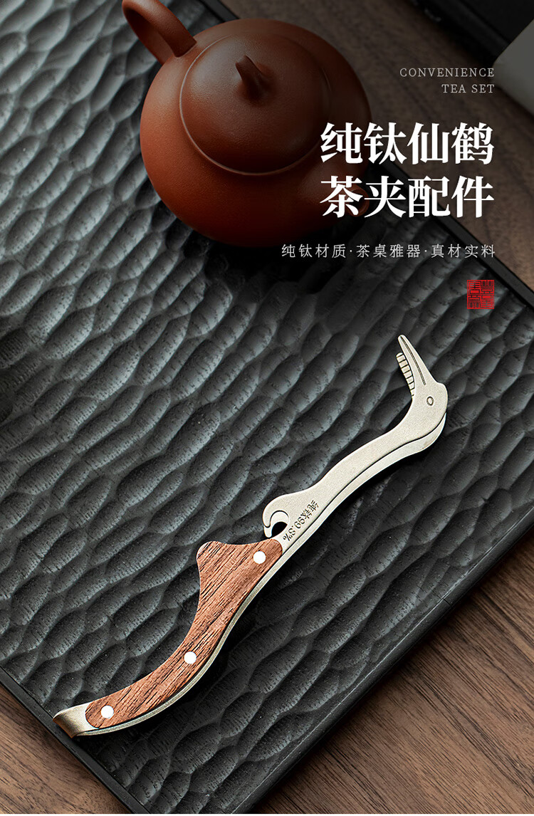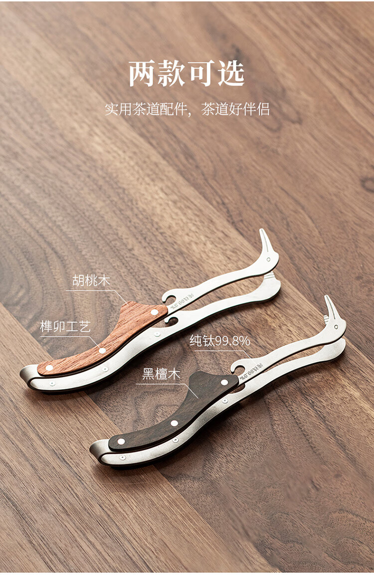 Tangfeng pure titanium tea clip single household light luxury high-end tea set accessories tea leaf clip tea cup clip tweezers tea set pure titanium walnut crane tea clip (gift box)
