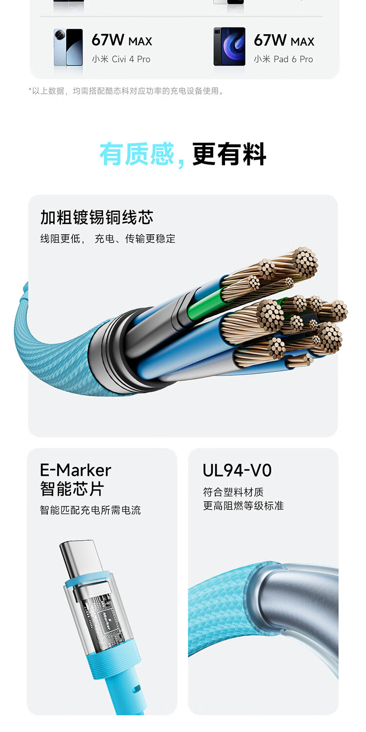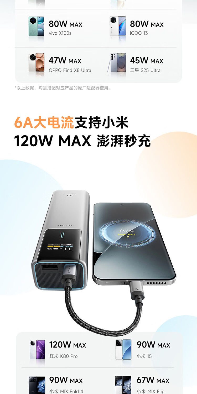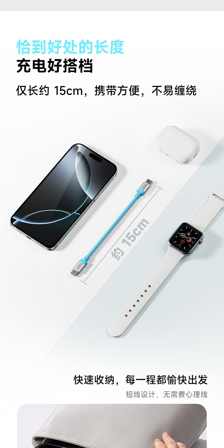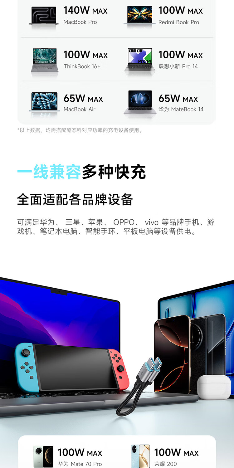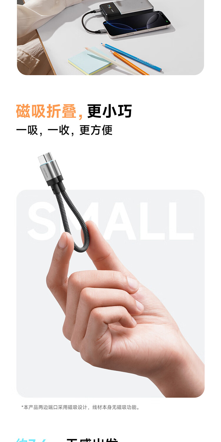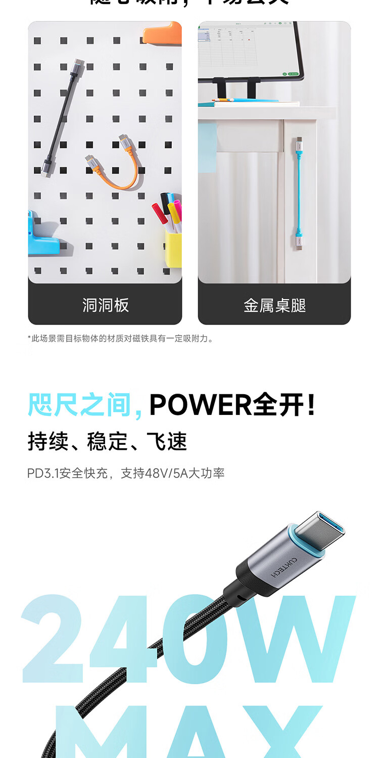 CUKTECH CP braided data cable charging cable 6A high power 120/240w fast charging Type-CtoC suitable for Xiaomi Apple Huawei tablet laptop black-15cm short line 120/240w fast charging cable CP braided rainbow cable-double Type-C