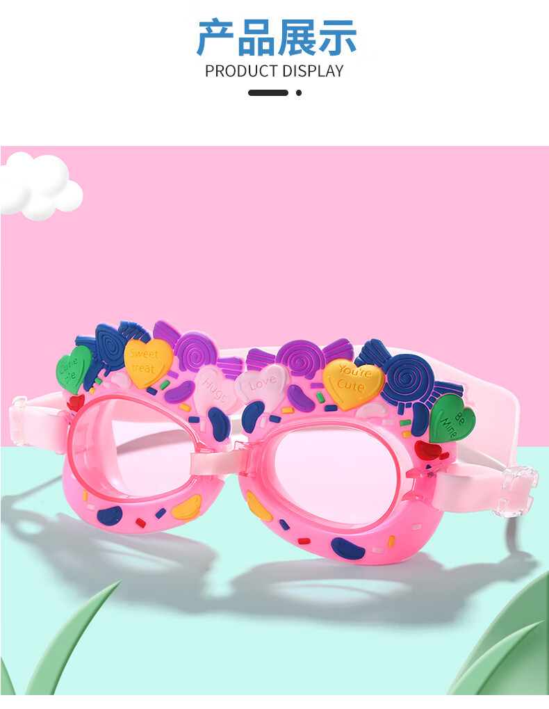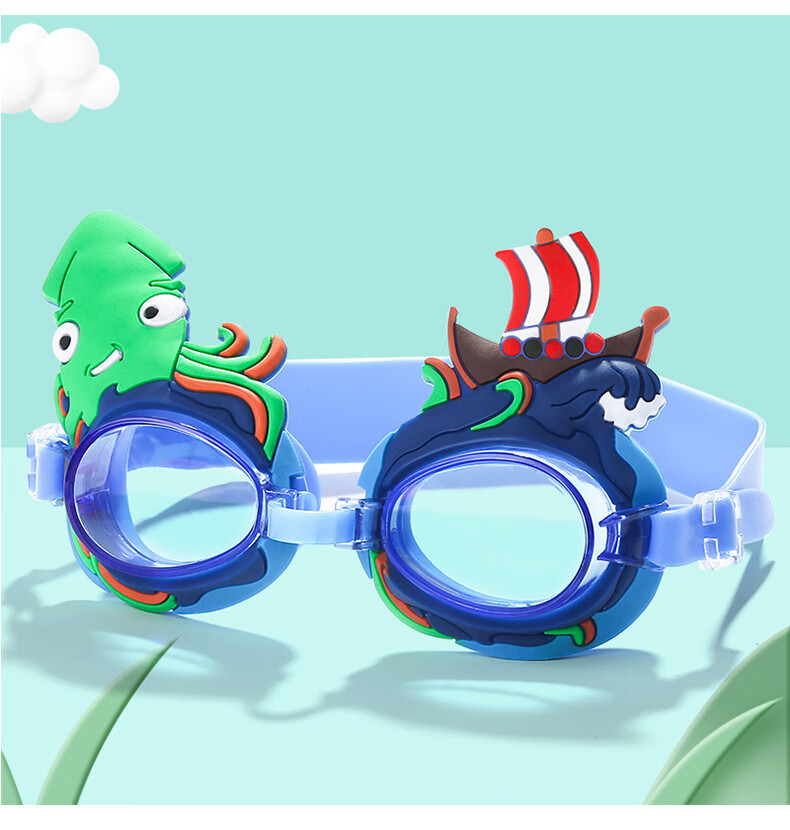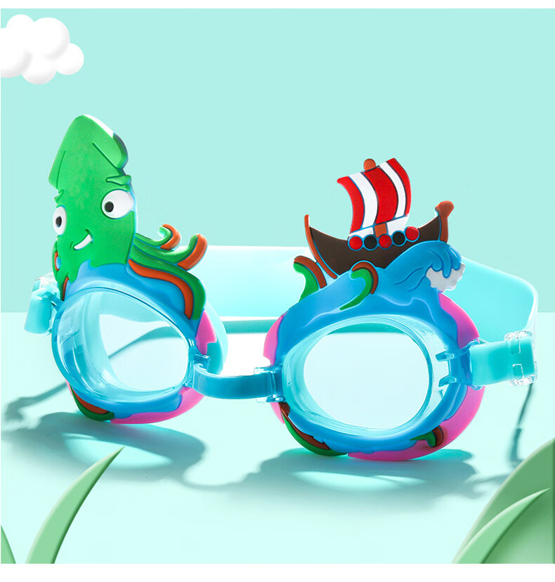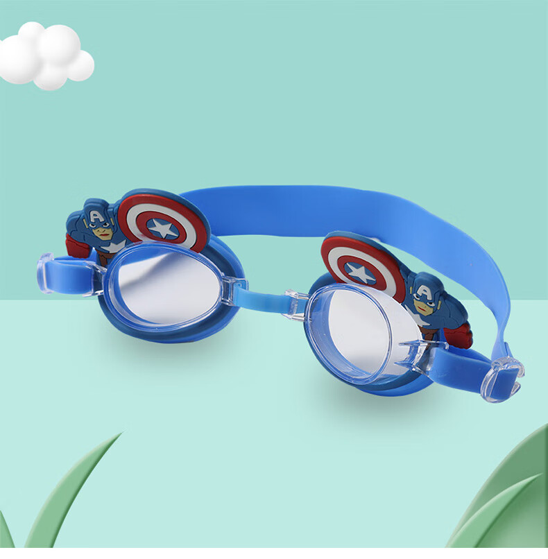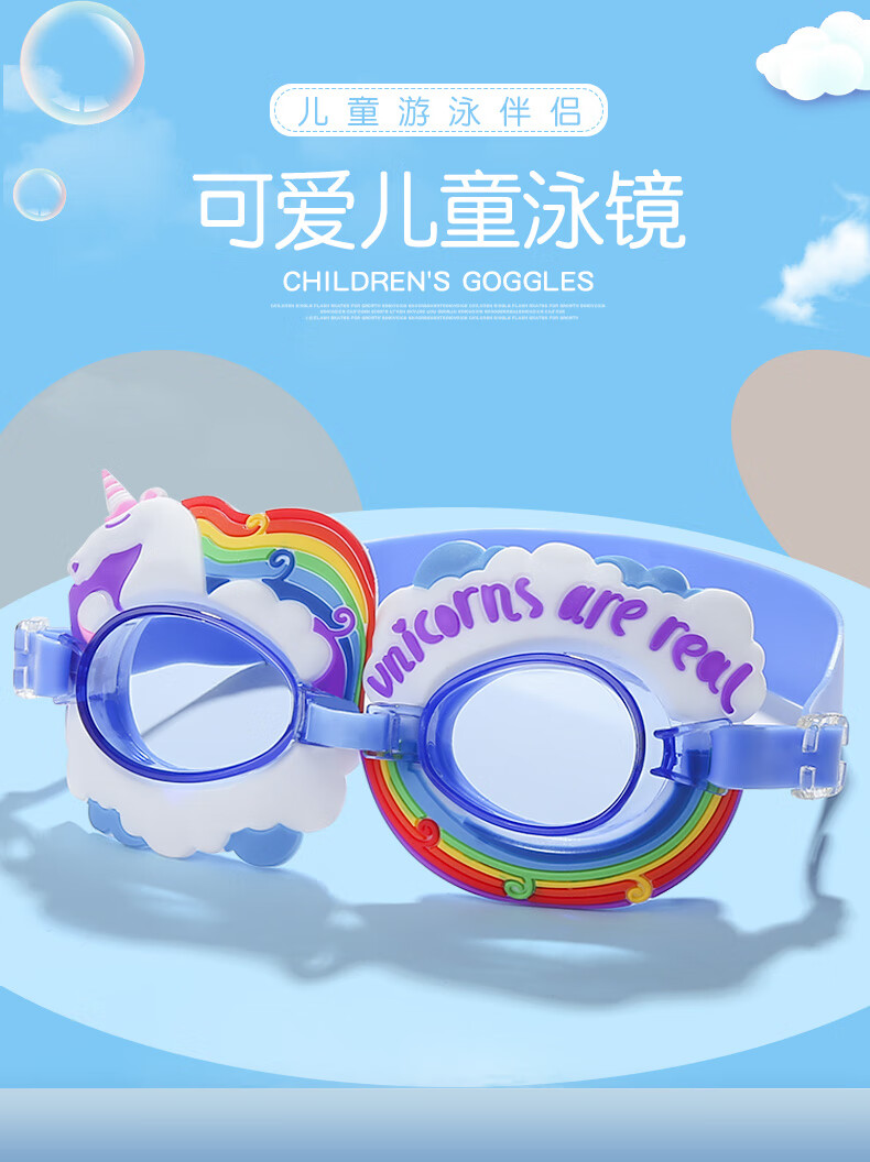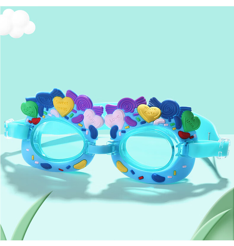 Summer new children's swimming goggles HD anti-fog, comfortable and cute, cartoon flat waterproof swimming goggles for boys and girls, love blue, flat