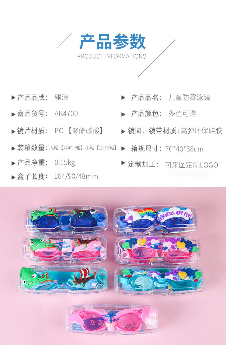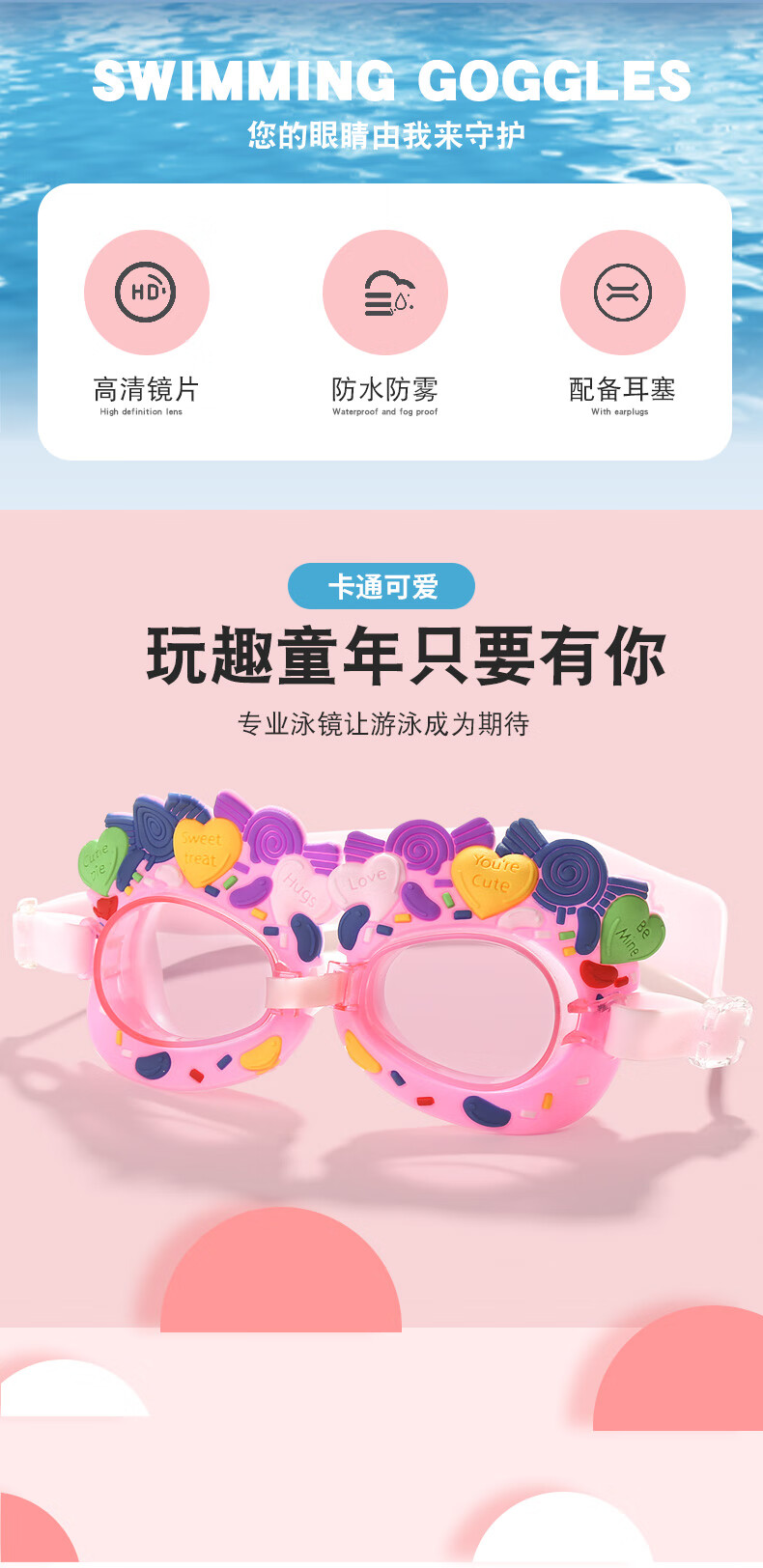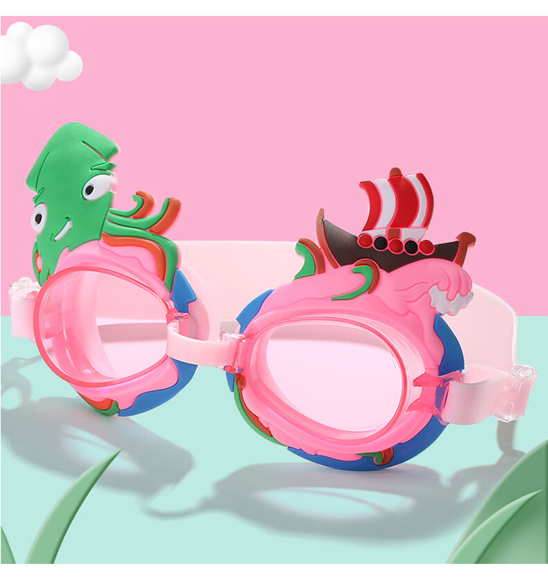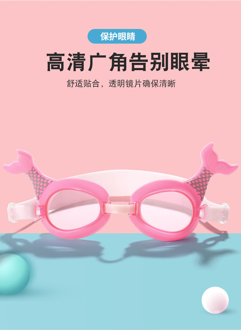 Summer new children's swimming goggles HD anti-fog, comfortable and cute, cartoon flat waterproof swimming goggles for boys and girls, love blue, flat