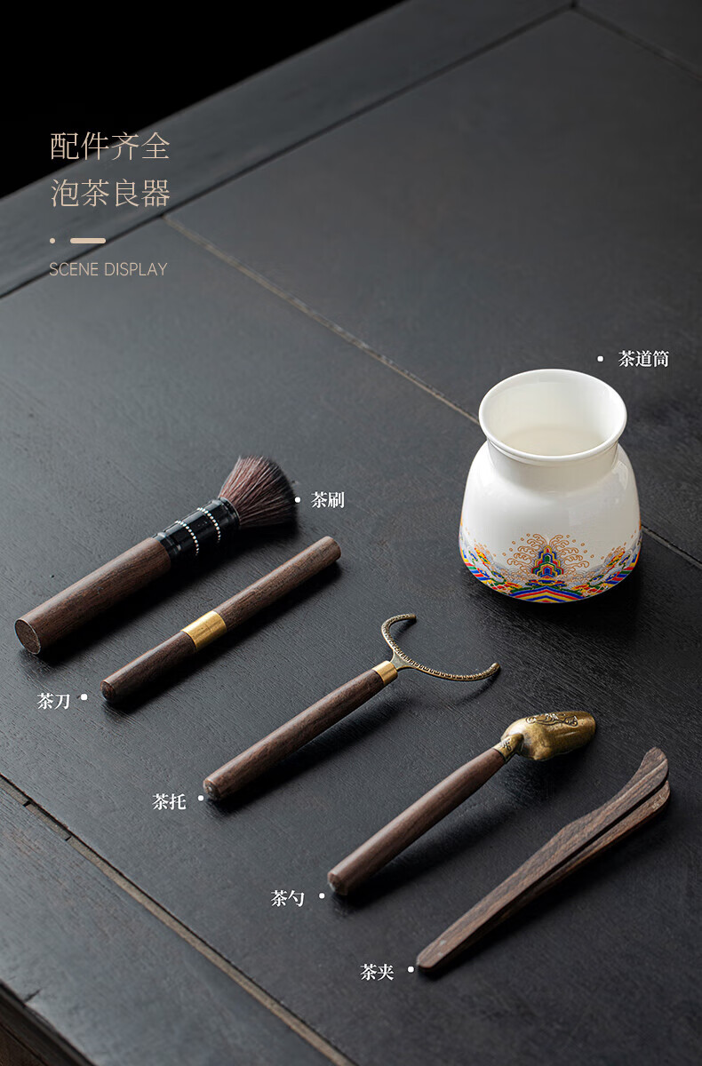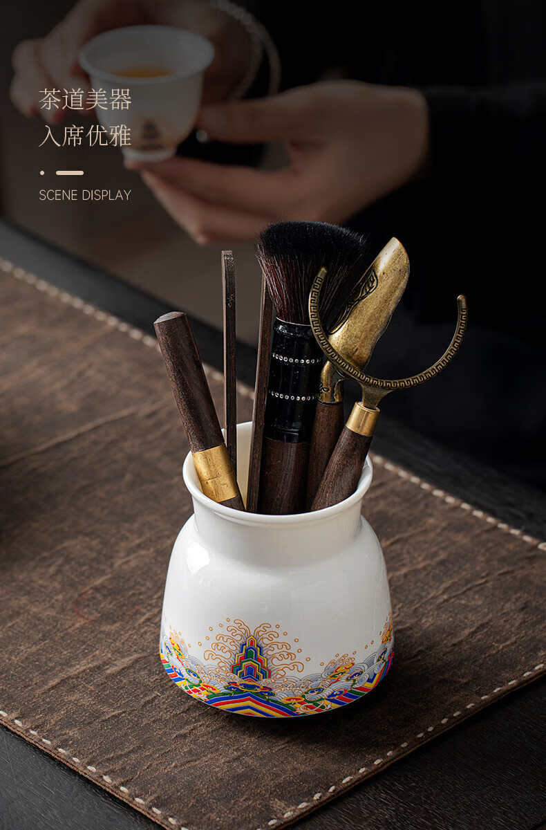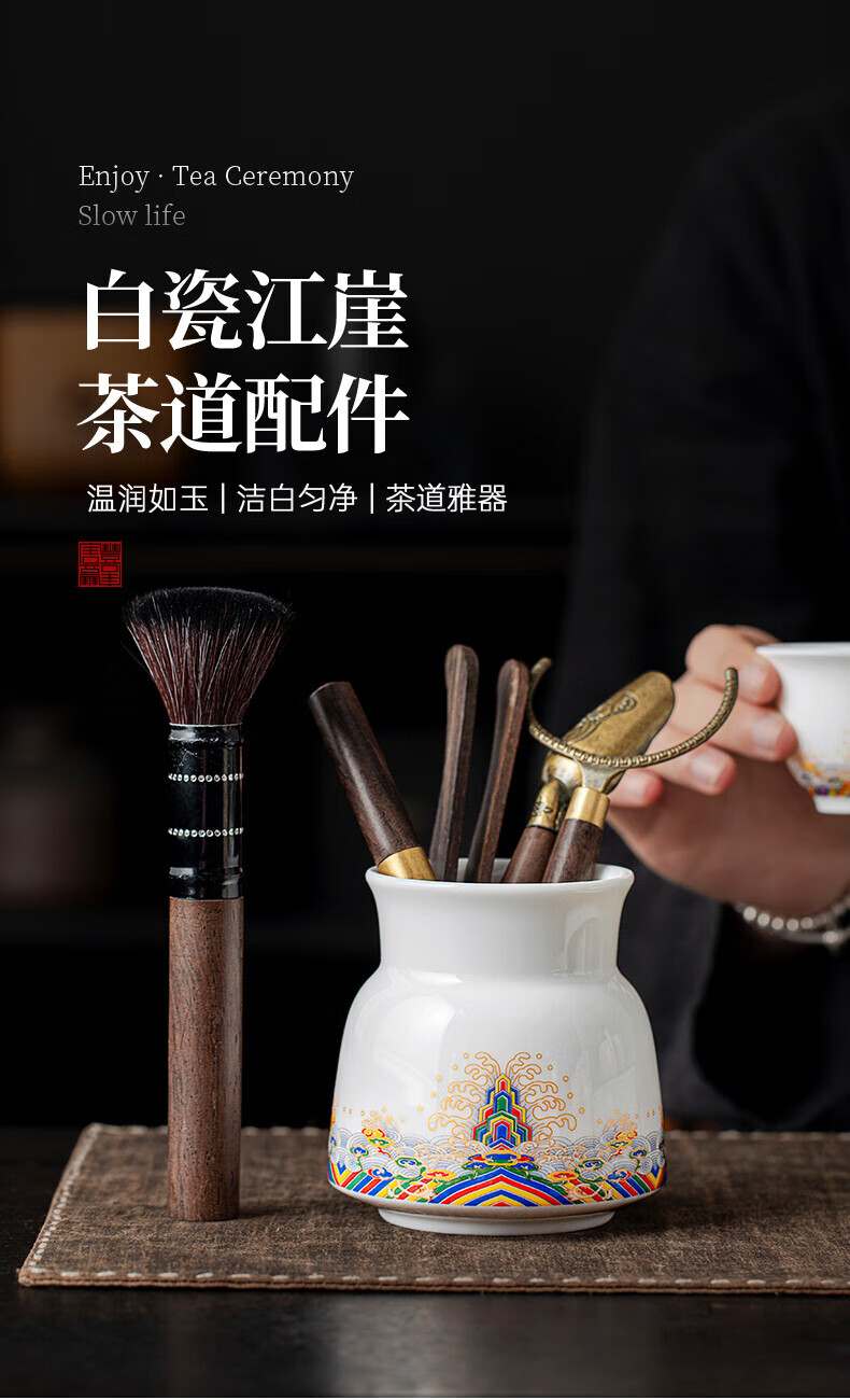 Tang Feng Tea Ceremony Six Gentlemen Set High-end Light Luxury Kung Fu Tea Set Accessories White Porcelain Tea Cylinder Pot Keeping Pen Tea Clamp Tea Making Tools White Porcelain Jiangya Tea Ceremony Cylinder + Ebony Pinsheng Accessories