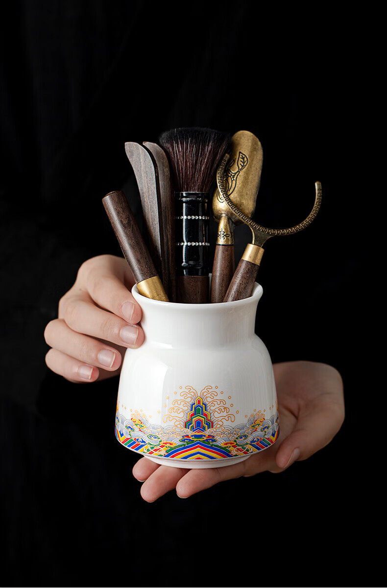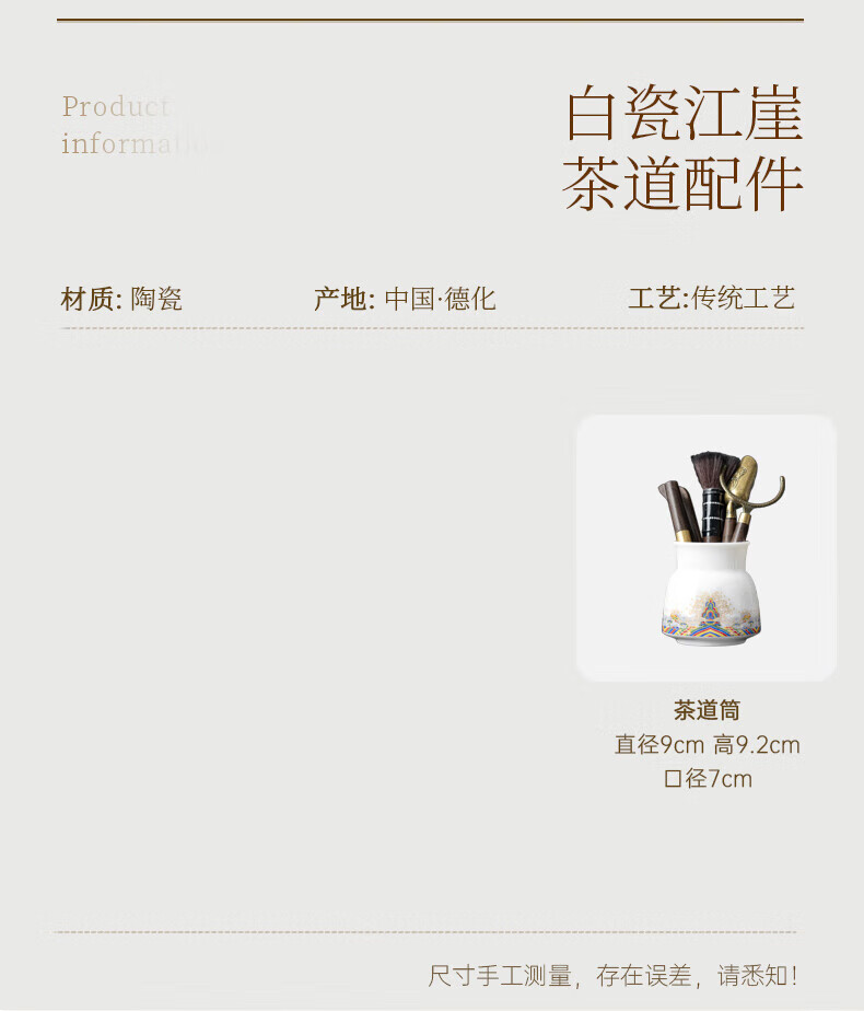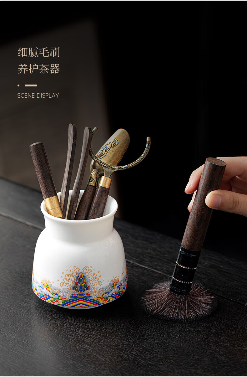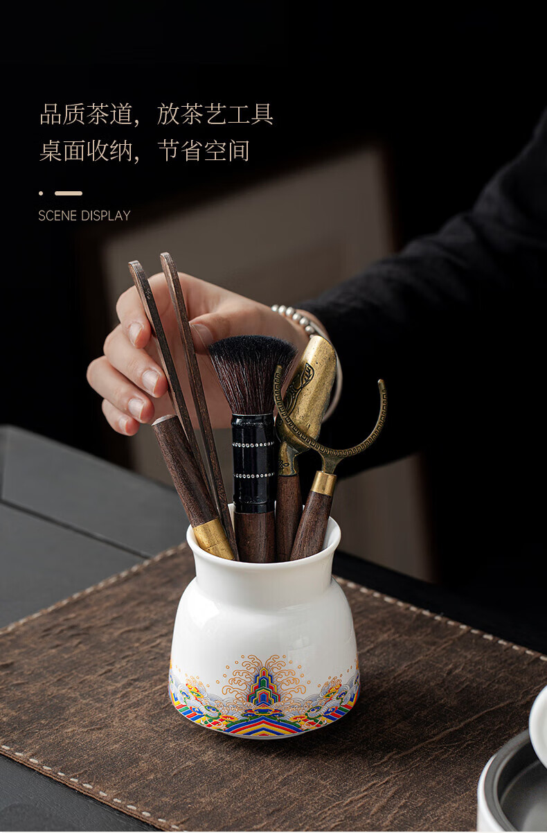 Tang Feng Tea Ceremony Six Gentlemen Set High-end Light Luxury Kung Fu Tea Set Accessories White Porcelain Tea Cylinder Pot Keeping Pen Tea Clamp Tea Making Tools White Porcelain Jiangya Tea Ceremony Cylinder + Ebony Pinsheng Accessories