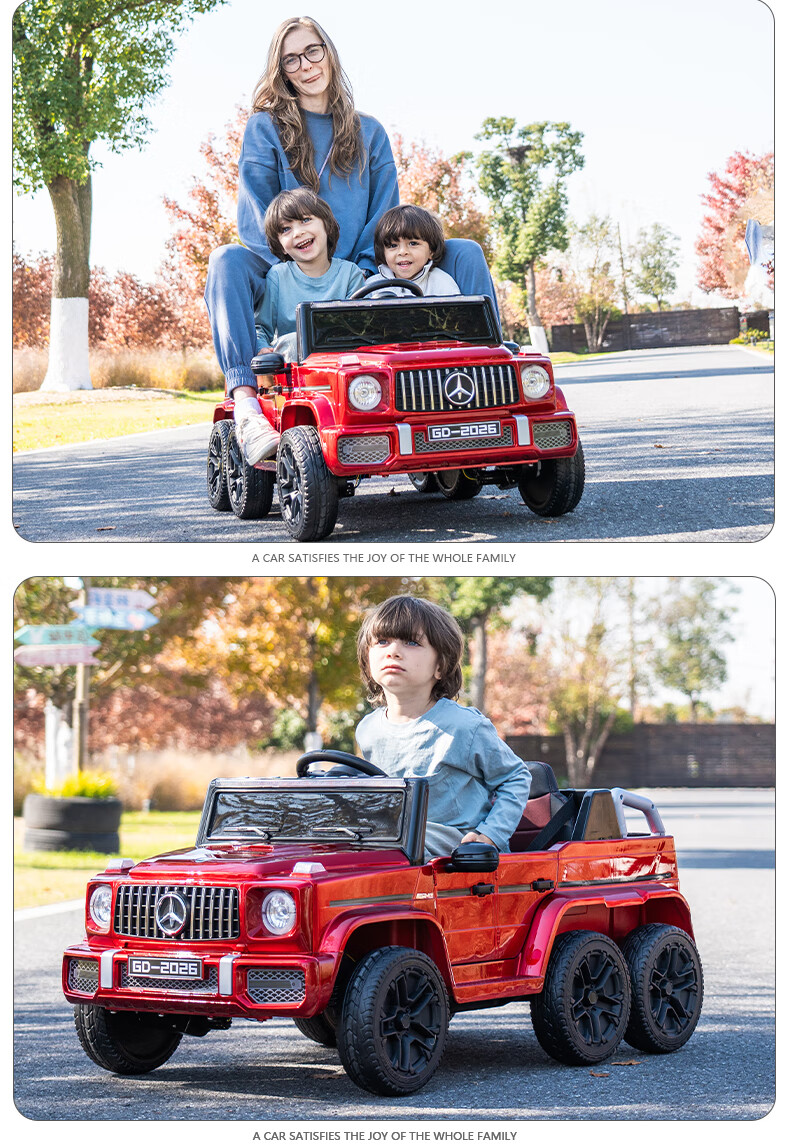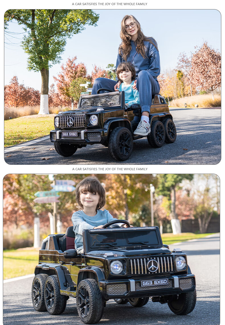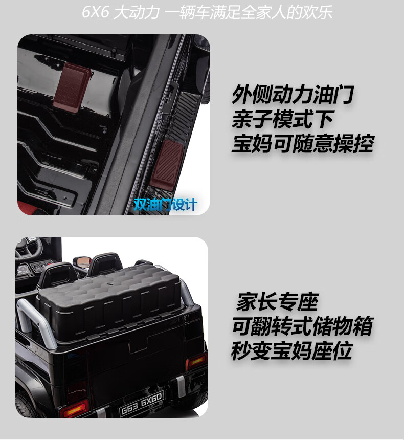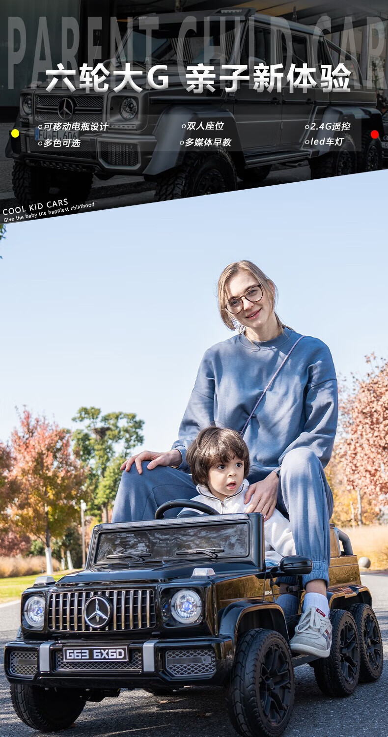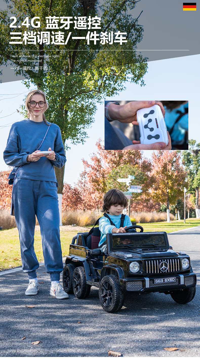 Little Jelly parent-child children's electric off-road vehicle Big G baby remote control car can sit on adults and children six-wheel charging toy car, black, four-wheel drive 12V7 + leather seat + dual throttles