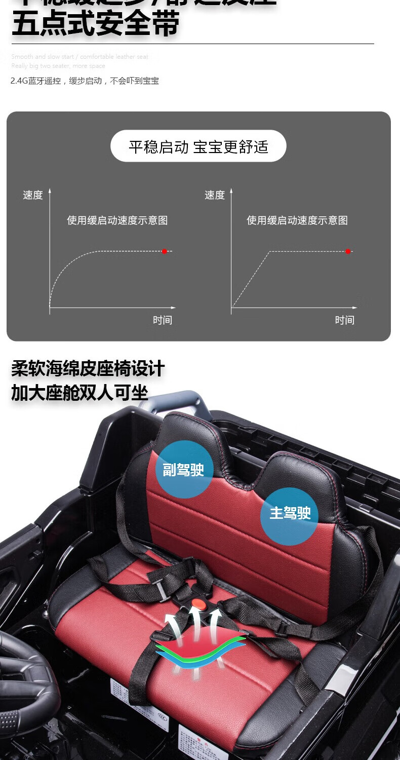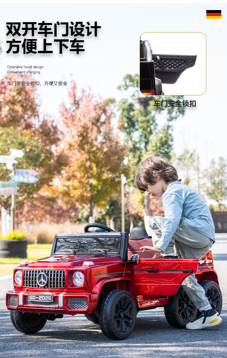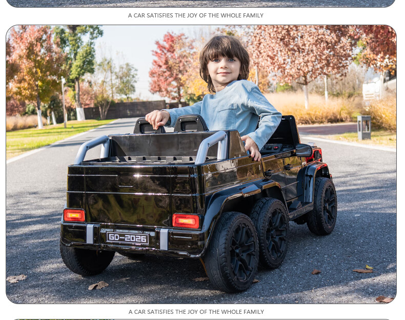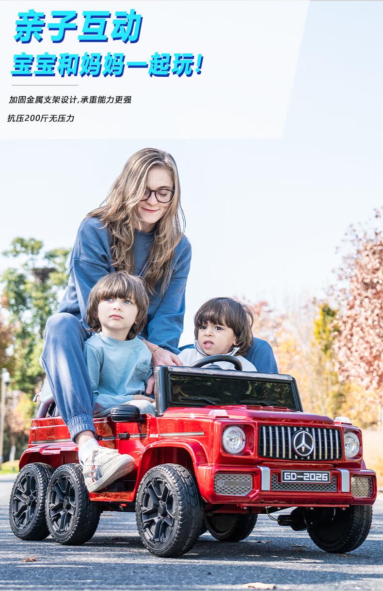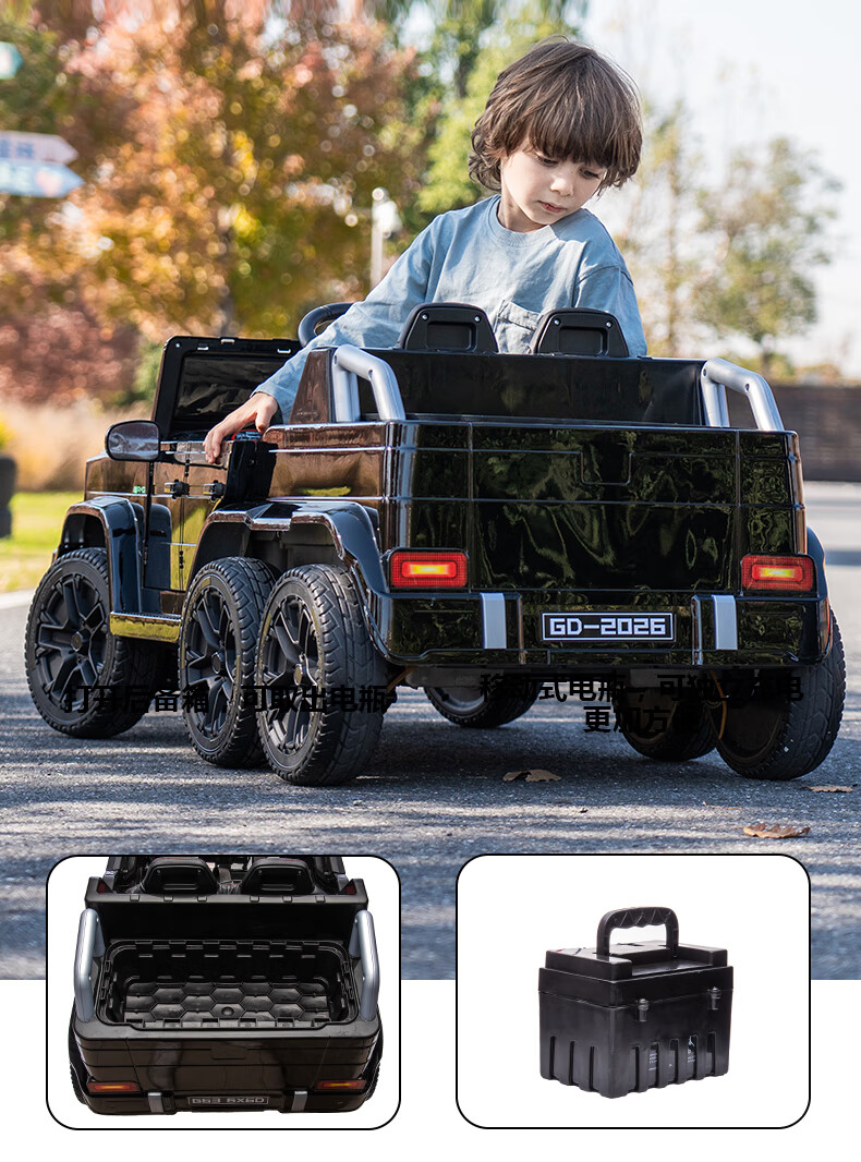 Little Jelly parent-child children's electric off-road vehicle Big G baby remote control car can sit on adults and children six-wheel charging toy car, black, four-wheel drive 12V7 + leather seat + dual throttles