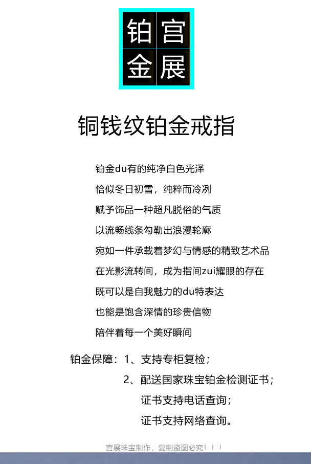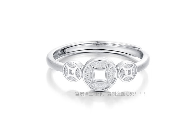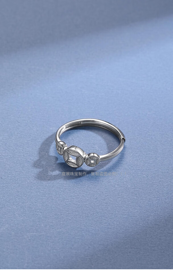 Gongzhan 950 pure platinum copper coin ring for women to attract wealth and transport, platinum ring on middle finger, live index finger ring, simple and elegant, platinum ring for attracting wealth, copper coin, about 2.9-3.1 grams