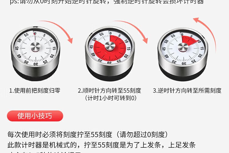 Magnetic mechanical timer for kitchen learning, visual timer for children, self-discipline time management reminder, long battery life, 1 piece
