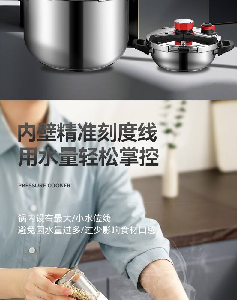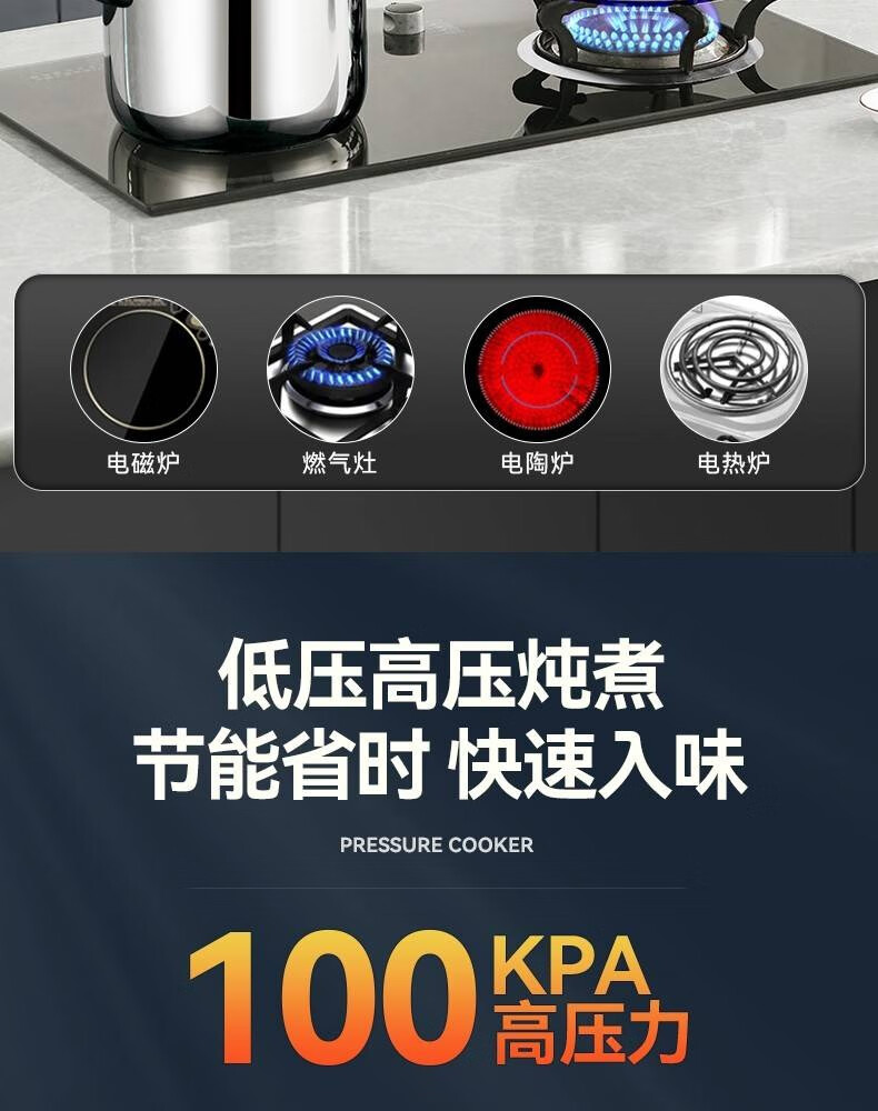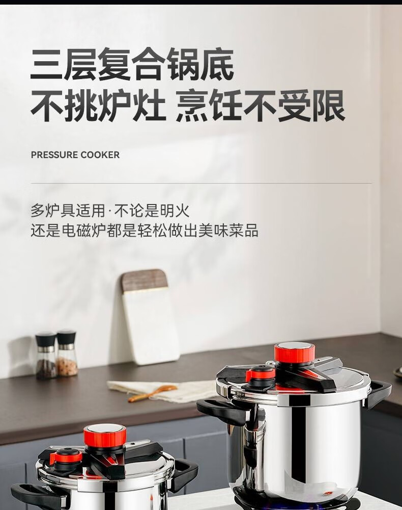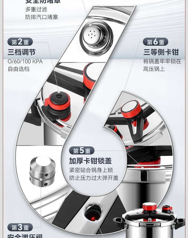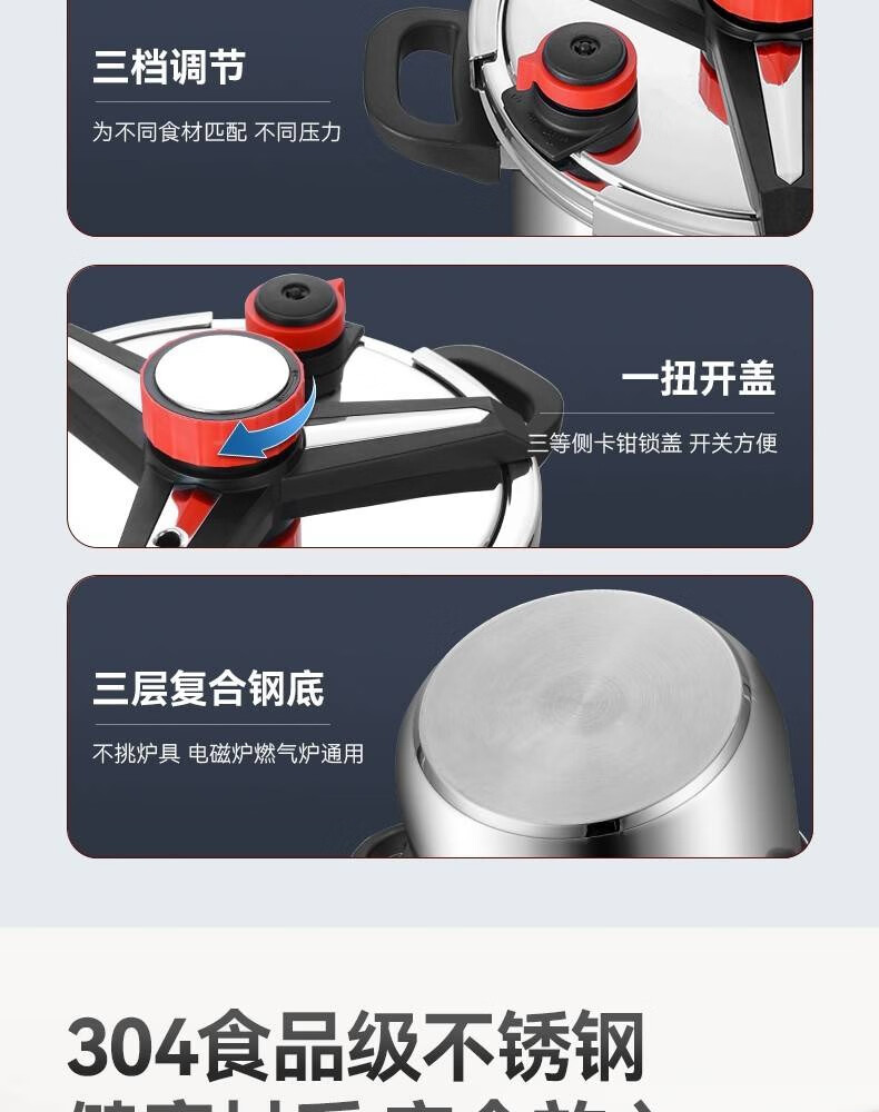 Fenghui brand three-prong explosion-proof pressure cooker 304 stainless steel six insurance pressure cooker gas electromagnetic universal 16cm/2.4L