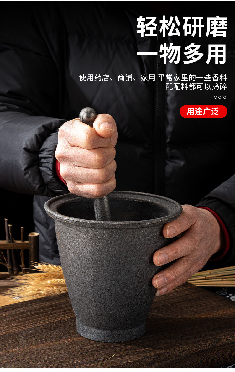 Meikejie old-fashioned chili pepper masher cast iron thickened grinder mashing jar mashing pepper grinder mashing jar garlic masher extra large cast iron grinder