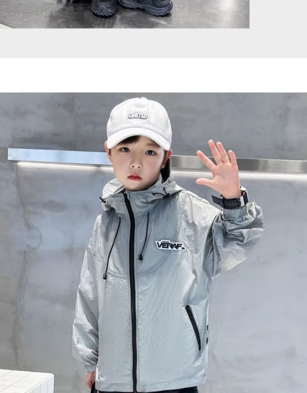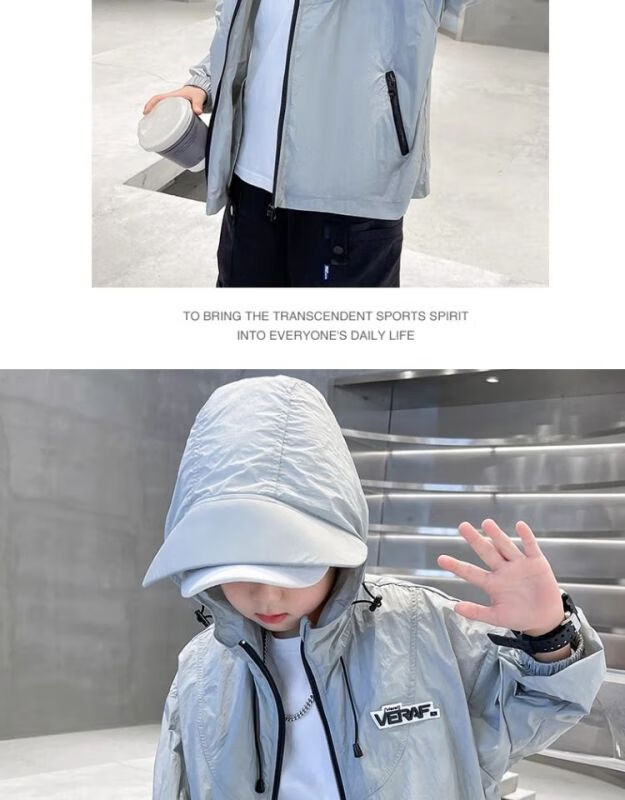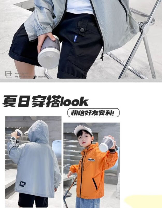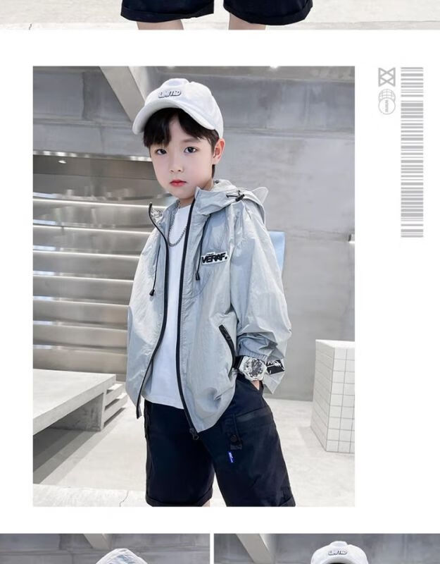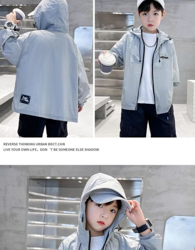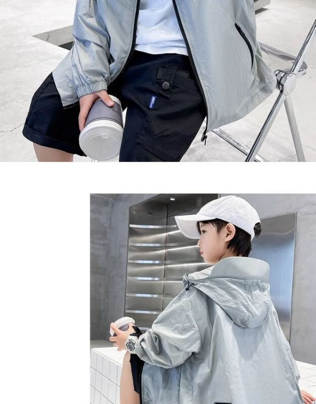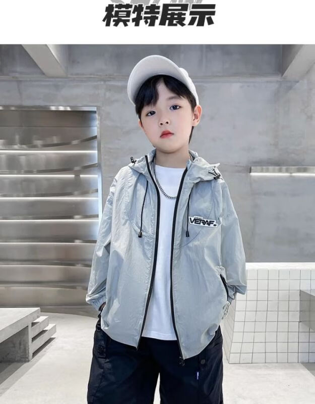 Boys' sun protection clothing jacket thin 2025 new medium and large children's summer boys' sun protection clothing gray 150