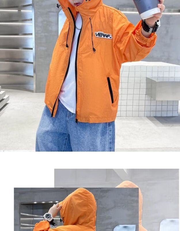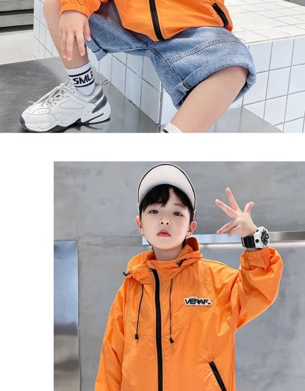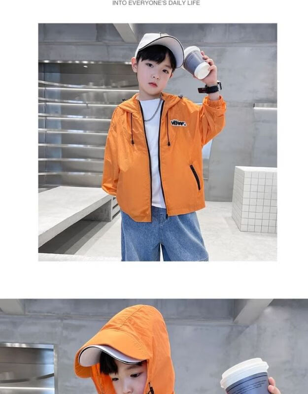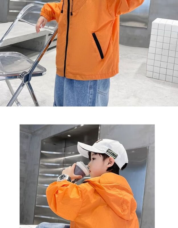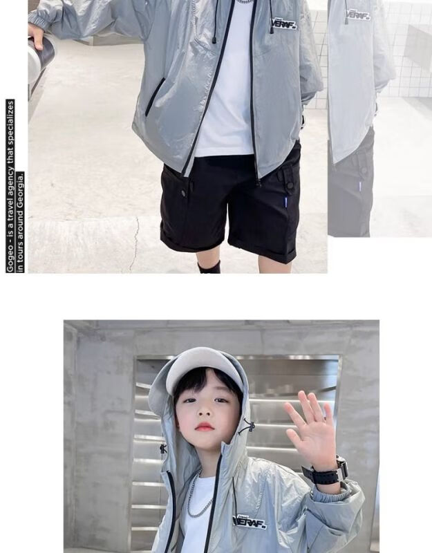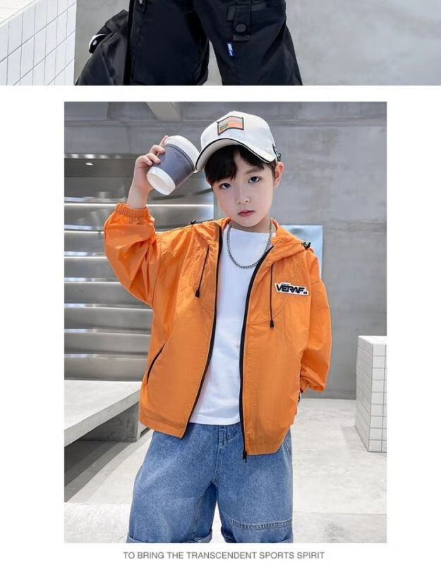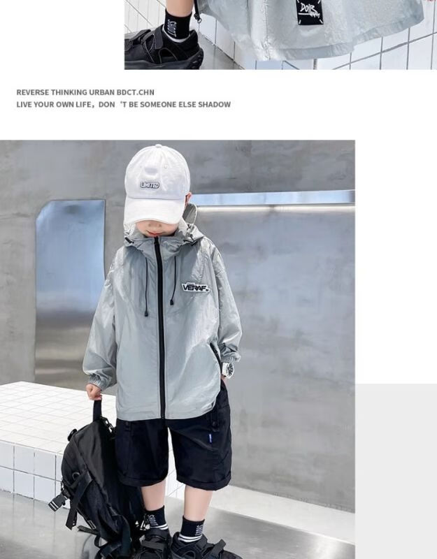 Boys' sun protection clothing jacket thin 2025 new medium and large children's summer boys' sun protection clothing gray 150