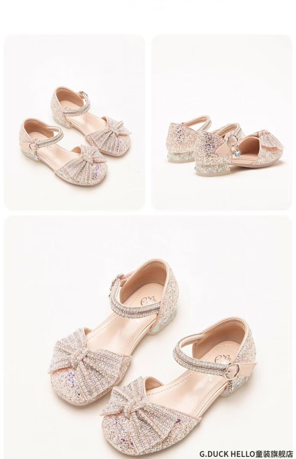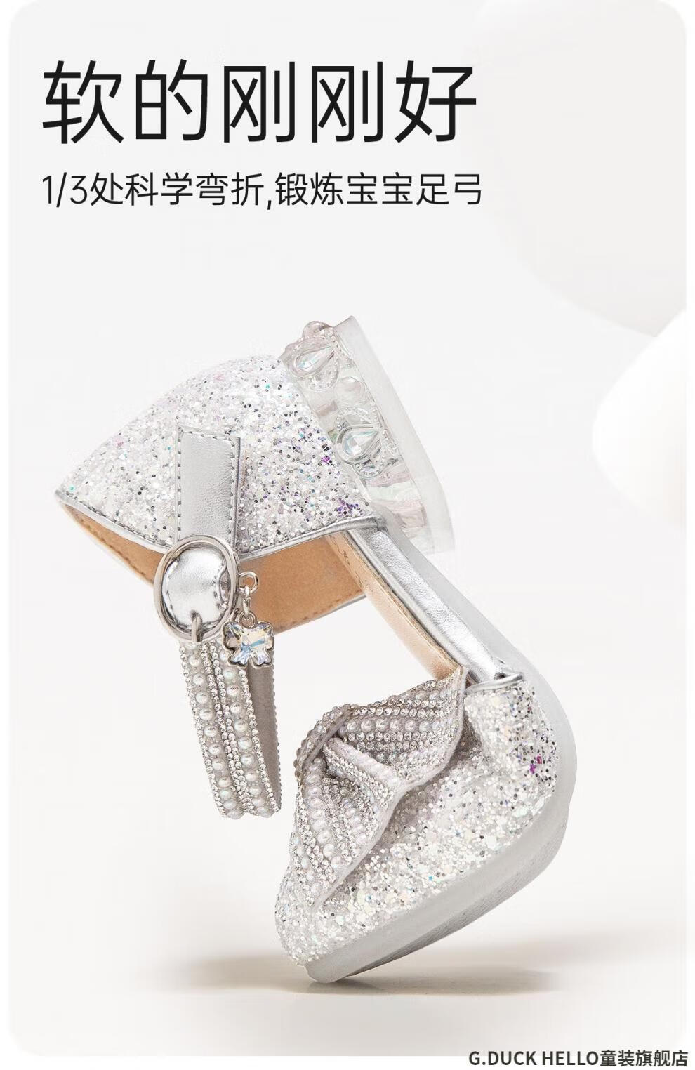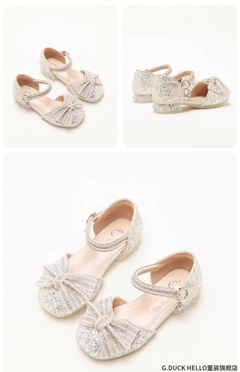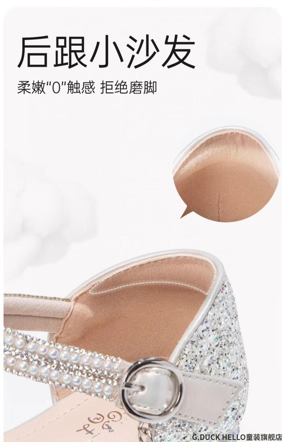 G.DUCKKIDS Little Yellow Duck Children's Shoes Girls Sandals New Children's Shoes Summer Little Girls Crystal Shoes High Heels Baby Leather Shoes Silver 36 Inner Length 21.5CM