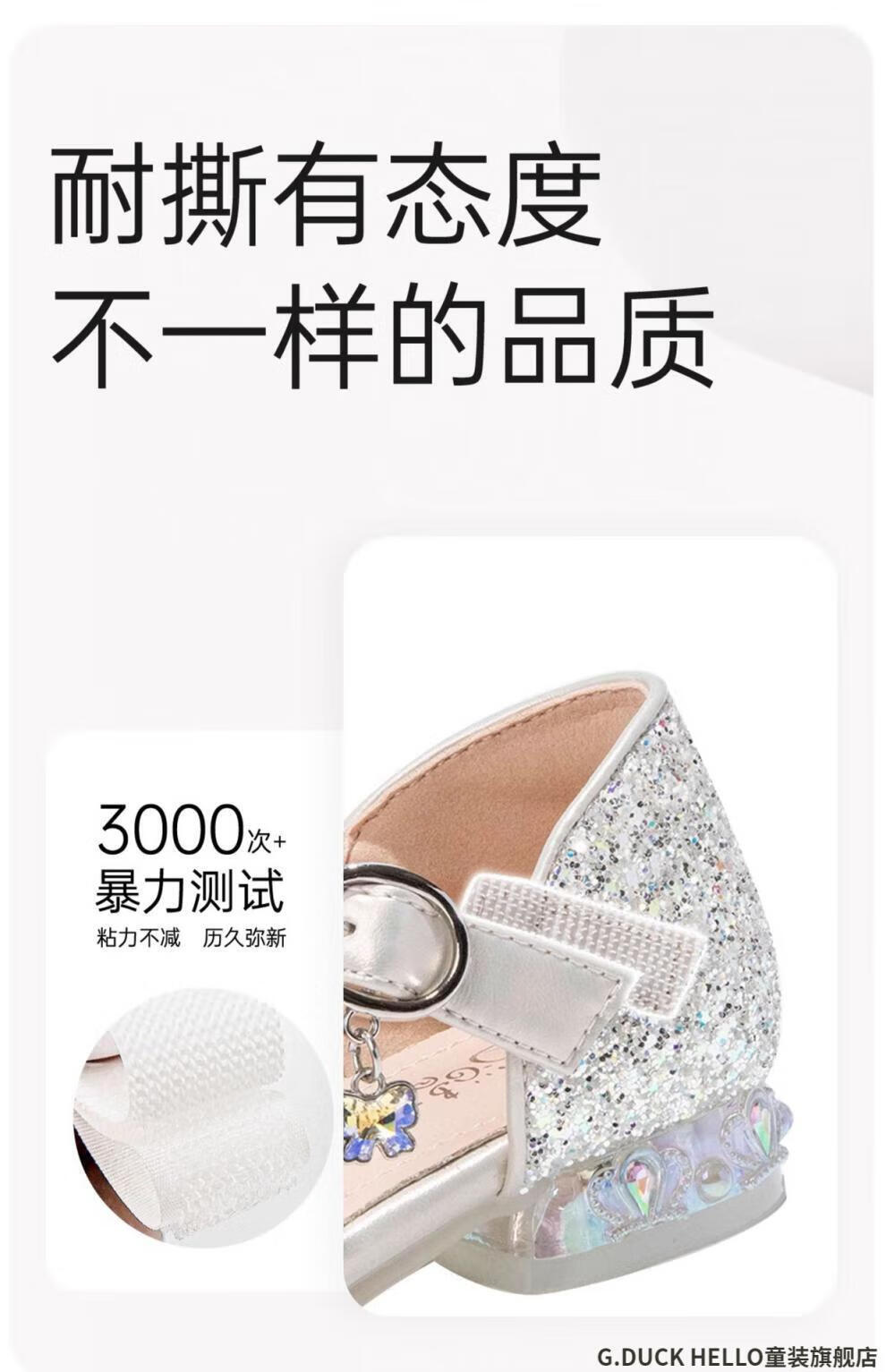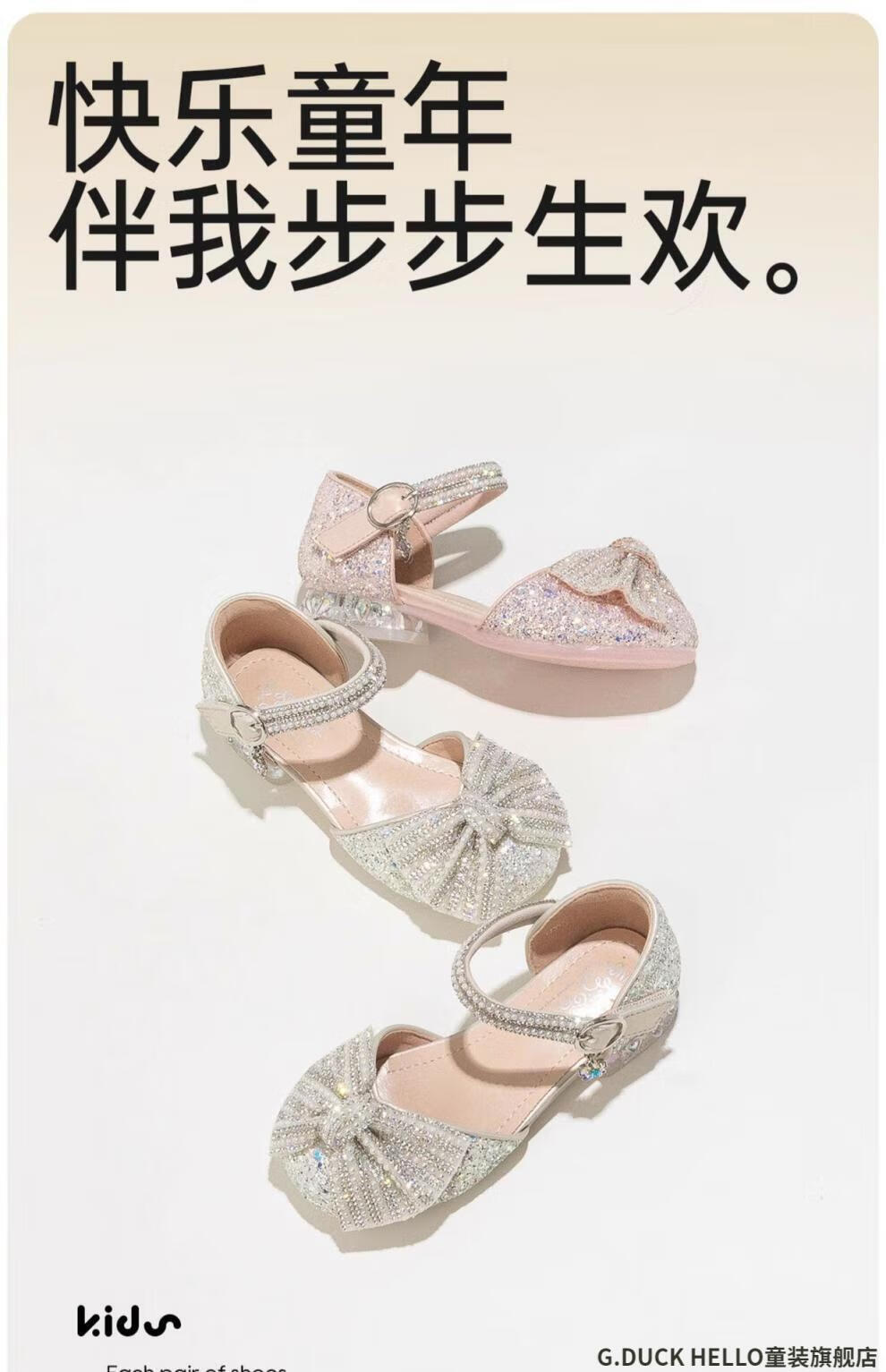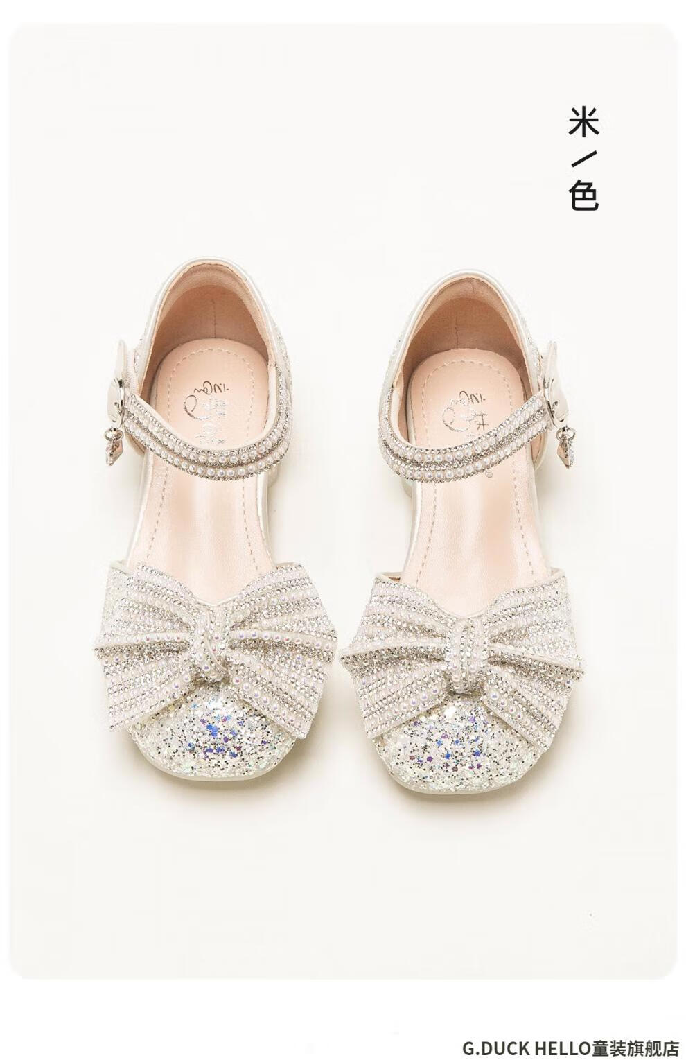 G.DUCKKIDS Little Yellow Duck Children's Shoes Girls Sandals New Children's Shoes Summer Little Girls Crystal Shoes High Heels Baby Leather Shoes Silver 36 Inner Length 21.5CM