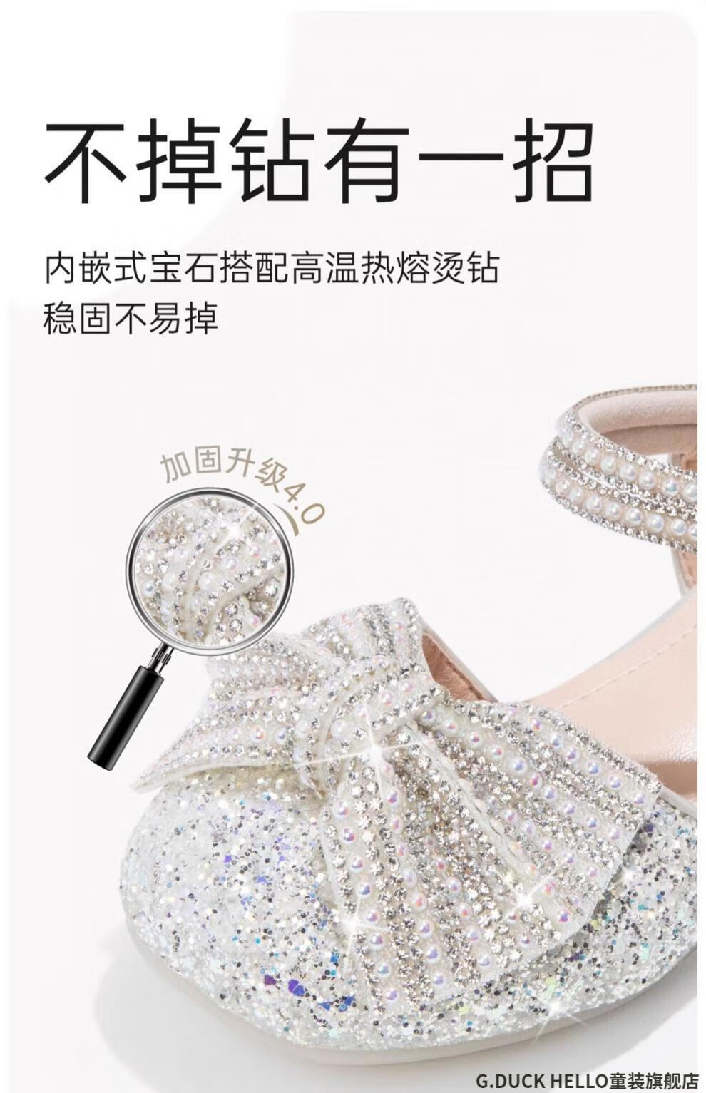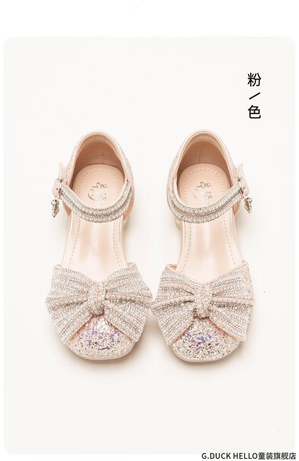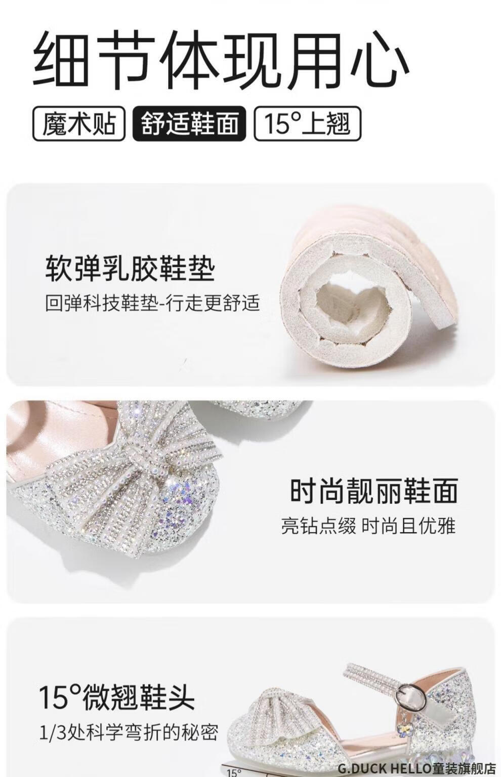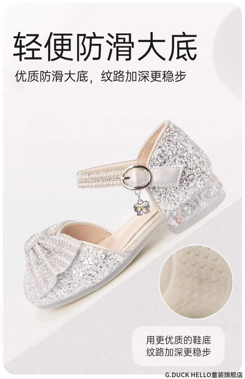 G.DUCKKIDS Little Yellow Duck Children's Shoes Girls Sandals New Children's Shoes Summer Little Girls Crystal Shoes High Heels Baby Leather Shoes Silver 36 Inner Length 21.5CM