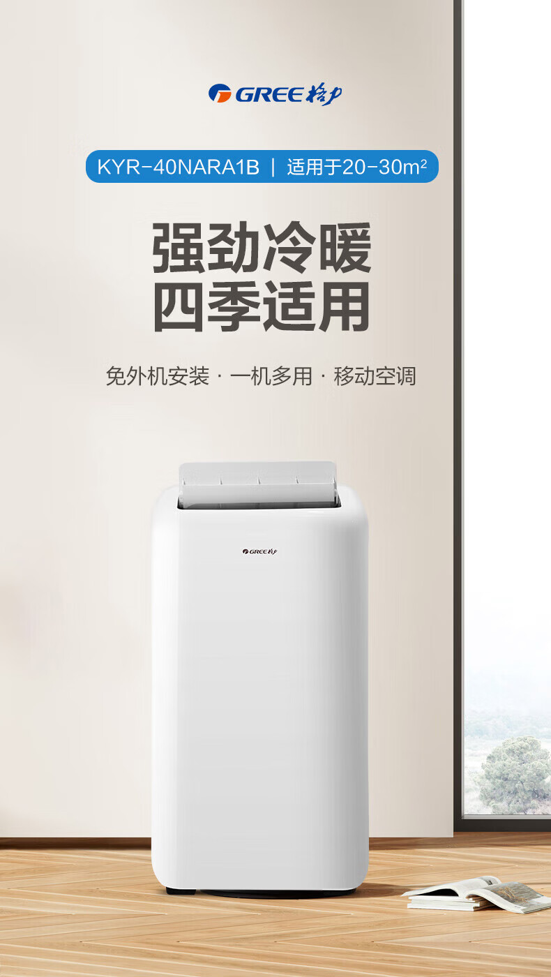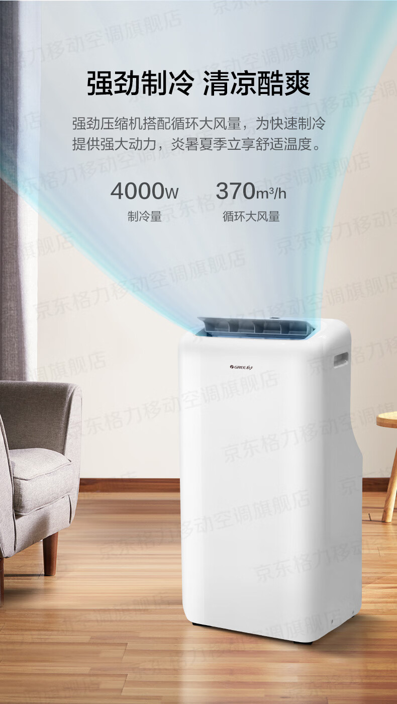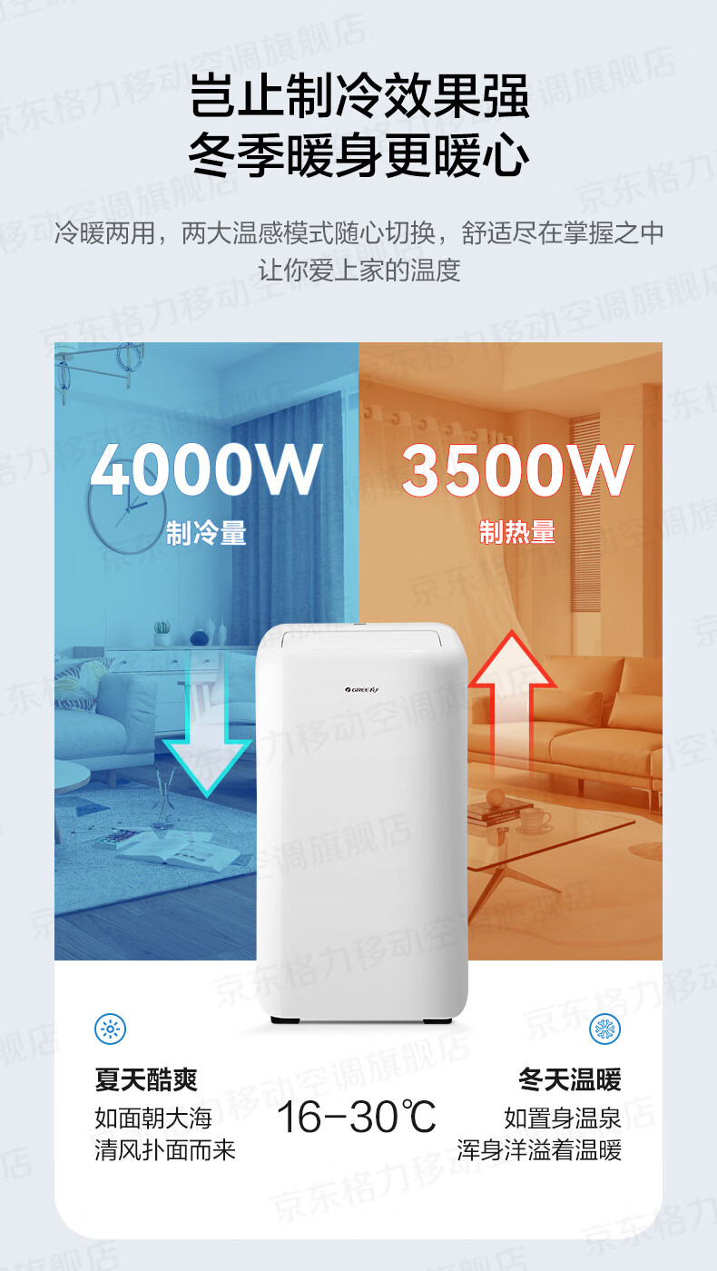 格力(GREE)移动空调正2匹冷暖无外机免打孔卧室公寓便携式移动外机免安装排水空调强劲制冷高效制热办公室 大1.5匹 冬夏冷暖两用-顺丰物流送货上门