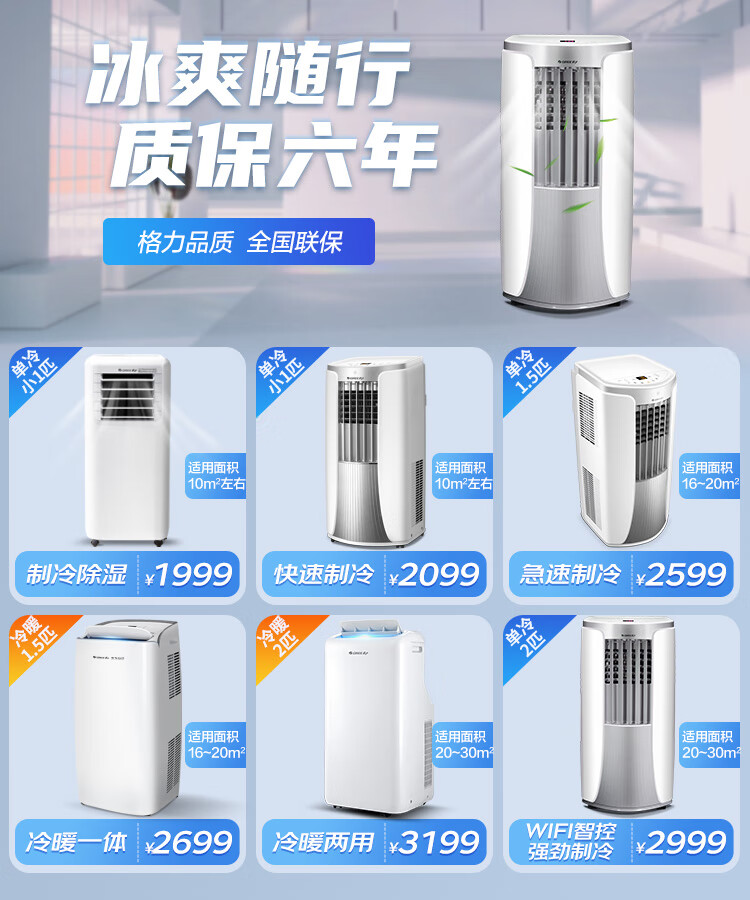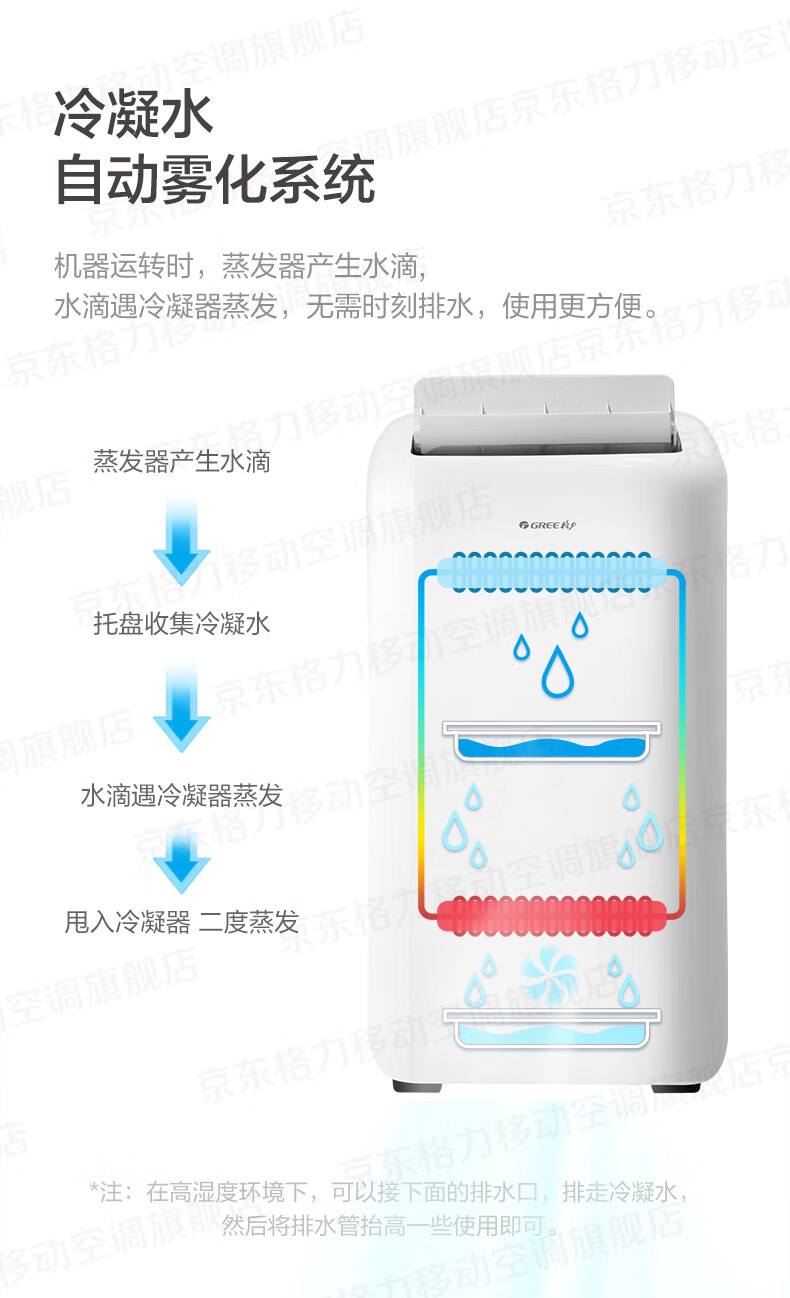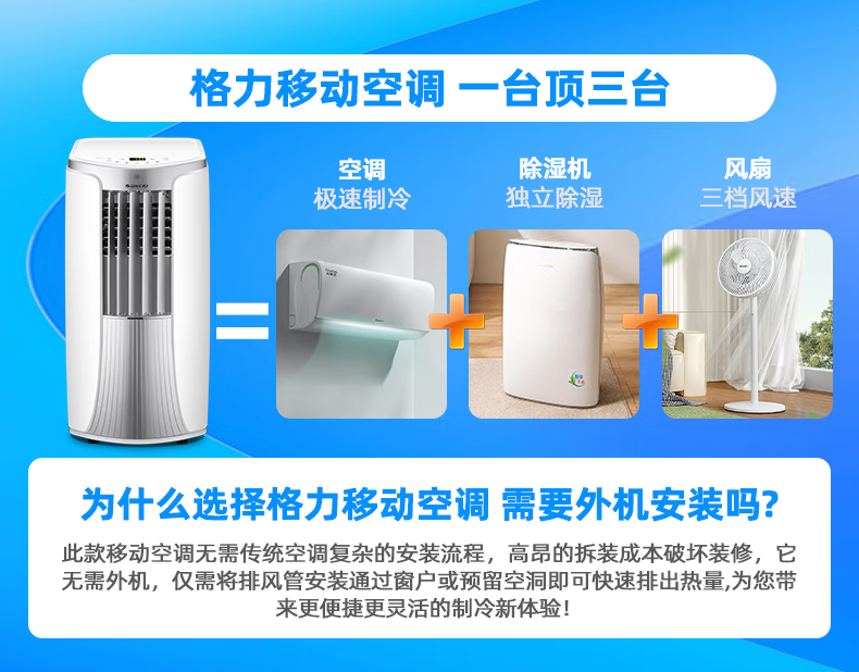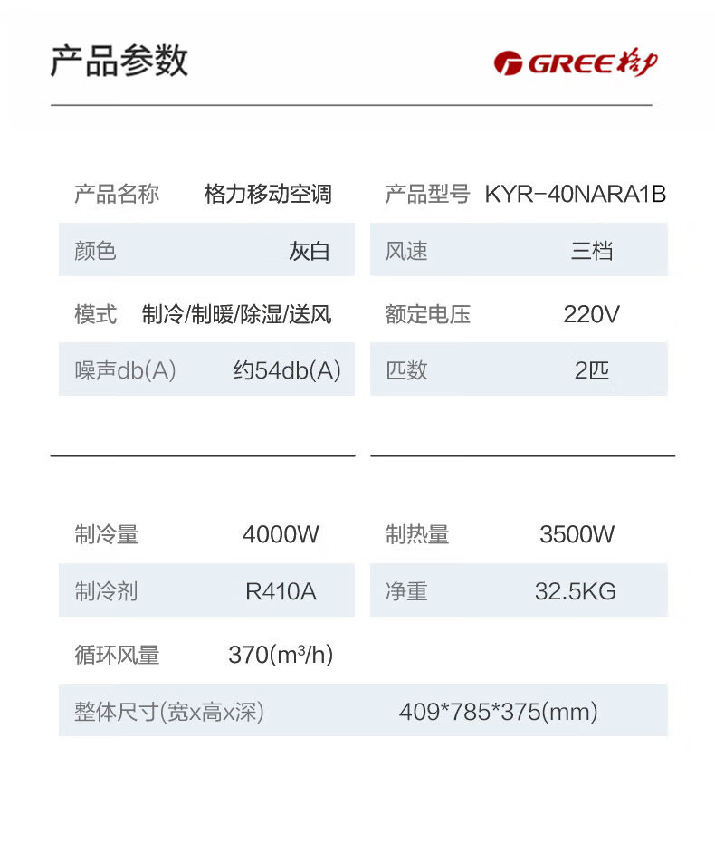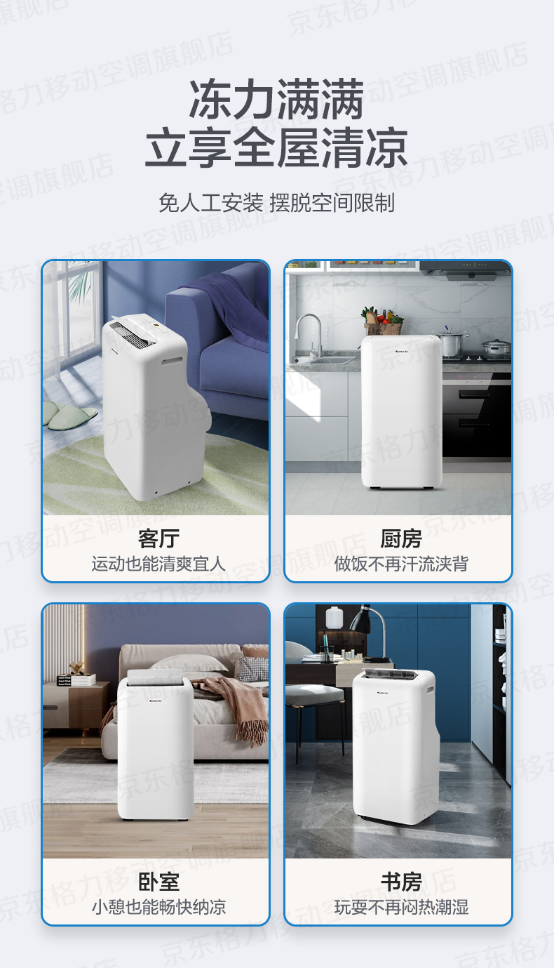 格力(GREE)移动空调正2匹冷暖无外机免打孔卧室公寓便携式移动外机免安装排水空调强劲制冷高效制热办公室 大1.5匹 冬夏冷暖两用-顺丰物流送货上门