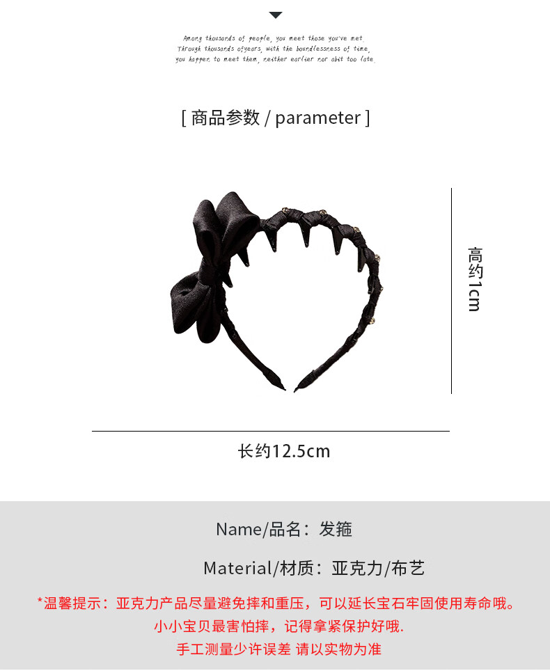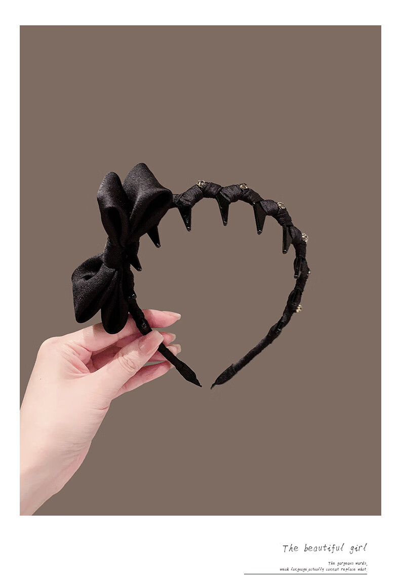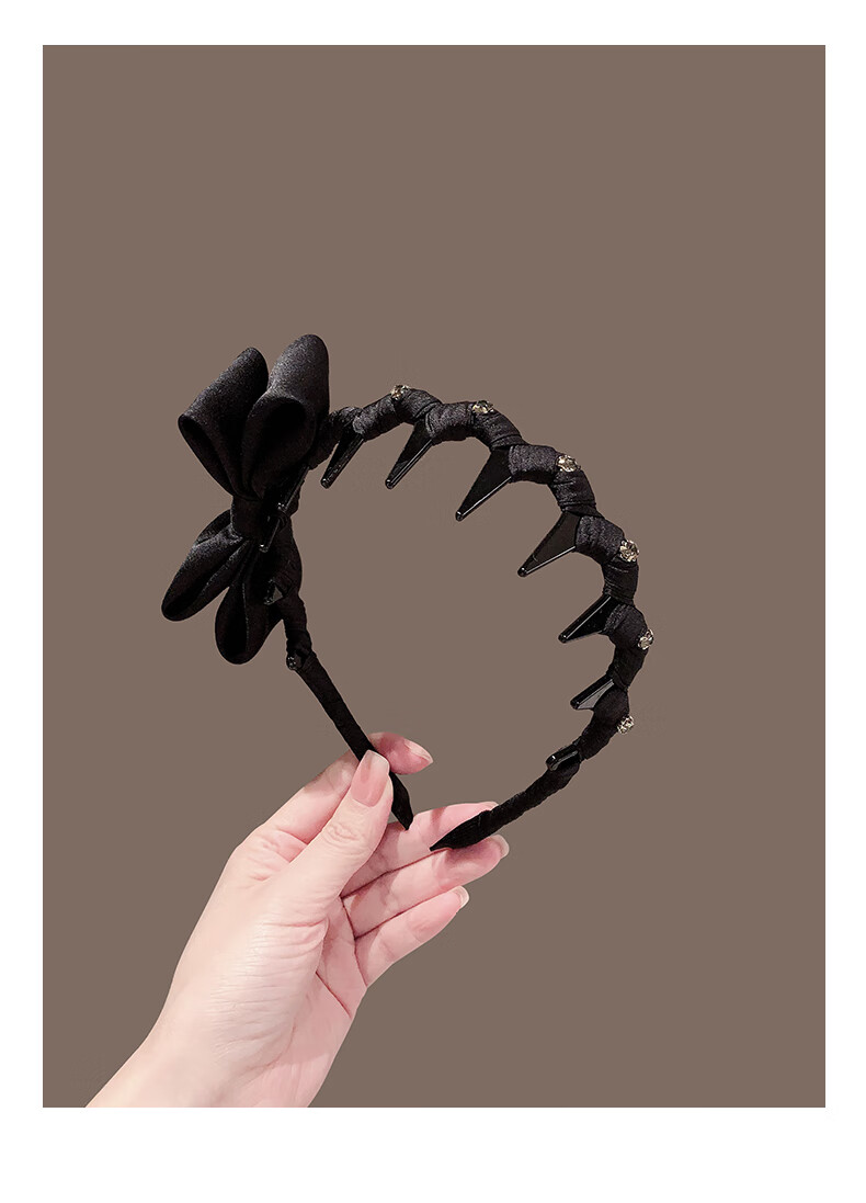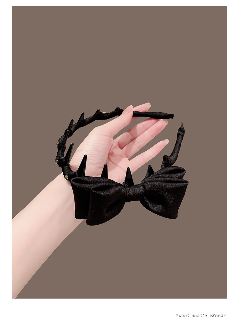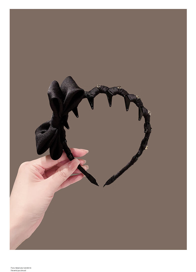 Zhuo Keke wavy toothed bow headband high skull broken hair clip satin headband 2025 new high-end hair accessories headband black
