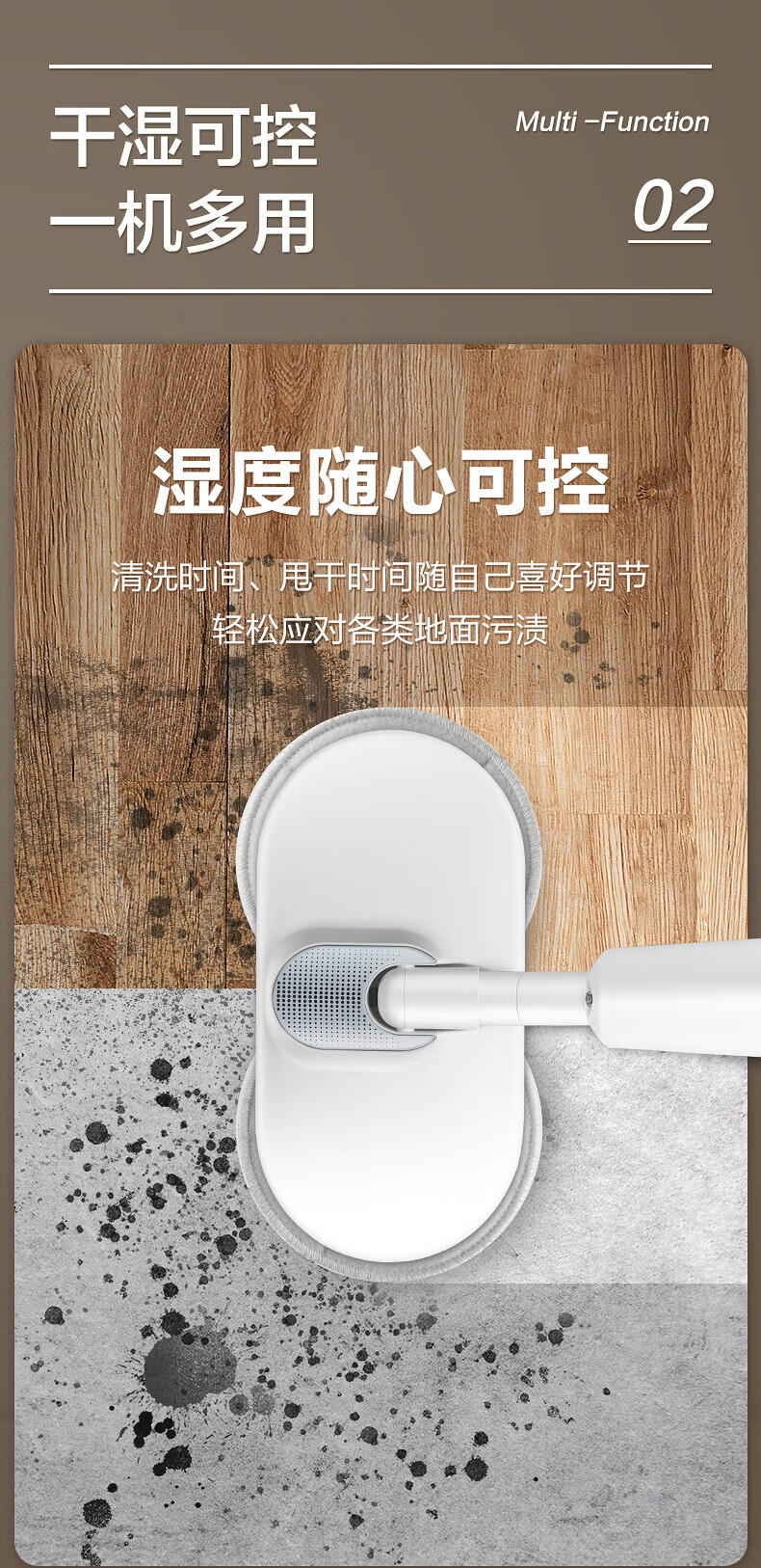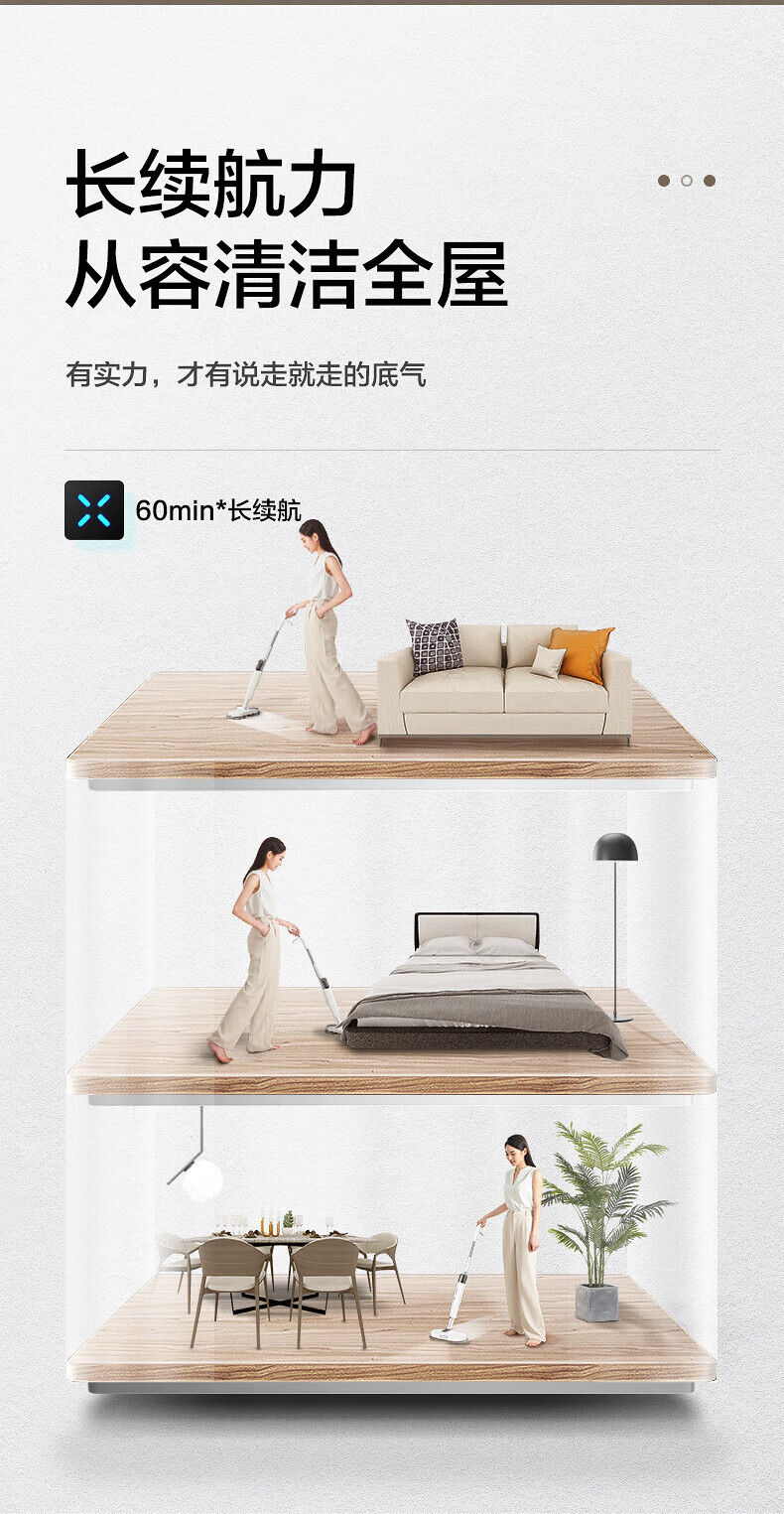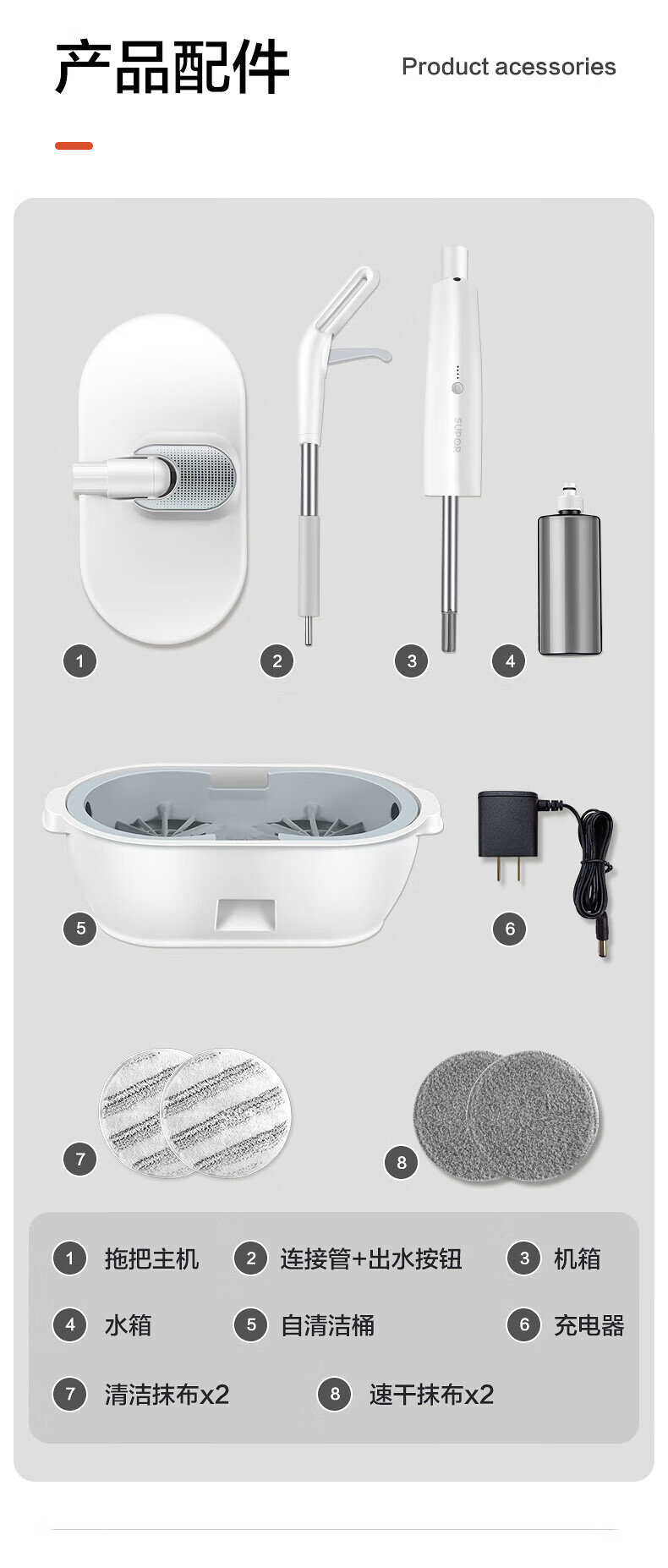 Supor Elektrischer Wischmopp, kabellos, freihändig, Trockenmopp, Nassmopp, Bassreinigung, Haushalt, Kehren und Wischen, All-in-One-Maschine, Weiß