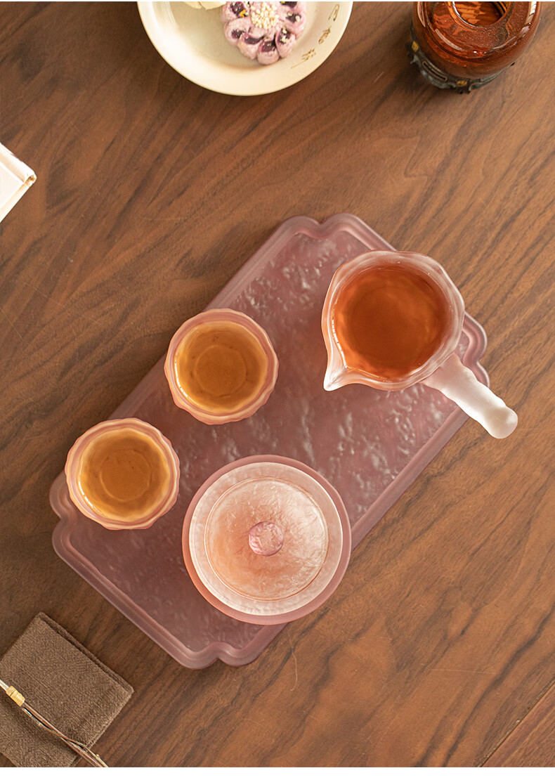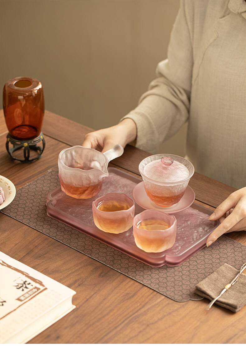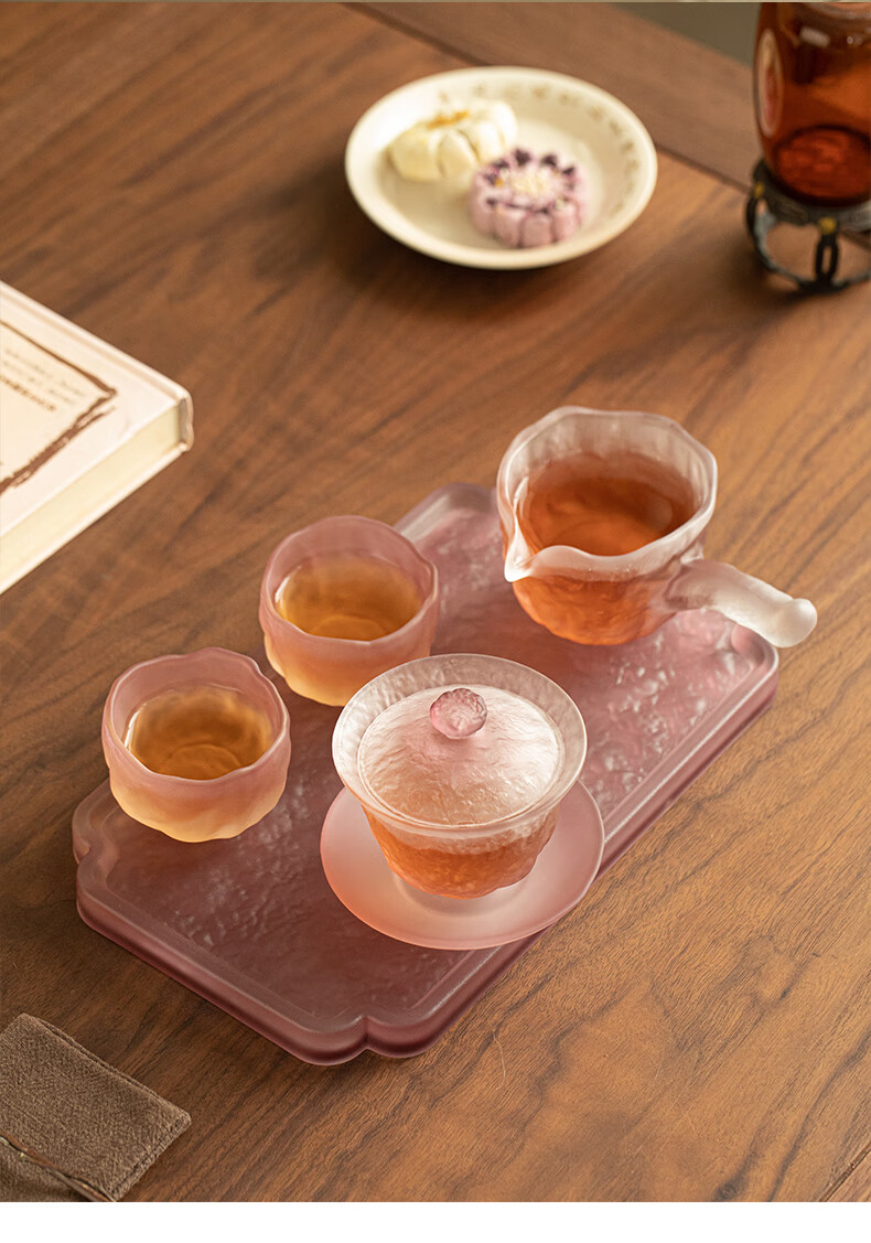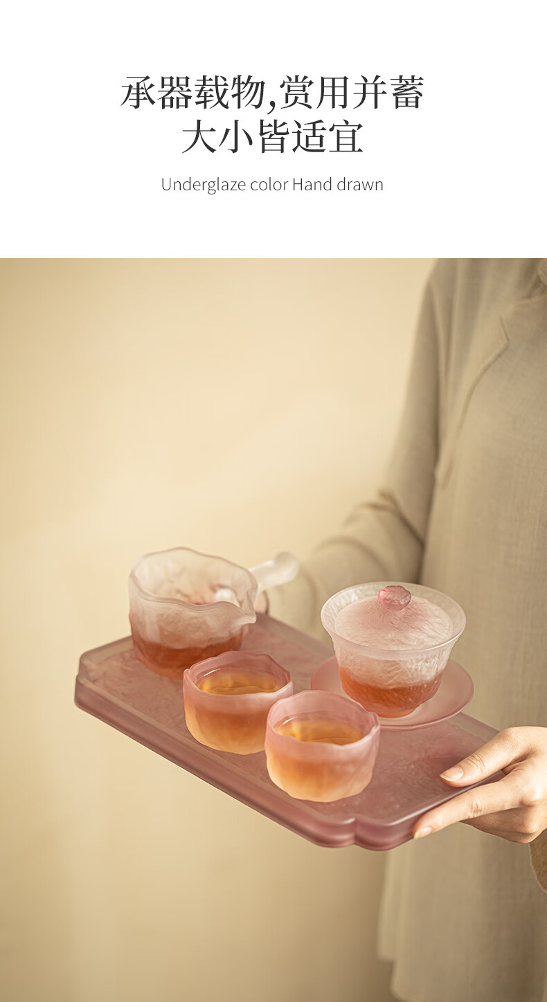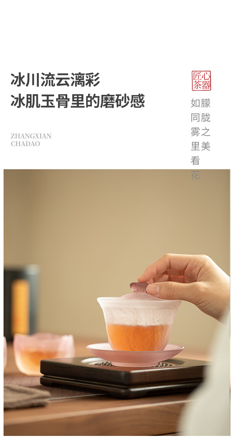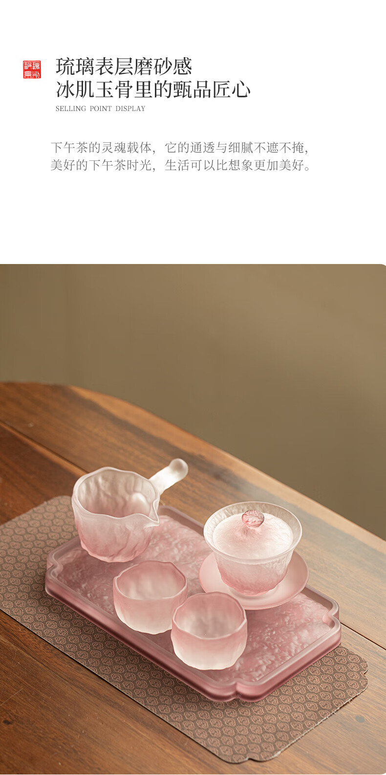Taoyu Glaze Yunyongshangshen Sancai Covered Bowl One Pot Two Cups Home Tea Bowl Teacup with Tea Tray Kung Fu Tea Set Yunyongshangshangshen Covered Bowl Small Set + Glass Plate