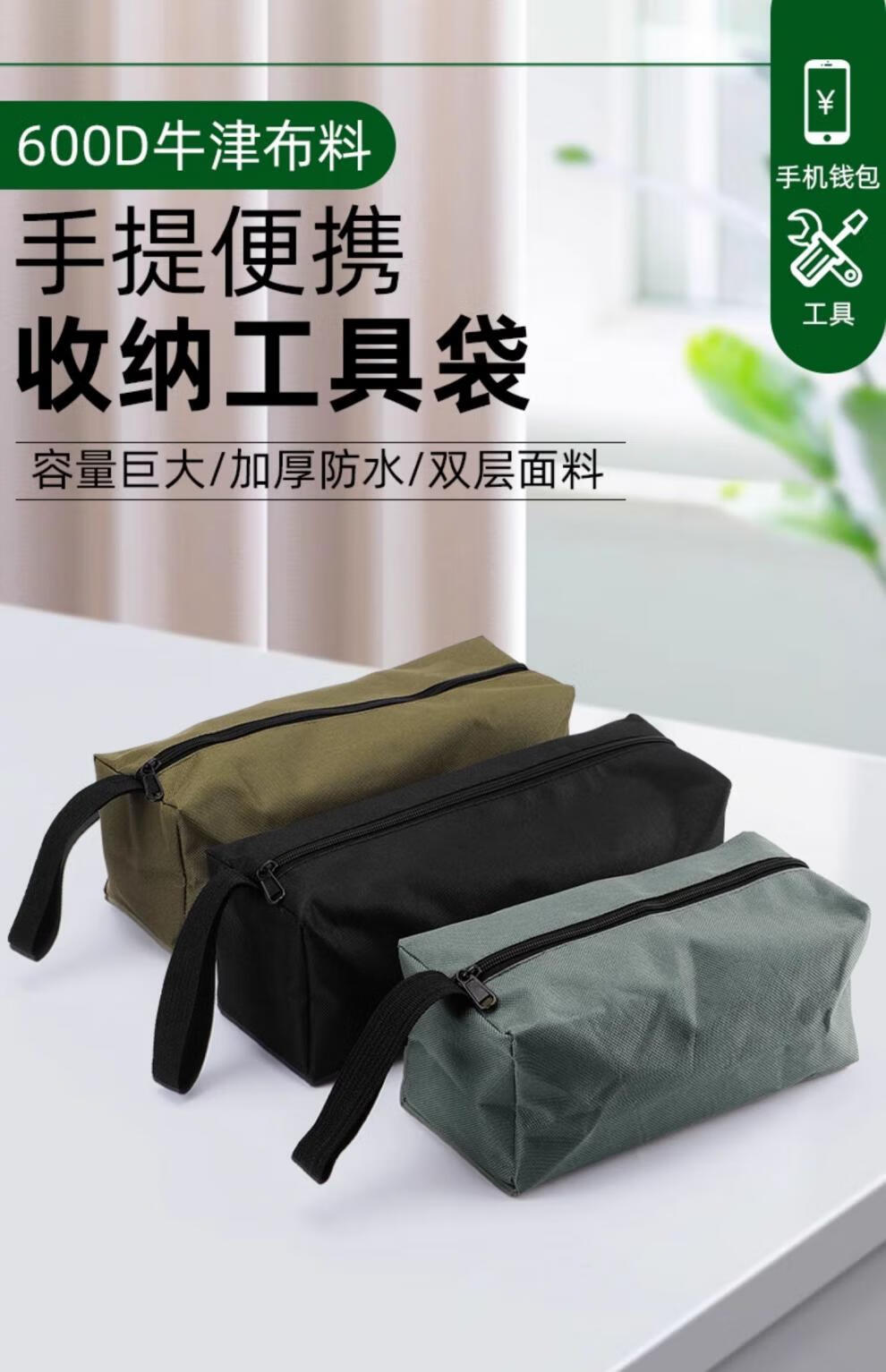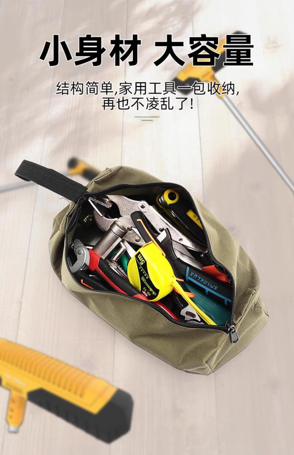 Vanai Tool Bag Strong and Durable Canvas Thickened Wear-Resistant Electrician Repair Multifunctional Handheld Storage Bag Small Portable Black Trumpet Thickened Oxford Cloth