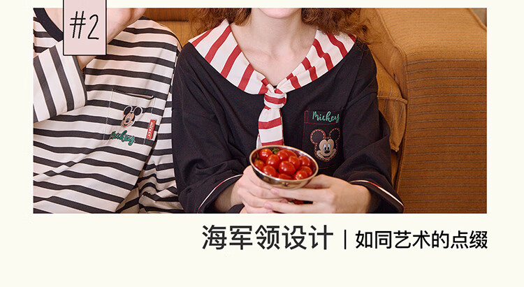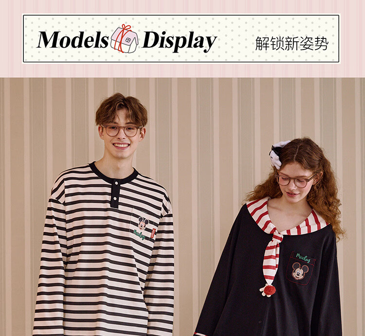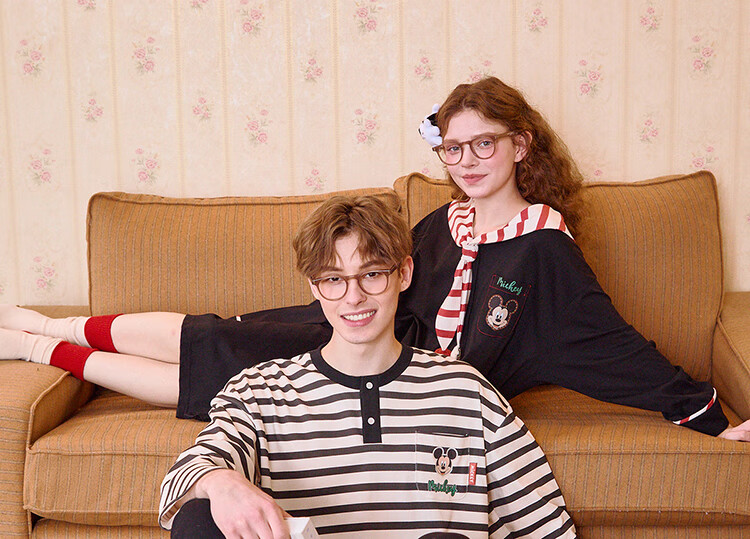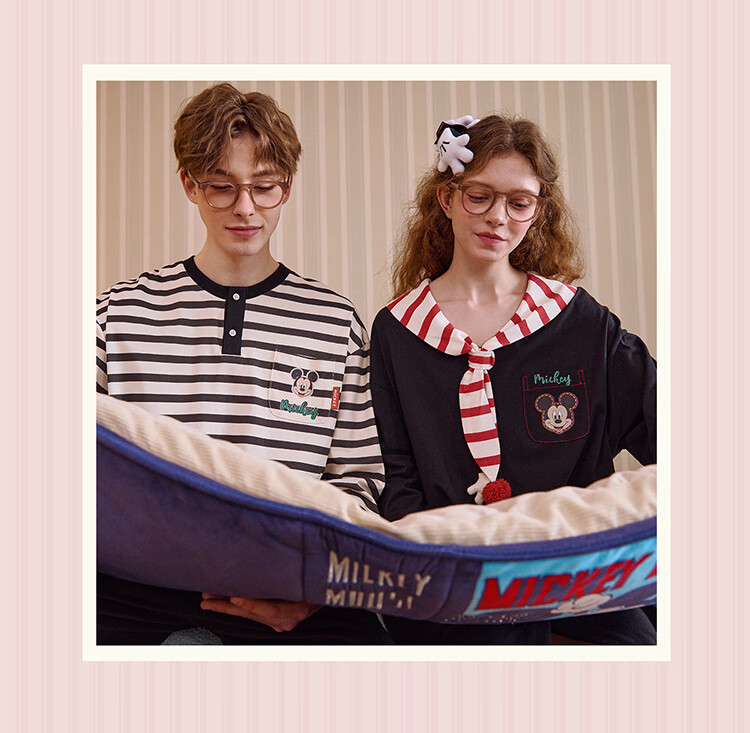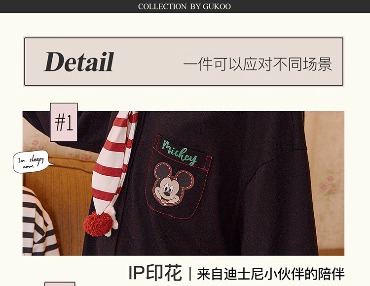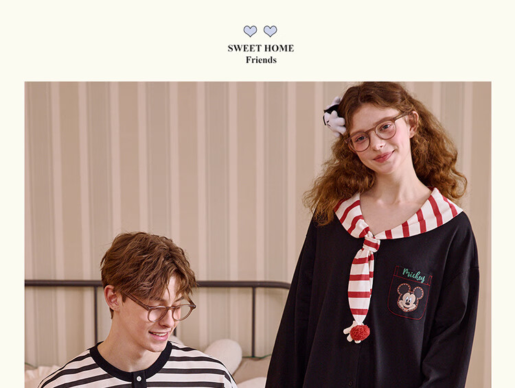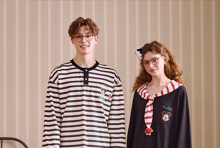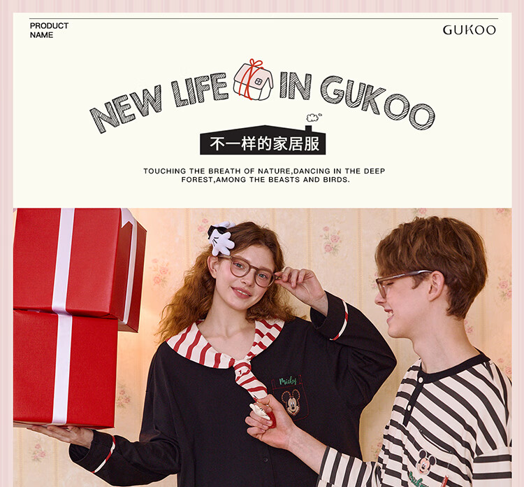 Gukoo Couple Pajamas Spring and Autumn Women's New Nightgown Disney Cotton Men's Home Clothes Set Can Be Weared Outside C Black Couple Home Clothes S Women