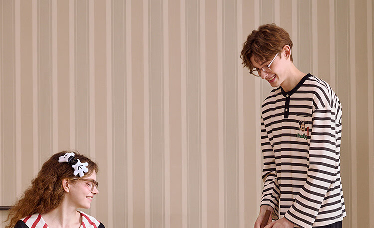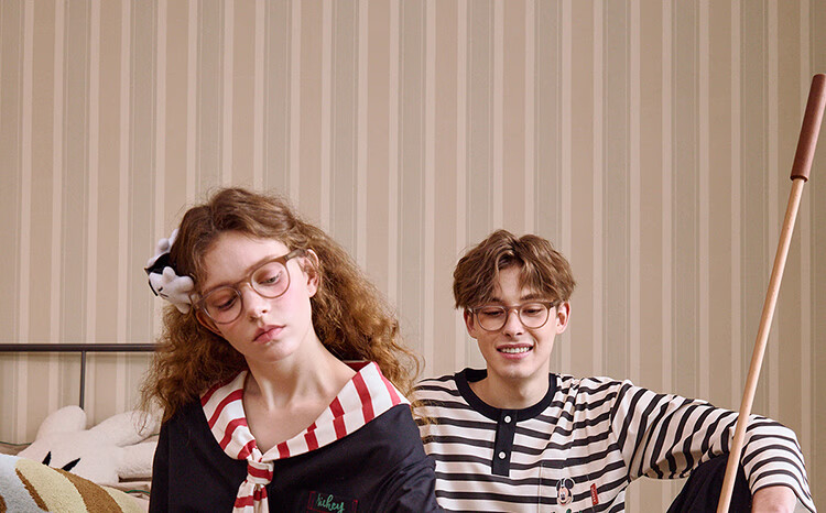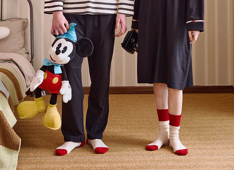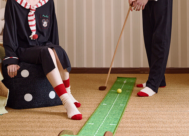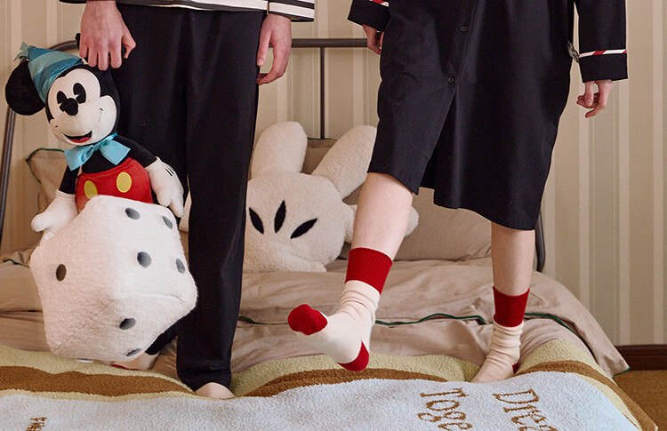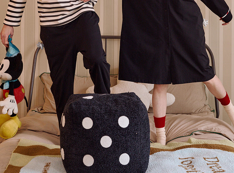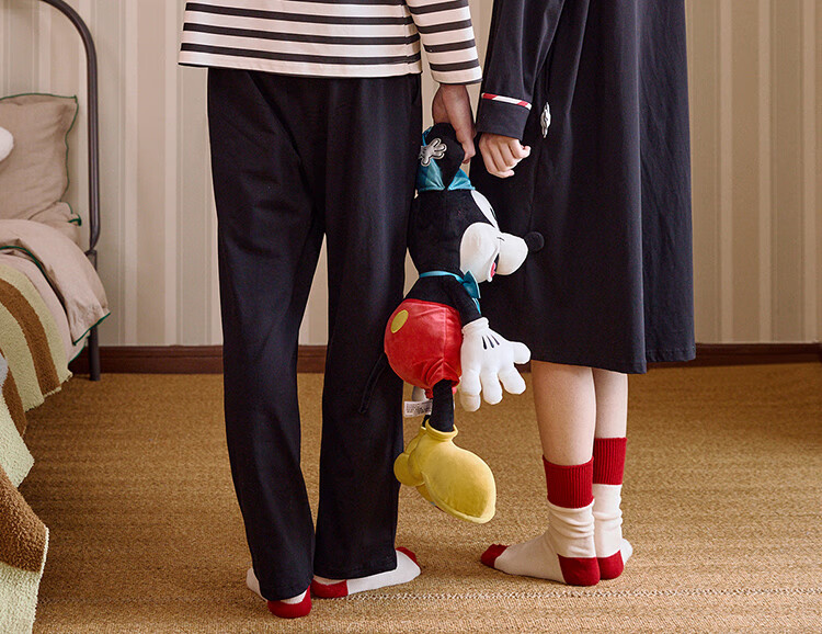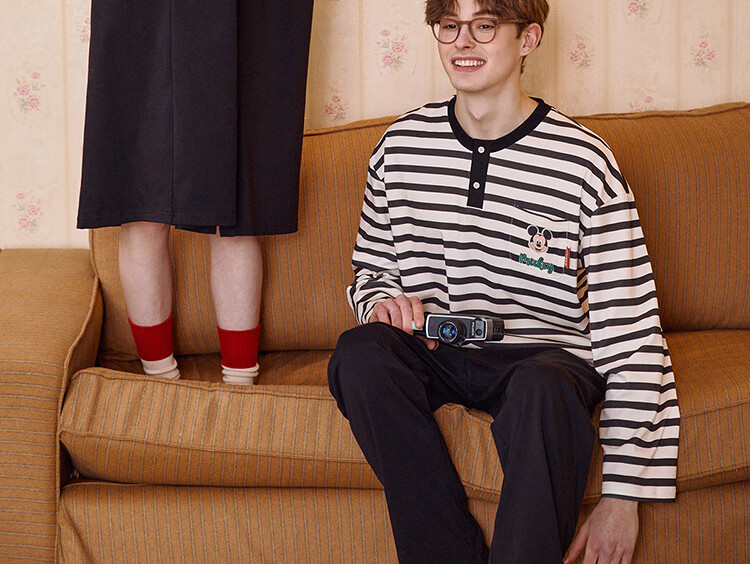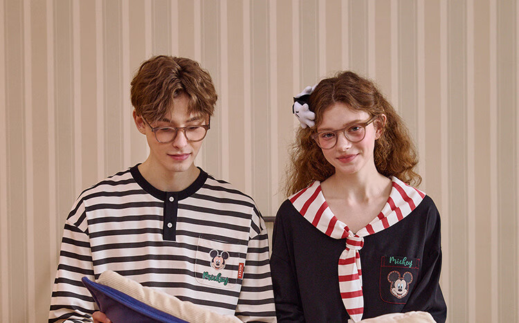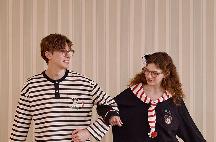 Gukoo Couple Pajamas Spring and Autumn Women's New Nightgown Disney Cotton Men's Home Clothes Set Can Be Weared Outside C Black Couple Home Clothes S Women