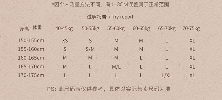 China (cm) 160-165/84-86 165-170 / 88-90 167-172 / 92-96 168-173 / 98-102 170-176 / 106-110