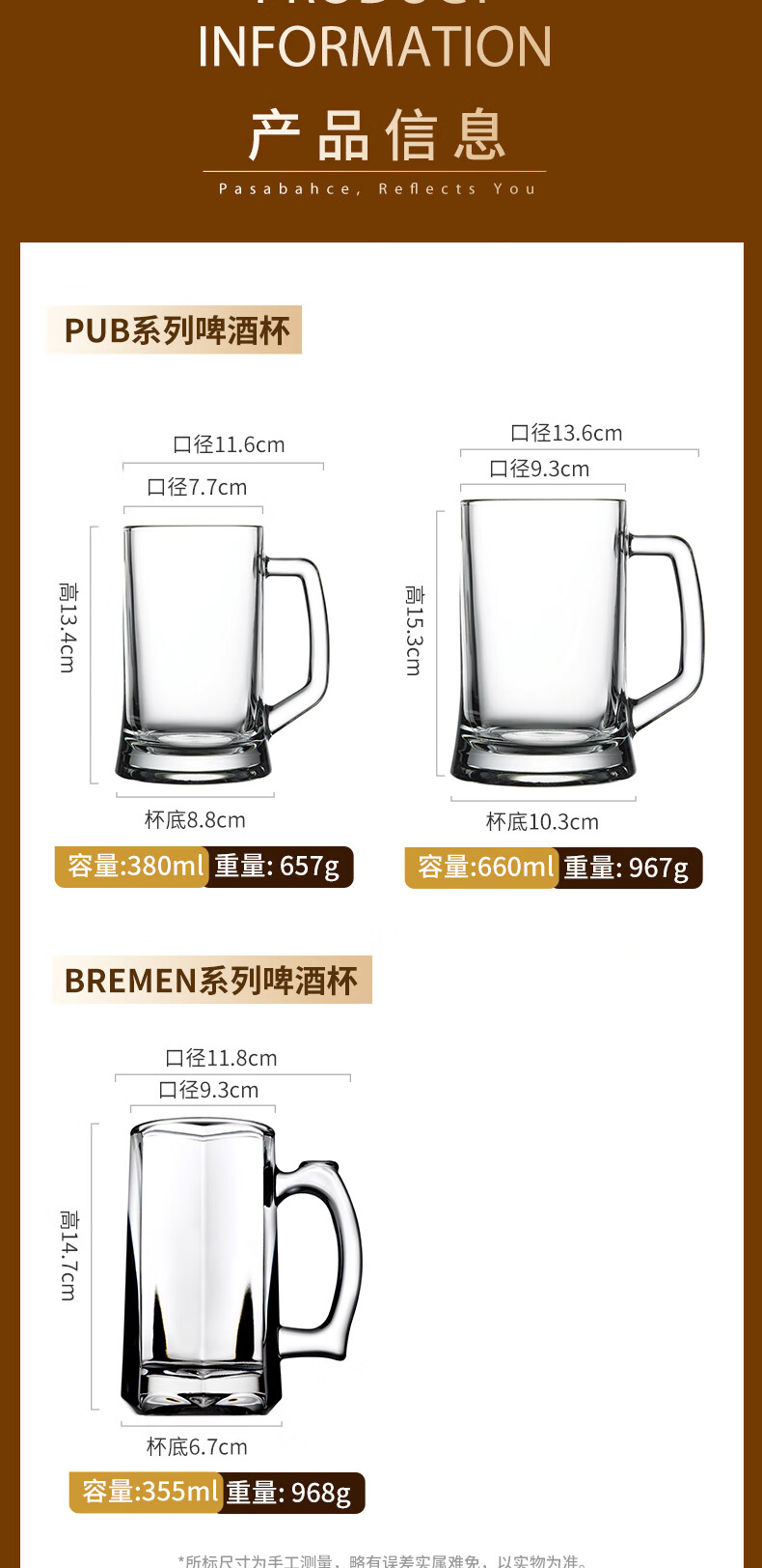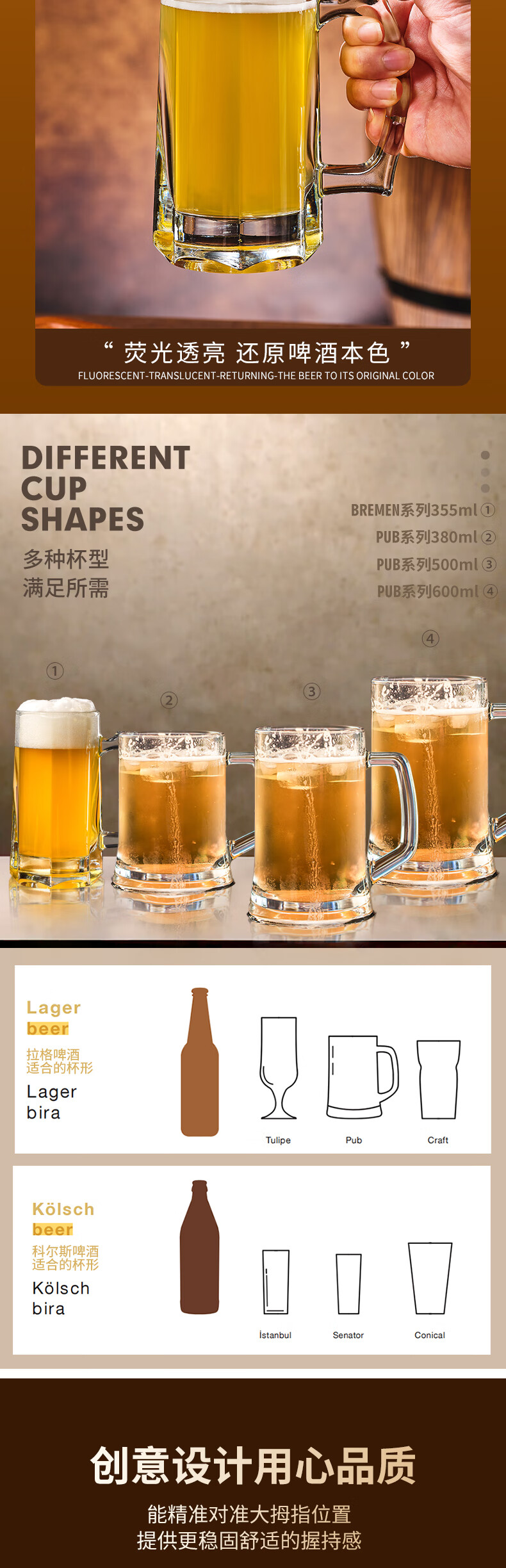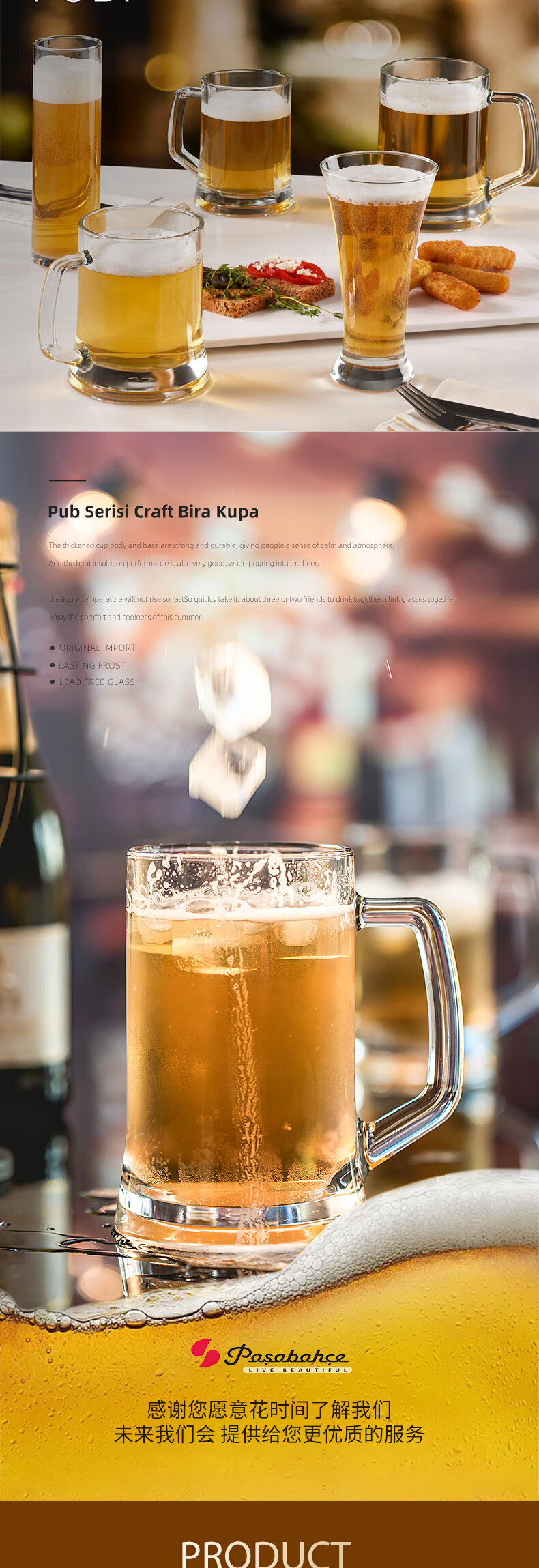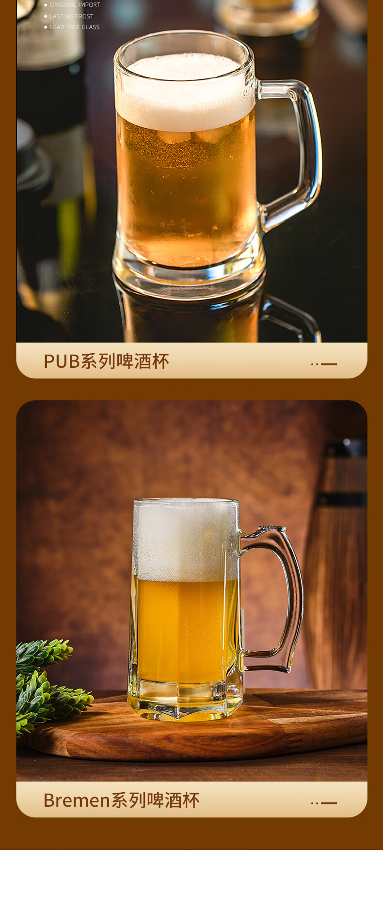 Pasha Paqi imported beer cup with handle glass household water cup draft beer cup mug bar large capacity juice cup BREMEN-bar series 355ml 1 piece