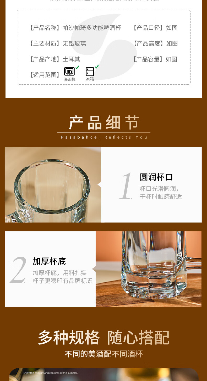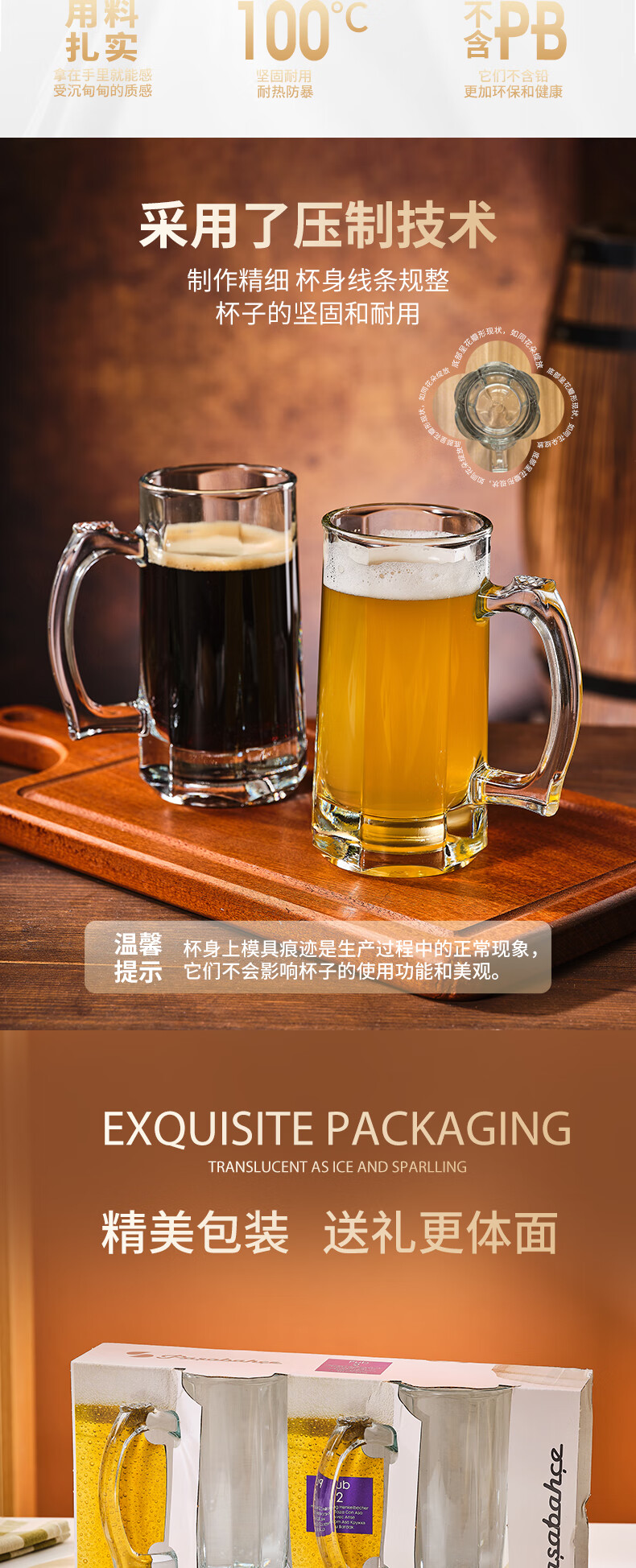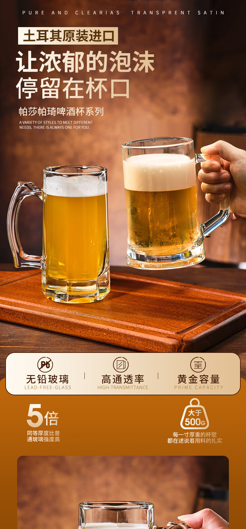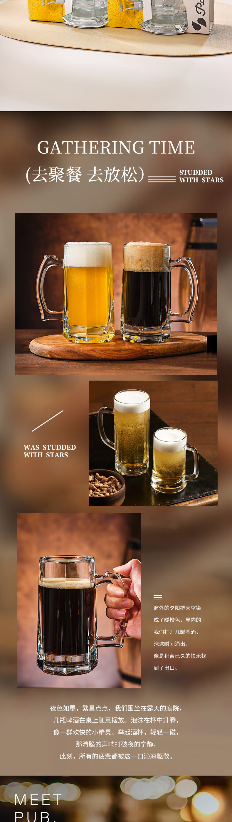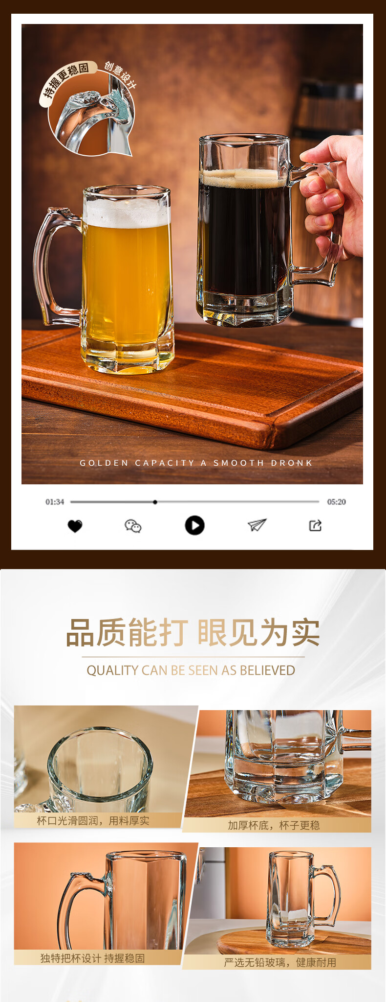 Pasha Paqi imported beer cup with handle glass household water cup draft beer cup mug bar large capacity juice cup BREMEN-bar series 355ml 1 piece