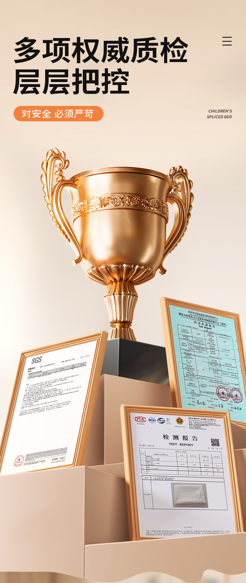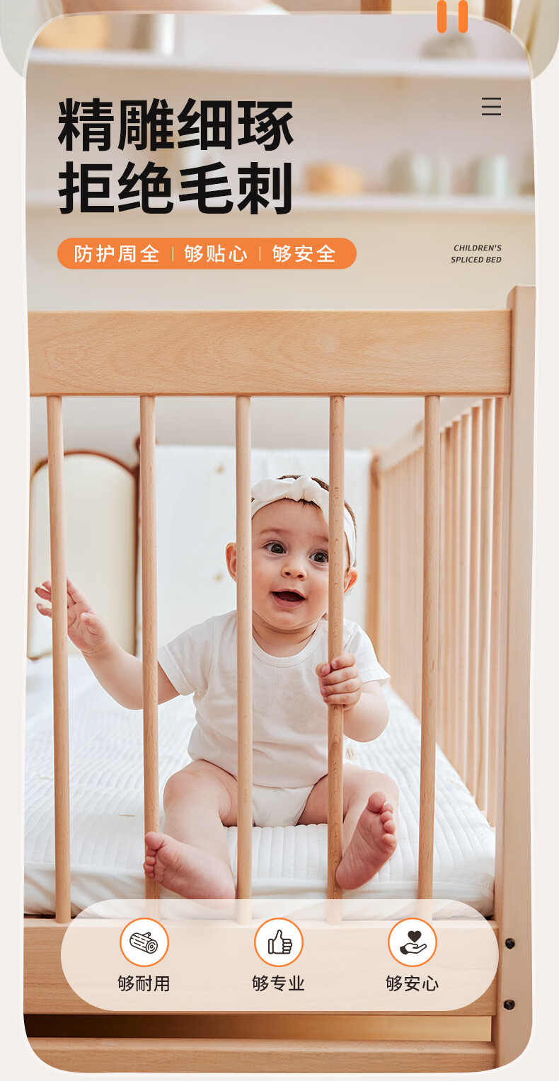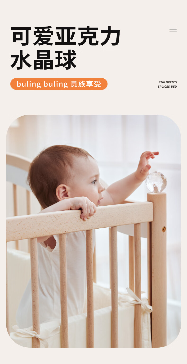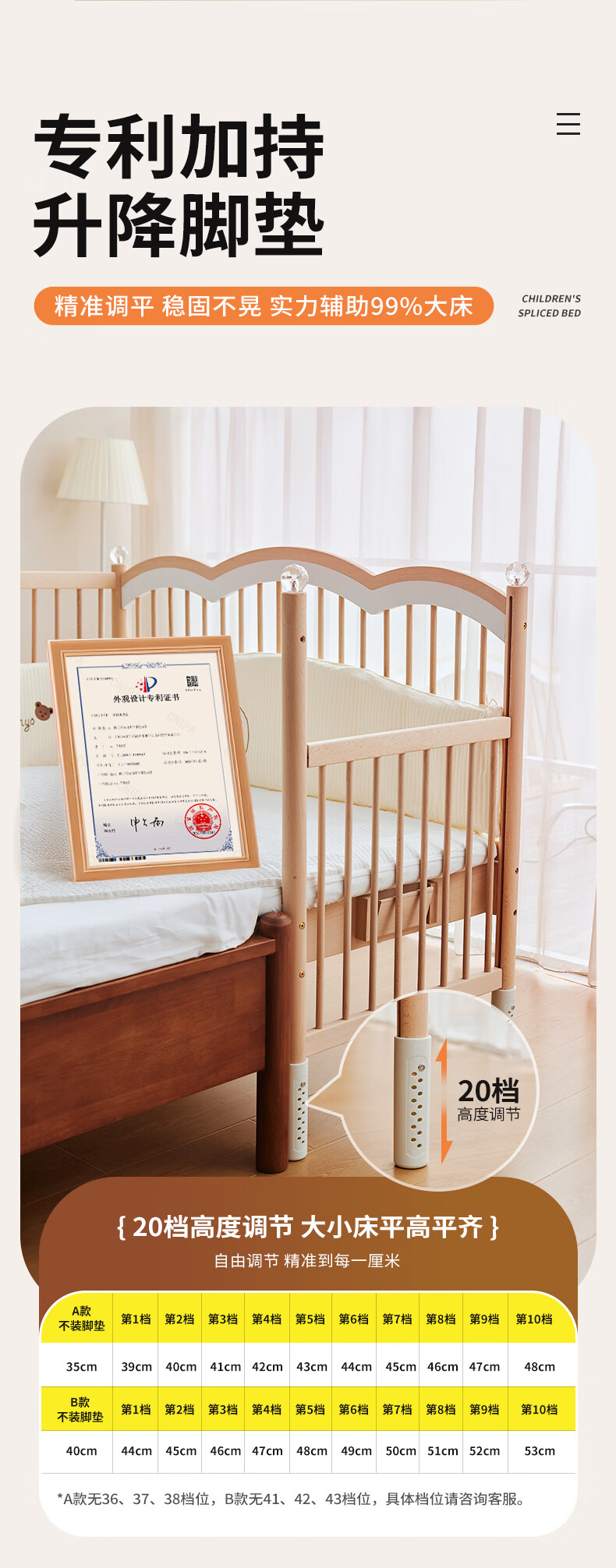 Hammyo spliced bed baby solid wood widened bedside children's bed beech crib baby guardrail lift bed end lift + 6 cm air fiber + antibacterial bedside 200x60cm