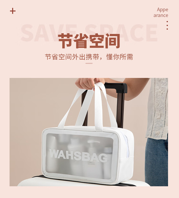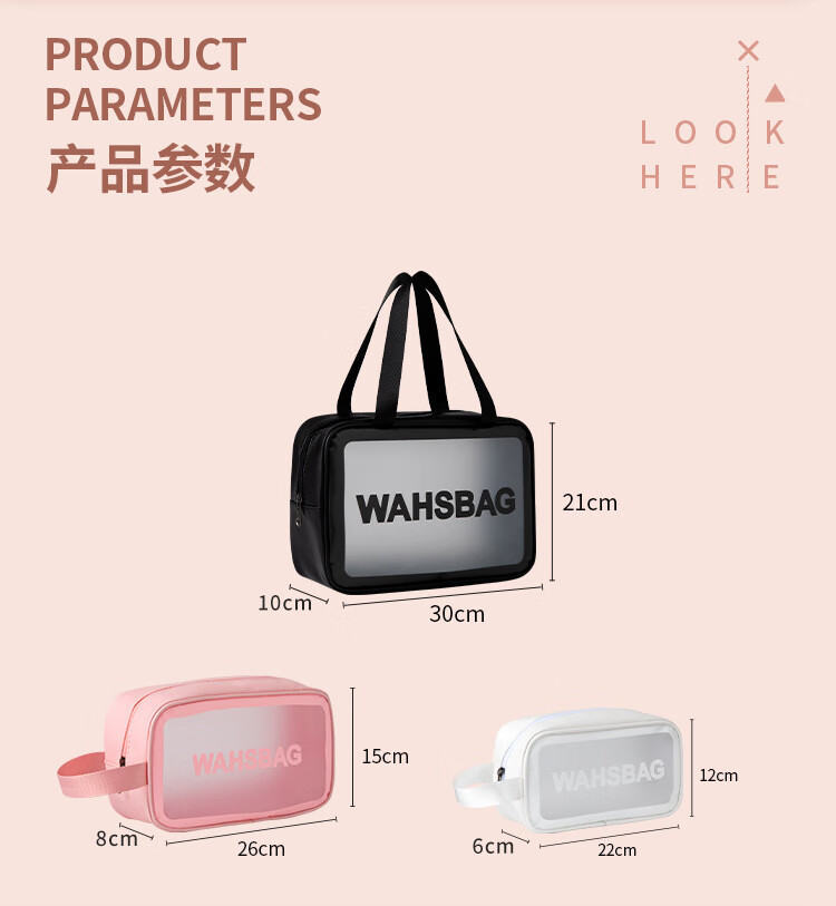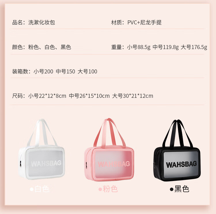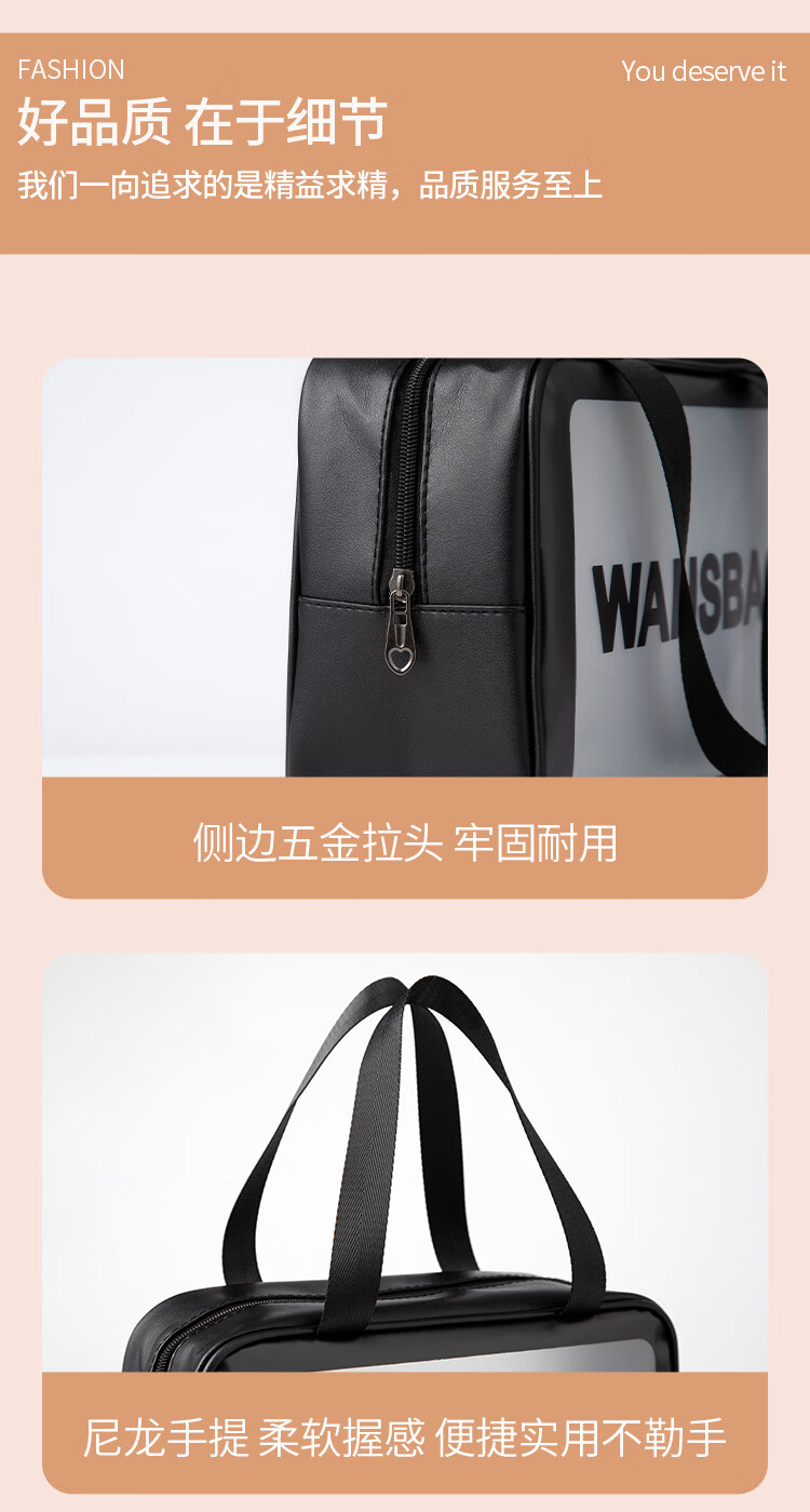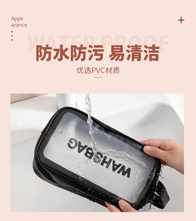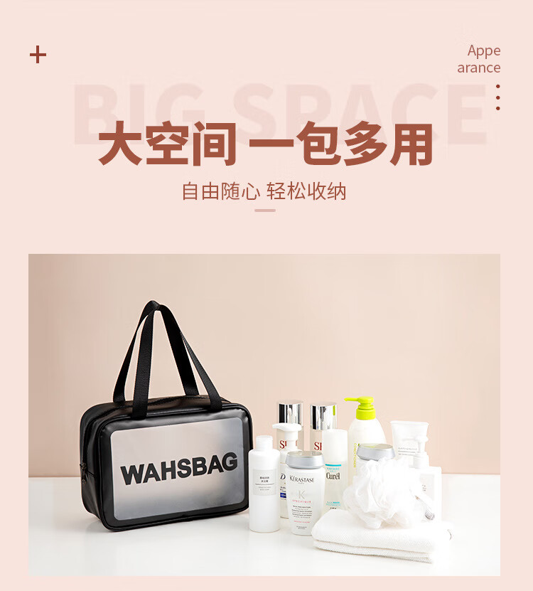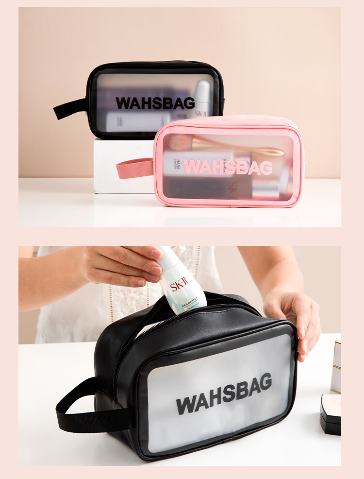 JD Logistics ins transparent waterproof toiletry bag dry and wet separation portable large capacity travel cosmetic bag large pink medium toiletry bag