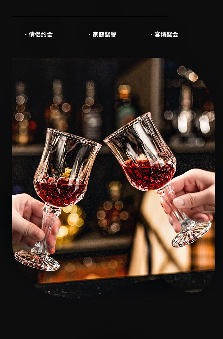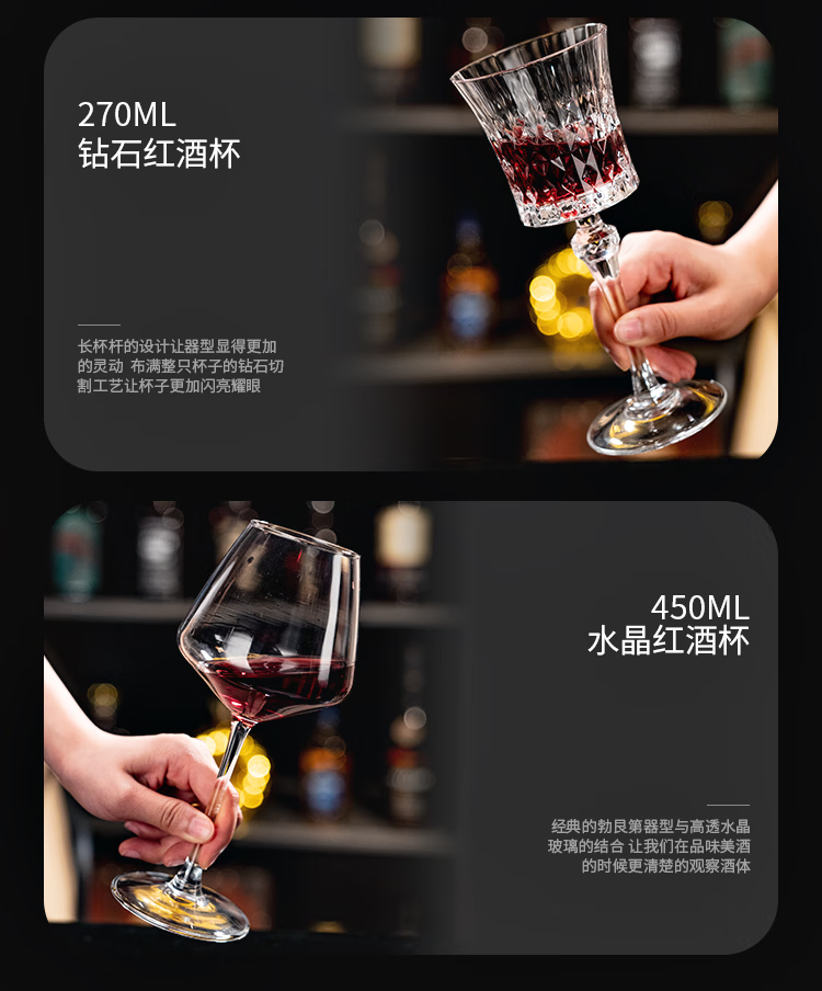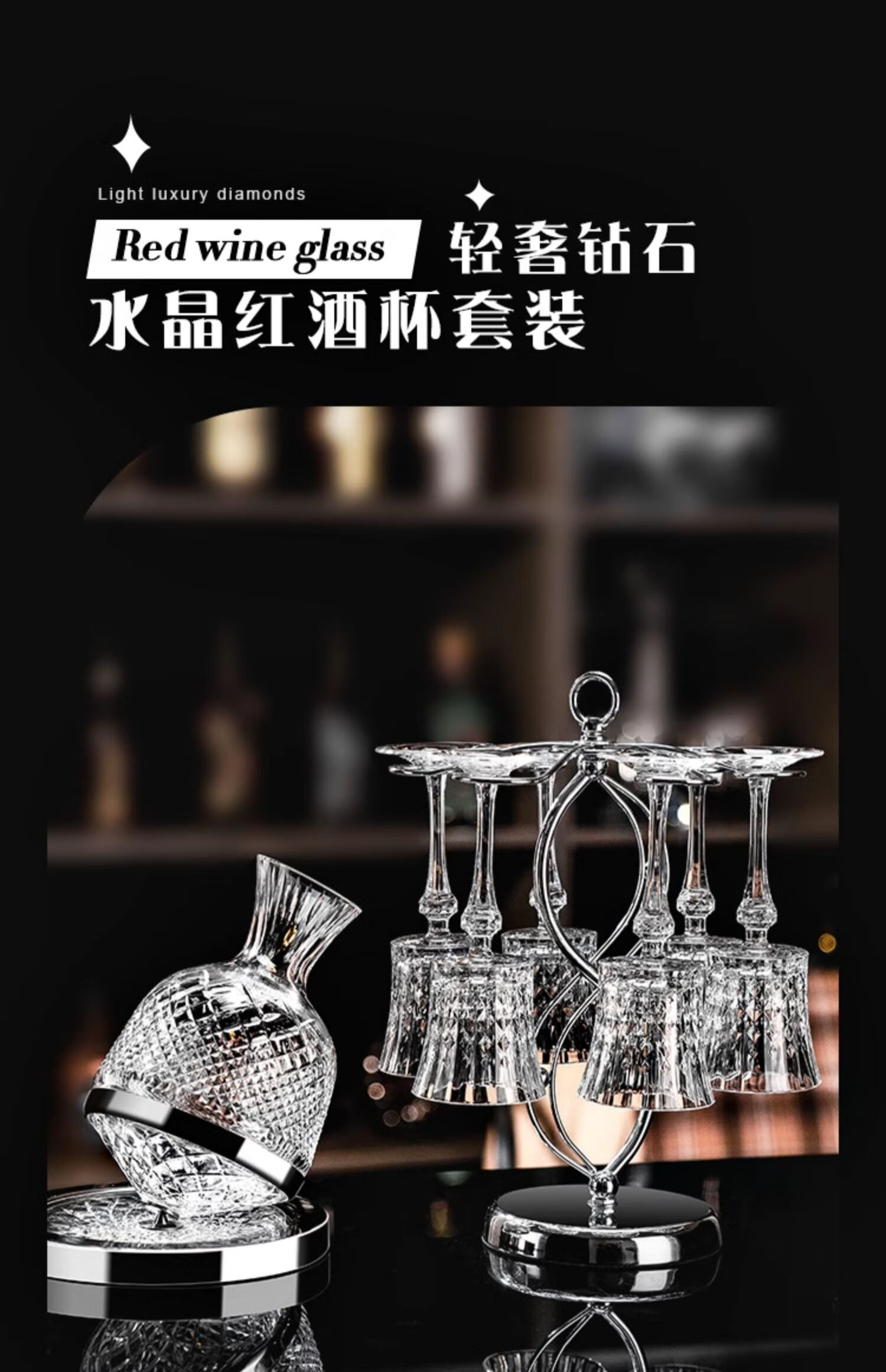 De Faraday red wine glass set for home use diamond crystal high-end wine glass decanter light luxury high-value wine set 6 450ml red wine glasses + silver top + 8-shaped cup holder