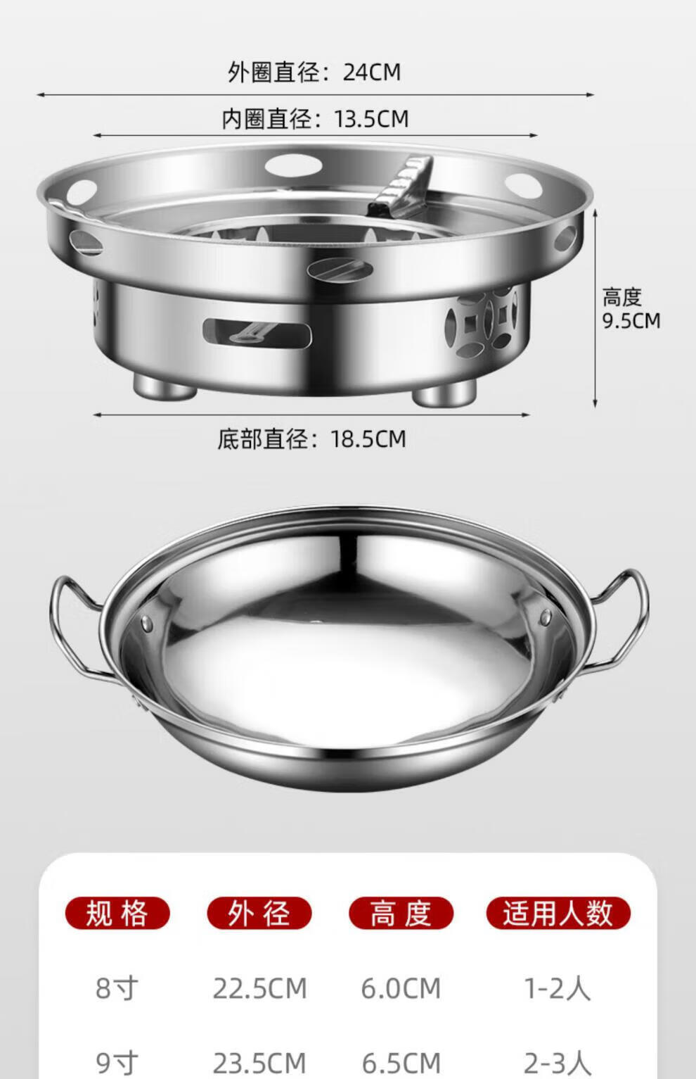 Baichunbao dry pot pot alcohol stove household small hot pot special stove stove new commercial stainless steel pot base windproof alcohol stove windproof energy gathering 24cm