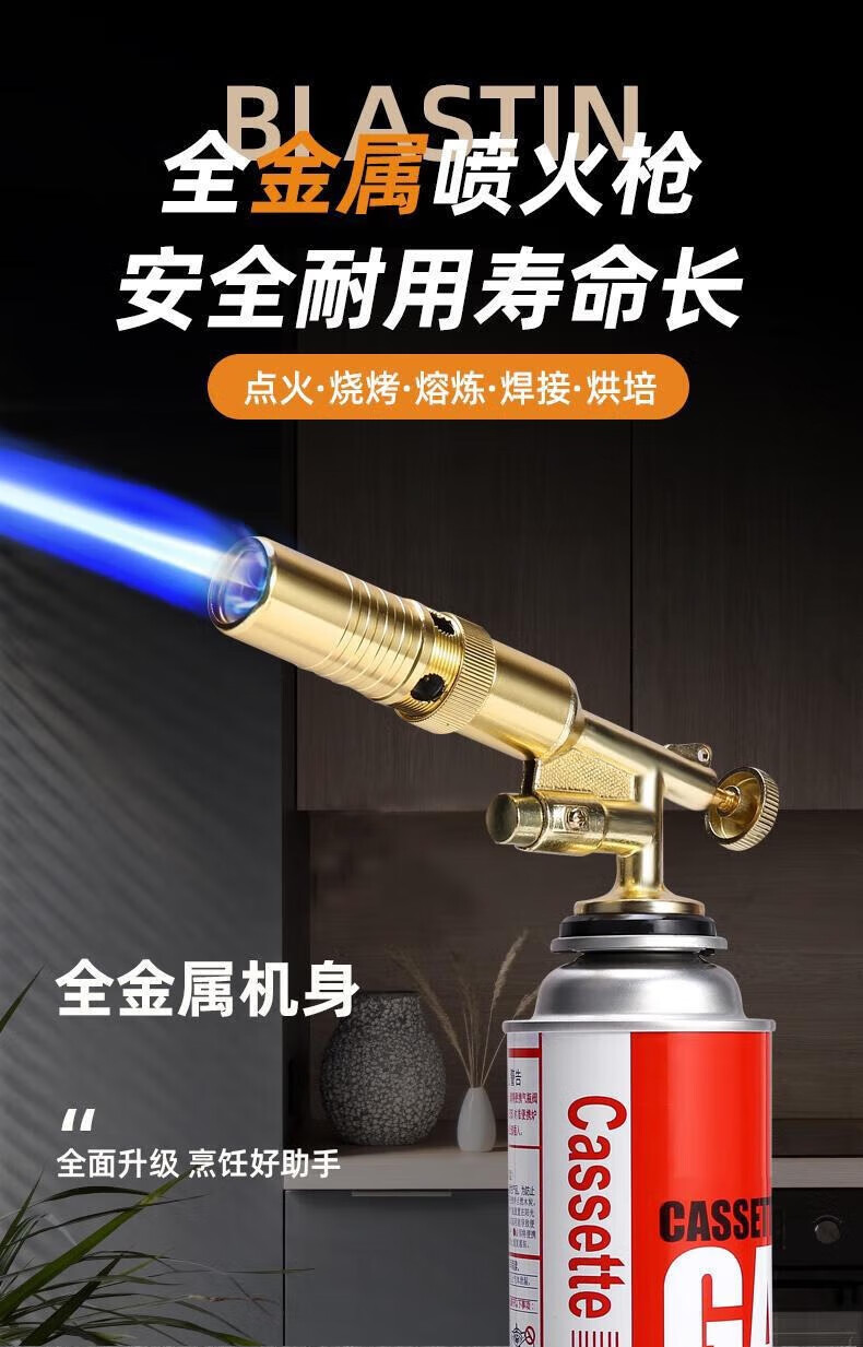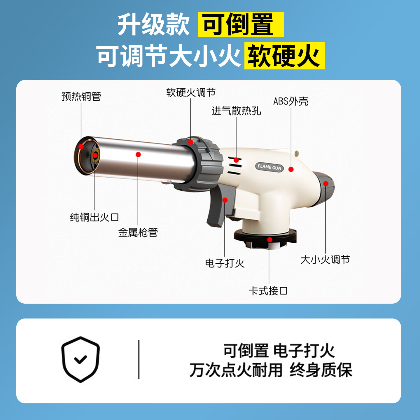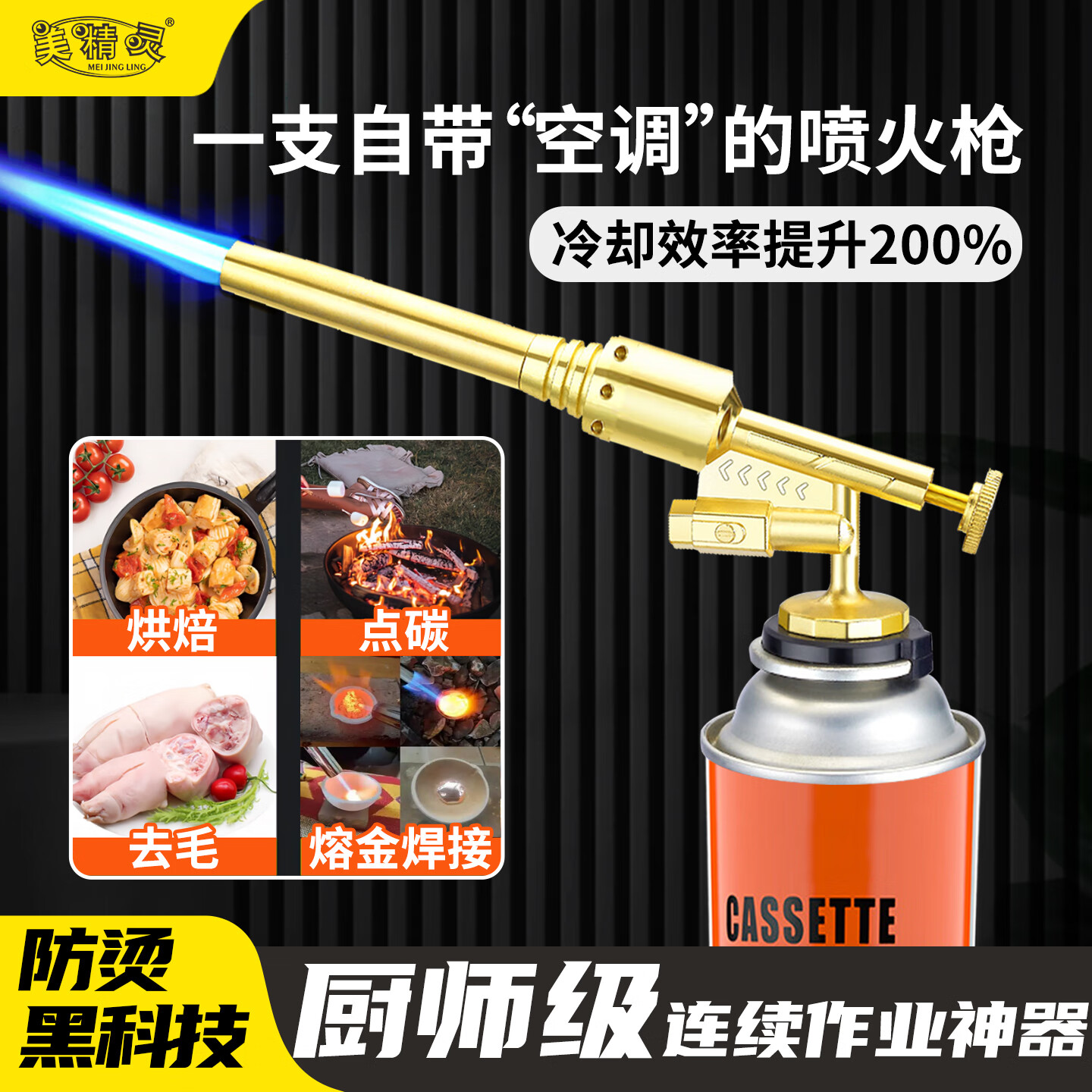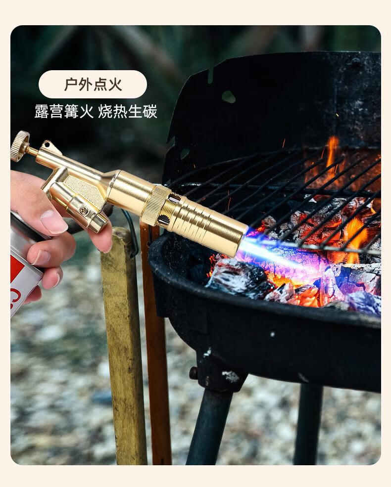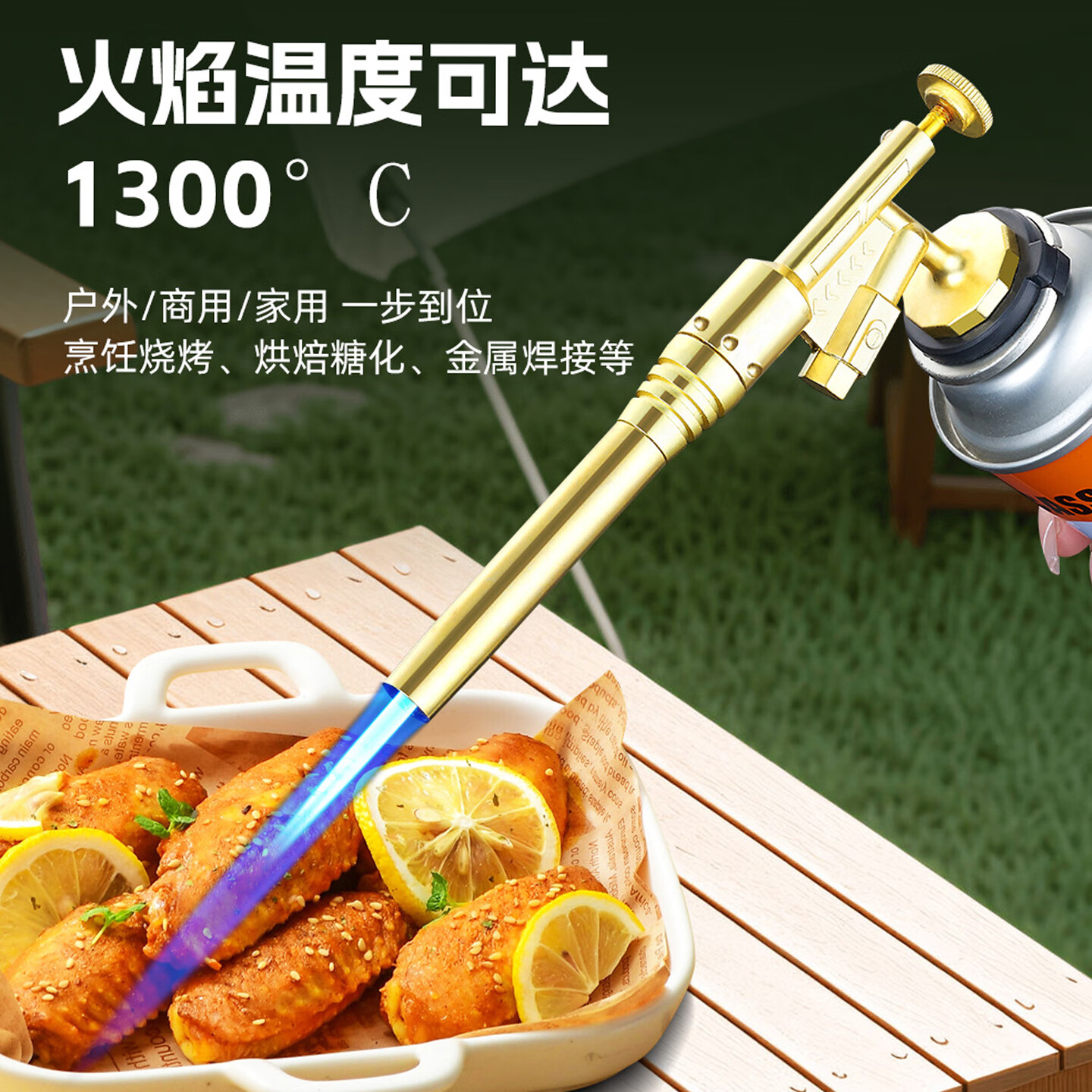 Beauty Elf Cassette Flamethrower Spray Gun Head Fierce Gas Tank Bottle Pure Copper Fire Gun Burning Pig Hair Portable Charcoal Fire Gun New Structure Pure Copper Head Can be Inverted + Soft and Hard Fire + 4 Gases