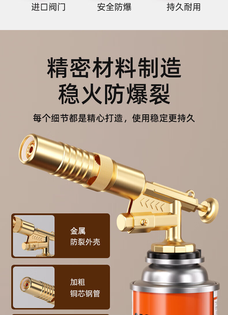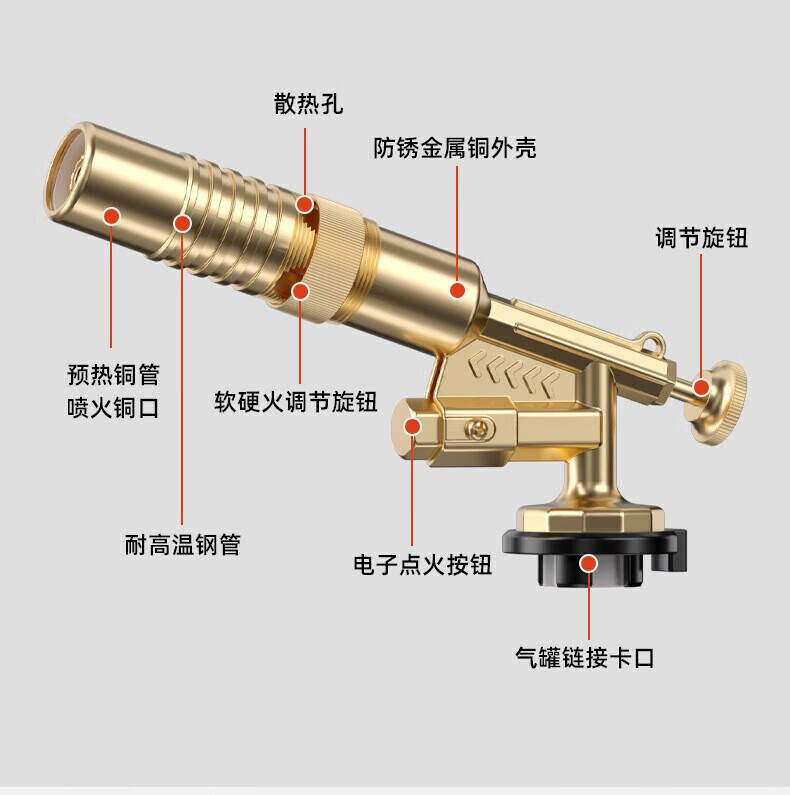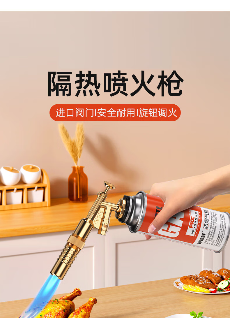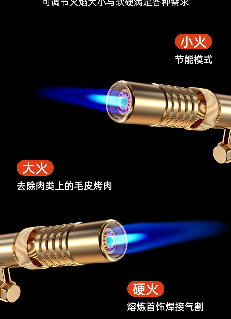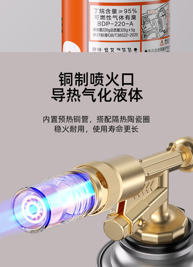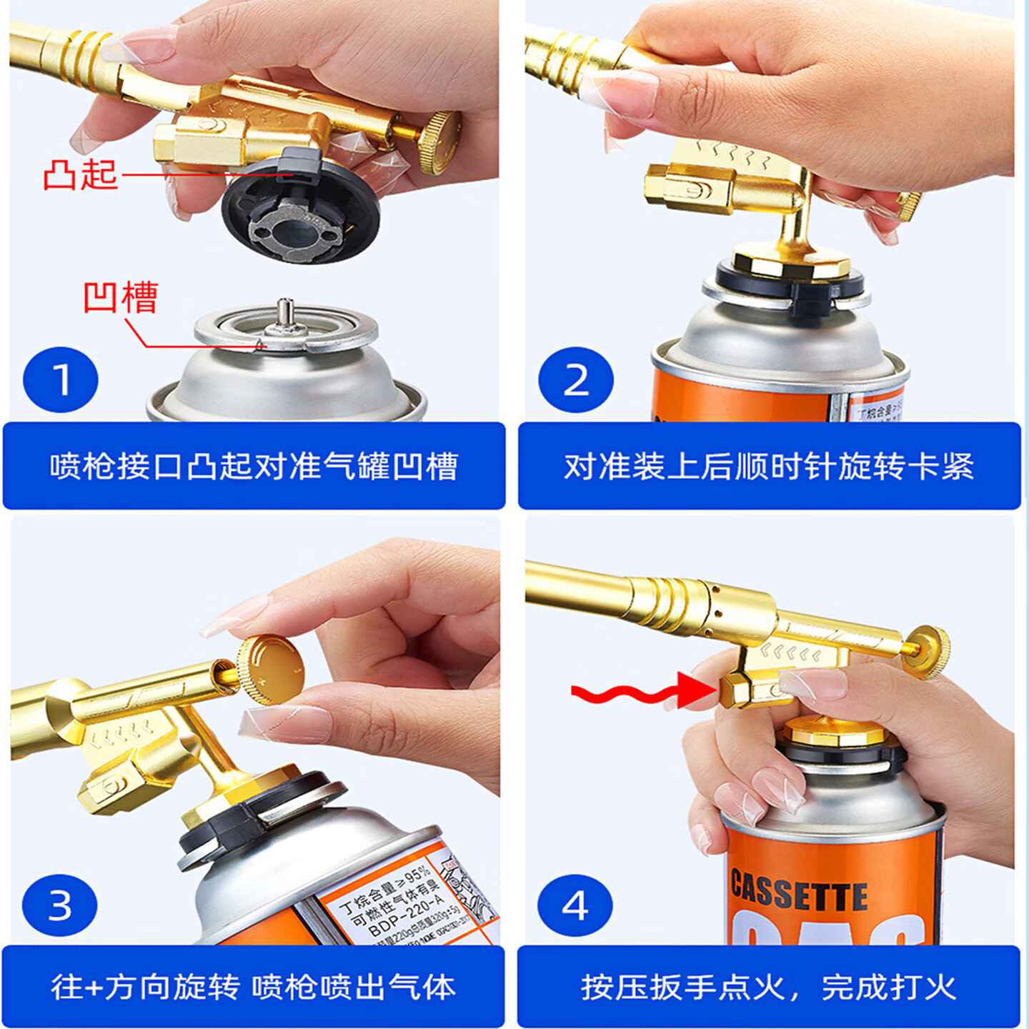 Beauty Elf Cassette Flamethrower Spray Gun Head Fierce Gas Tank Bottle Pure Copper Fire Gun Burning Pig Hair Portable Charcoal Fire Gun New Structure Pure Copper Head Can be Inverted + Soft and Hard Fire + 4 Gases