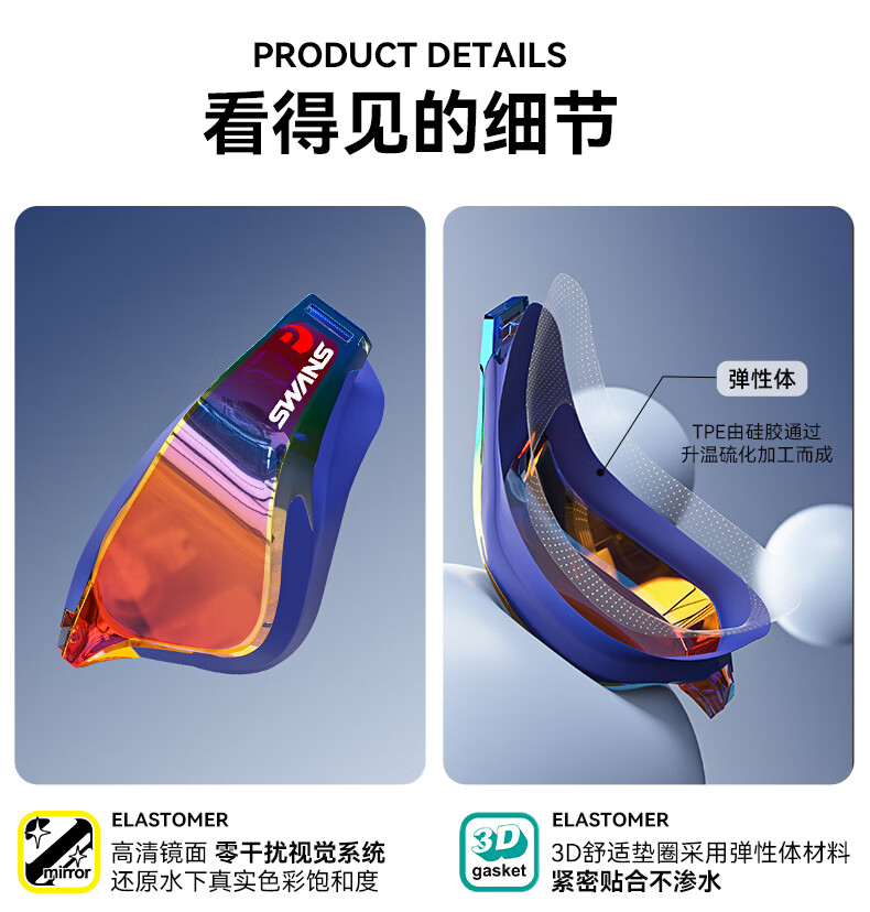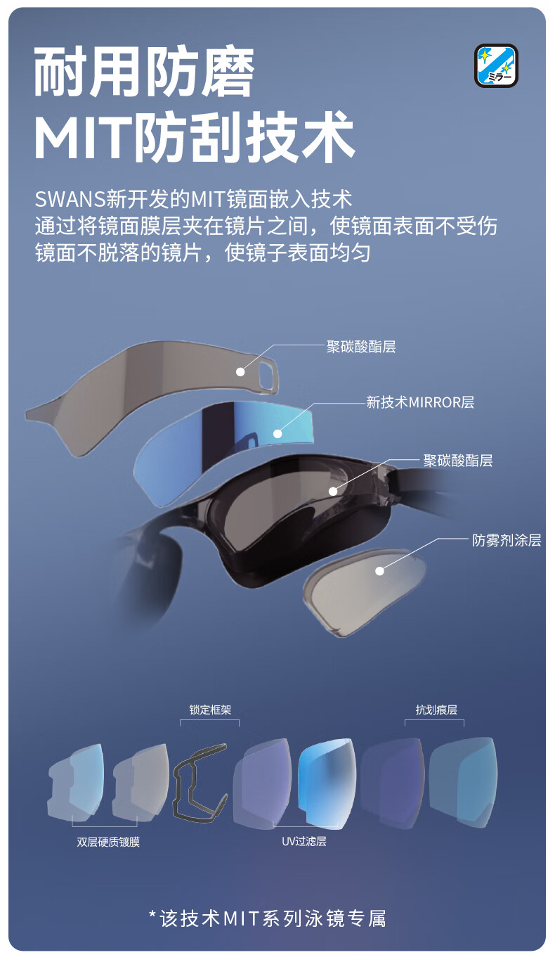 SWANS swimming goggles racing high-definition waterproof and anti-fog swimming goggles for men and women competition training Valkyrie MIT series_black flat light