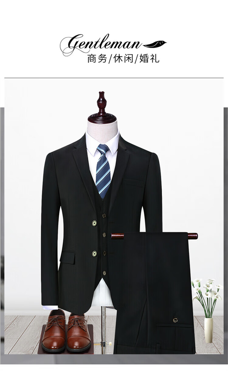 Luo Meng suit men's Korean style slim coat groom wedding dress business professional formal small suit men black single suit XL
