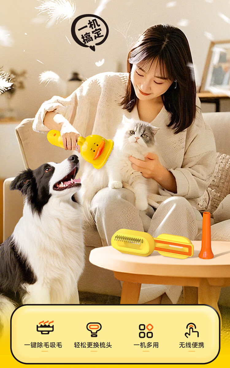 L&W BROS. Pet electric hair suction machine, wireless hair trimmer, cat hair cleaner, hair removal artifact, dog comb, suction comb to remove floating hair, 4-in-1 multi-function wireless hair suction and grooming machine