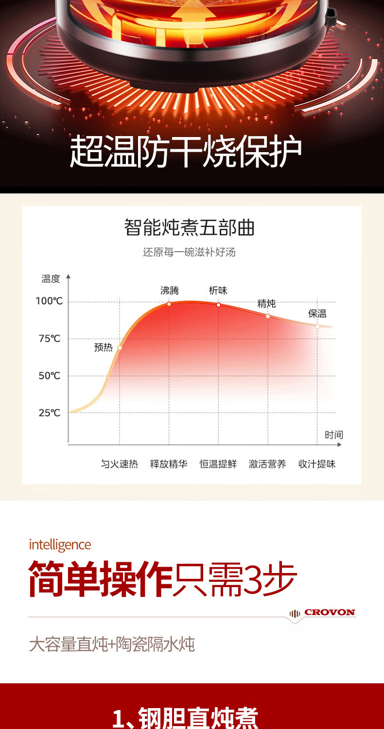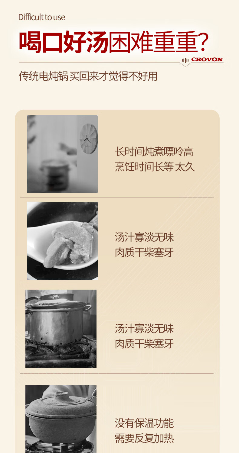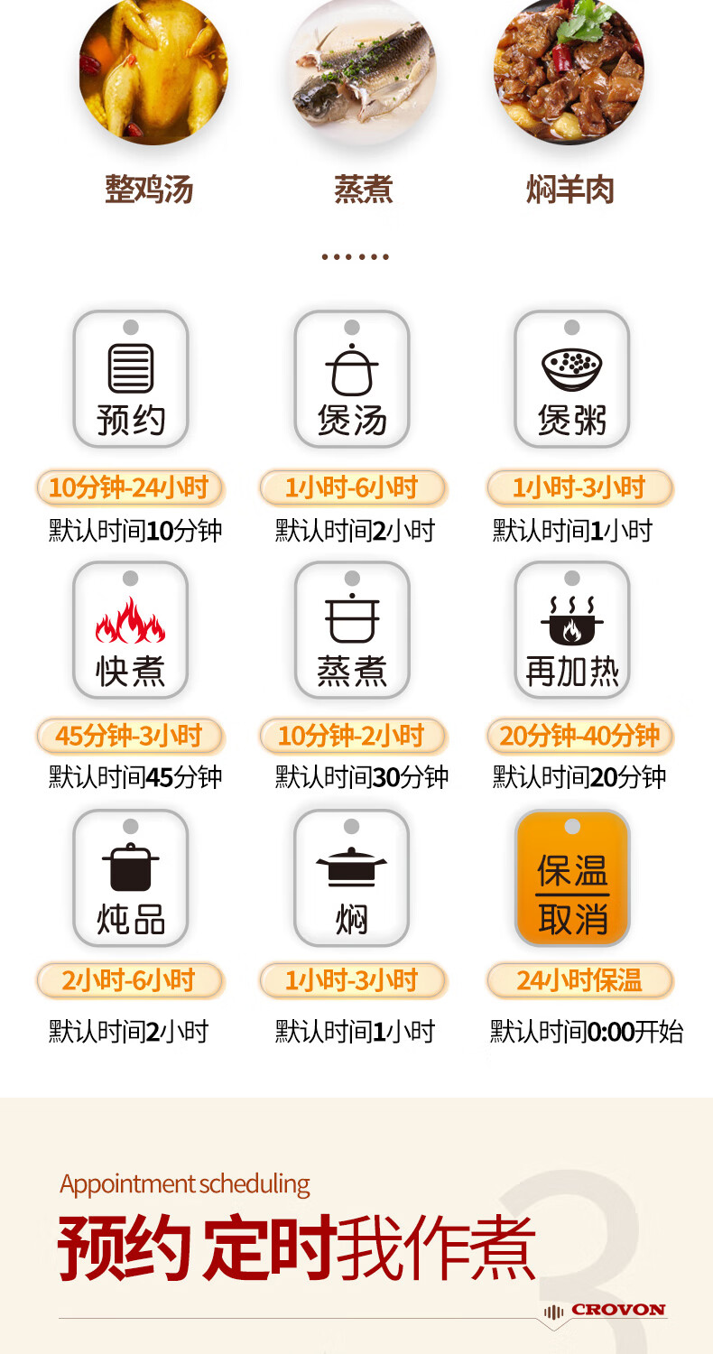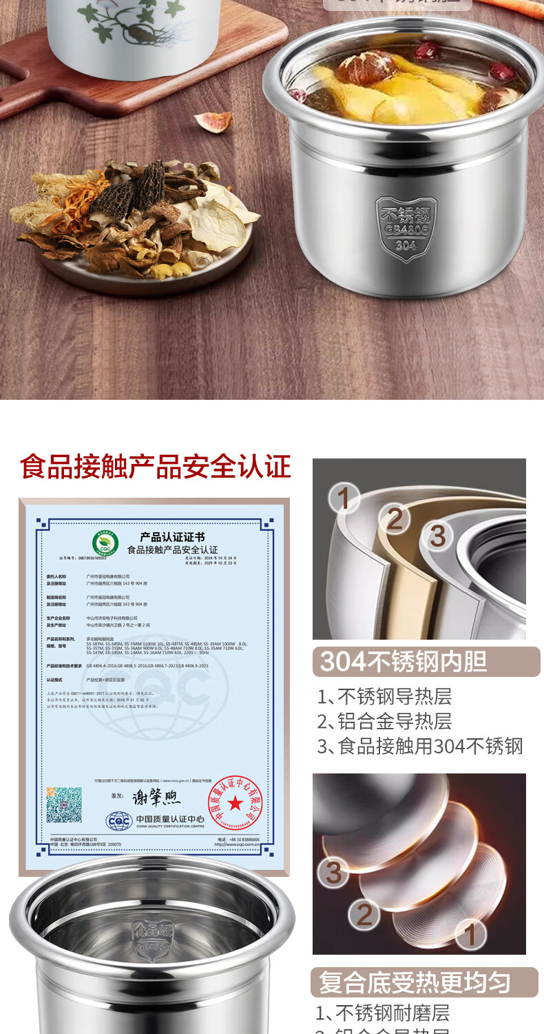 CROVON multifunctional electric stew pot, food grade crown stainless steel electric soup pot, ceramic water-proof electric stew pot, soup, porridge, rice, steaming, household commercial stew, dessert, fully automatic intelligent crown quick cooking model (6 liter steel bladder + 2.5 liter stew pot) 6L