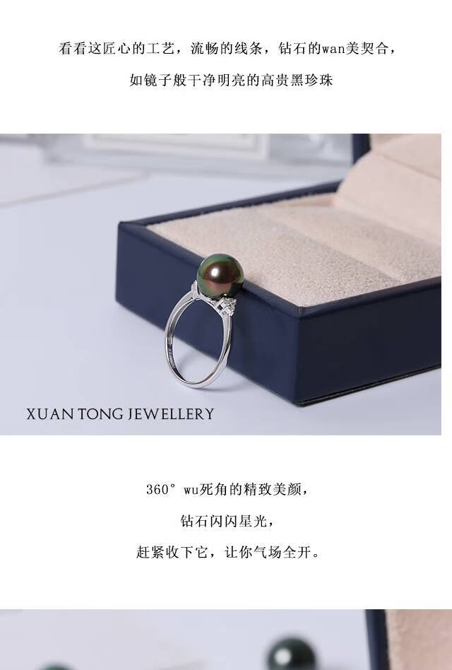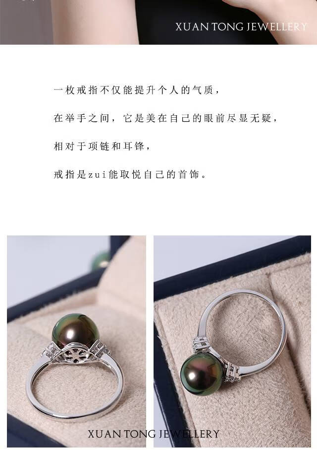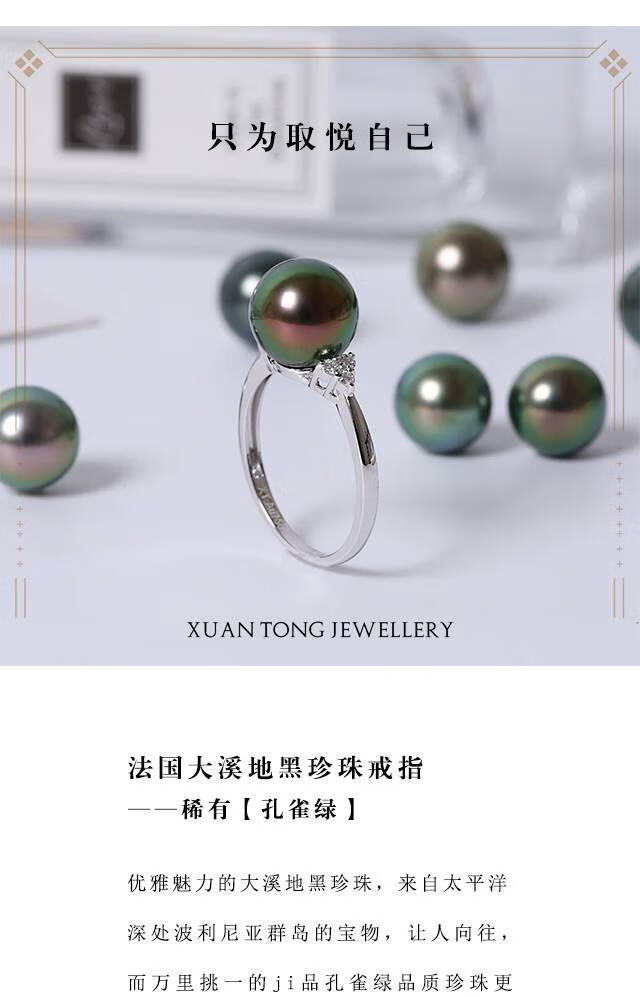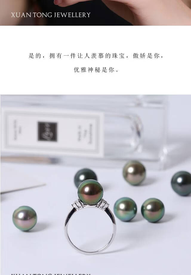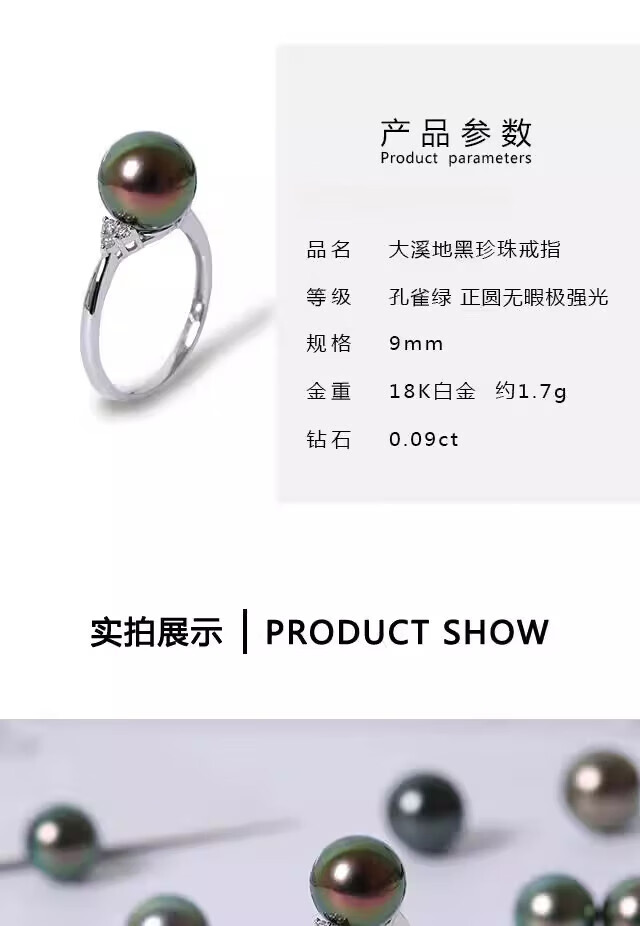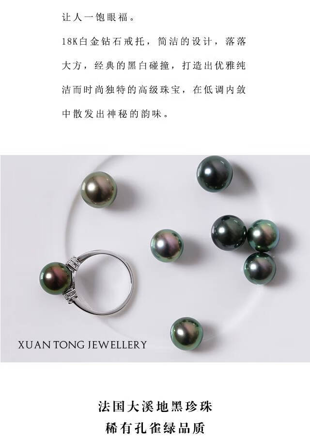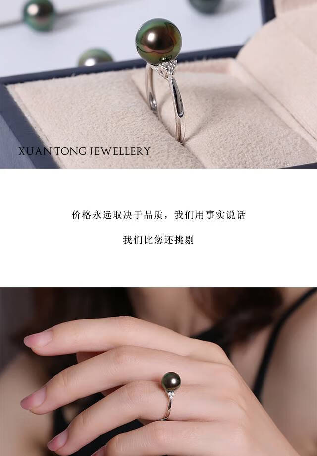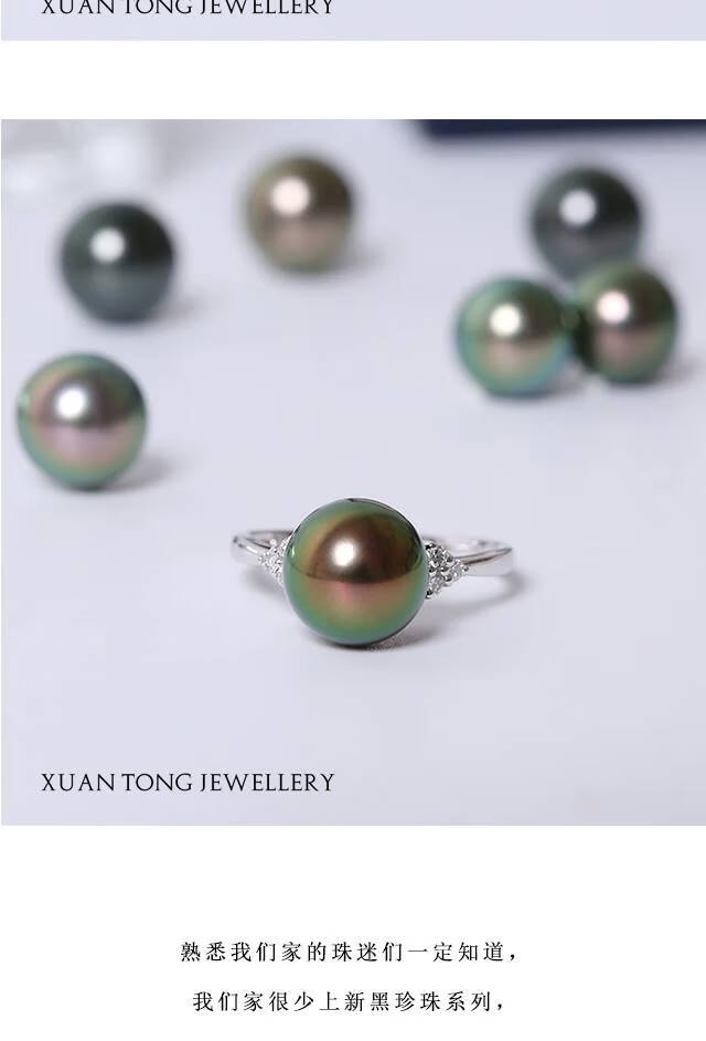 Fat Donglai purchased the same Tahitian black pearl ring, aurora malachite green 18 gold diamond, round seawater pearl, malachite green pearl 10mm