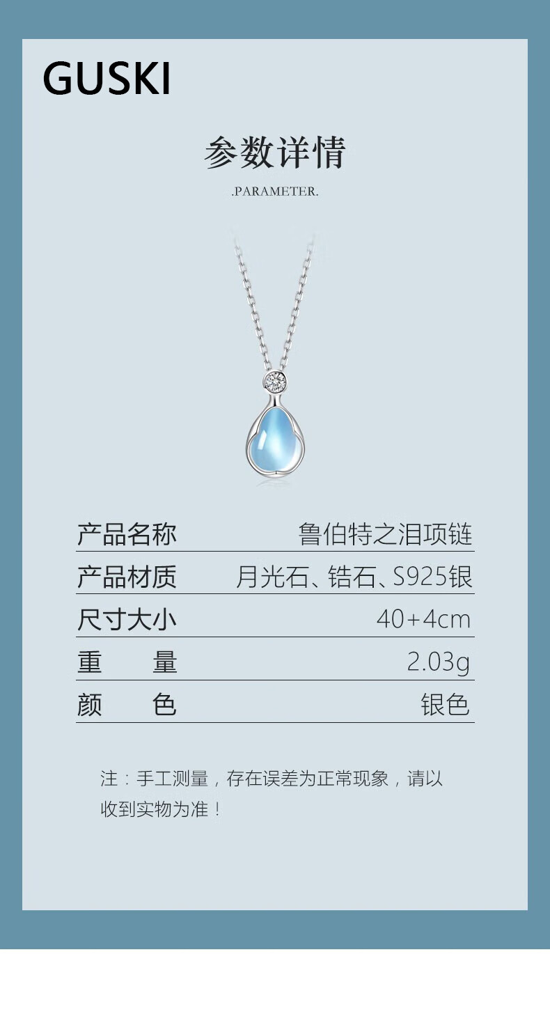 GUSKI French brand Rupert's Tears necklace women's high-end jewelry moonstone pendant anniversary birthday gift for girlfriend Rupert bracelet platinum + gift box