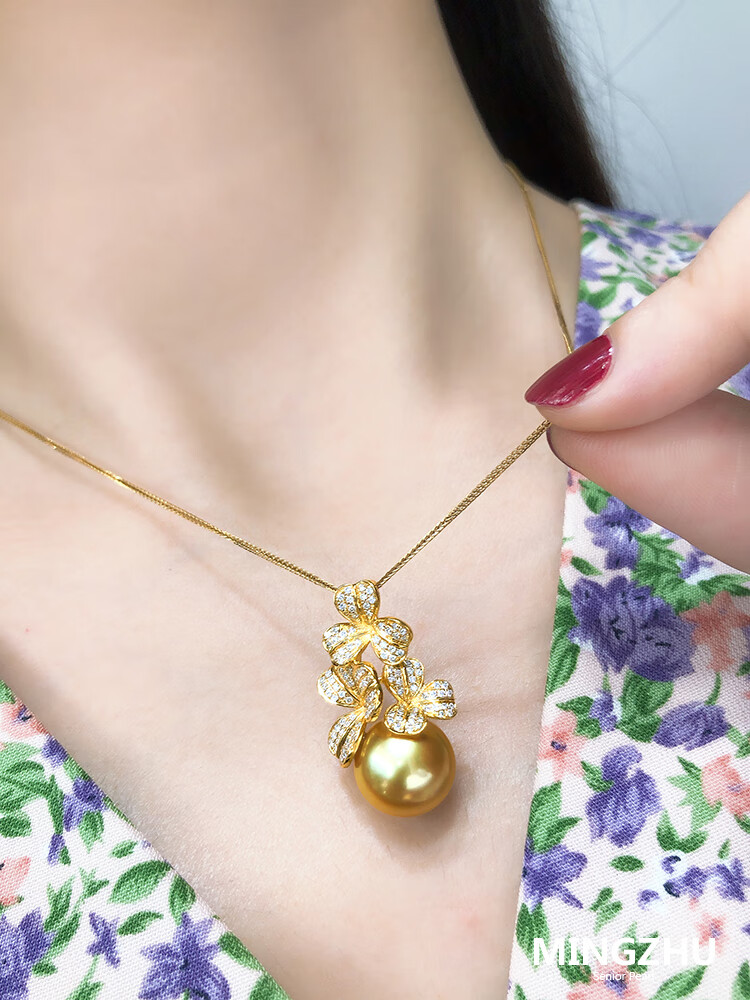Fat Donglai purchased the same style of South Sea gold bead pendant, Philippine thick golden seawater pearl 12-13mm, positive round pole, South Sea gold bead 14mm