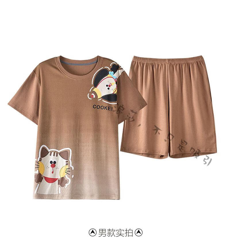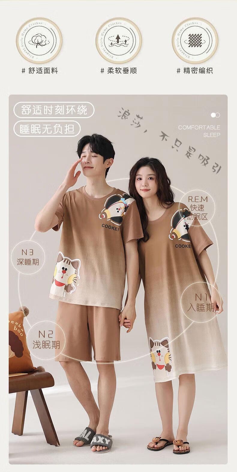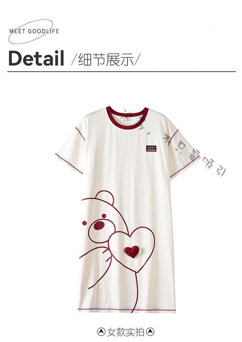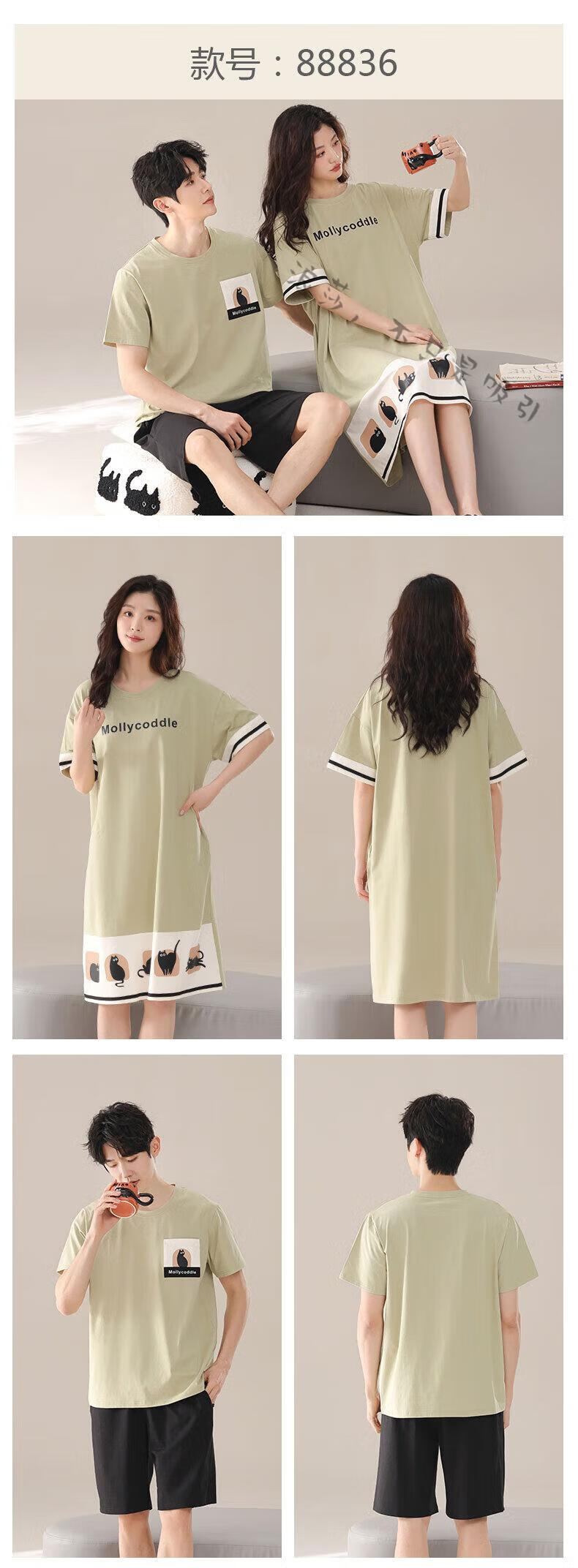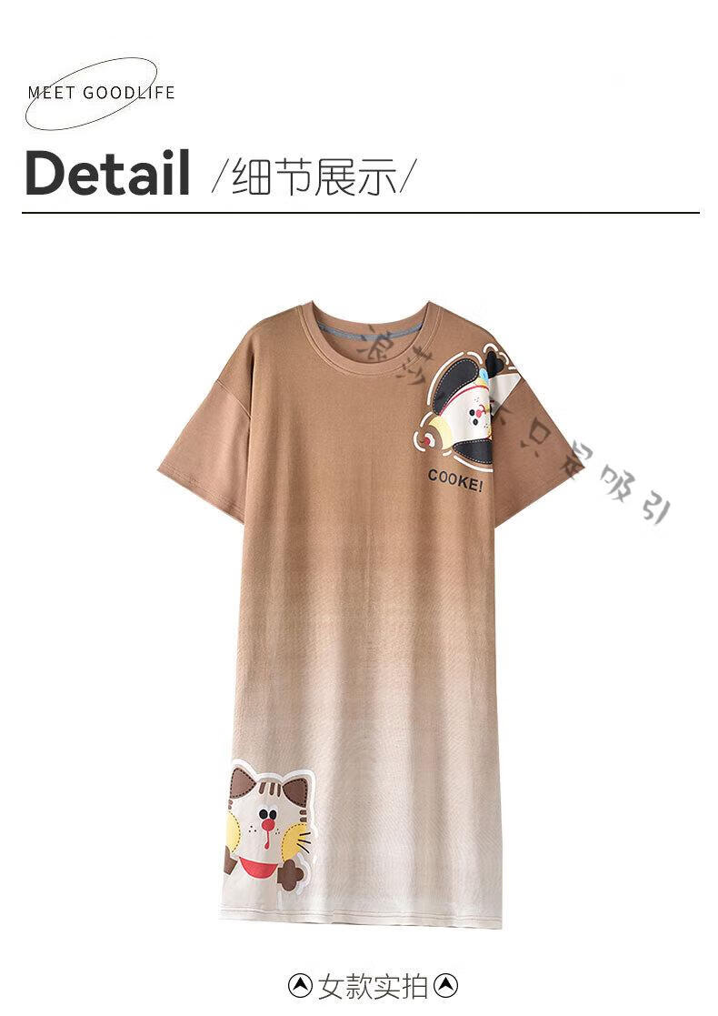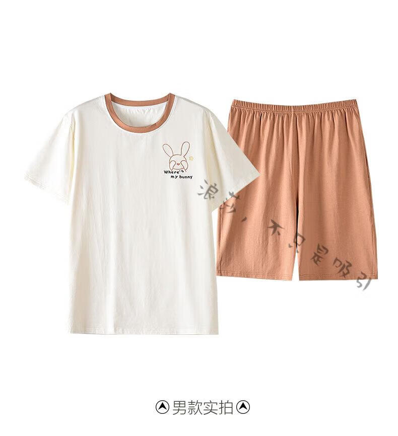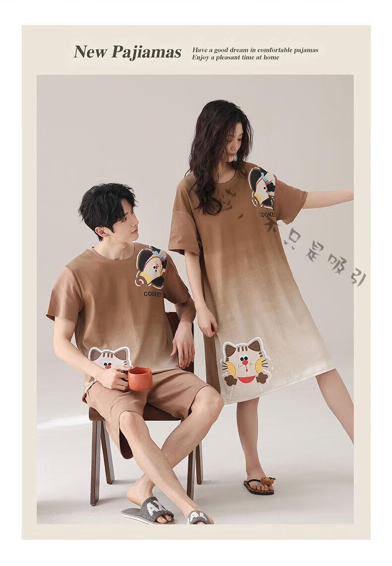 LangSha couple pajamas for women summer pure cotton short-sleeved cute cartoon sweet nightgown 100% cotton men's home wear set 88832 XL women + 3XL men
